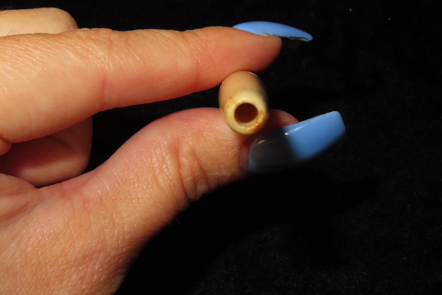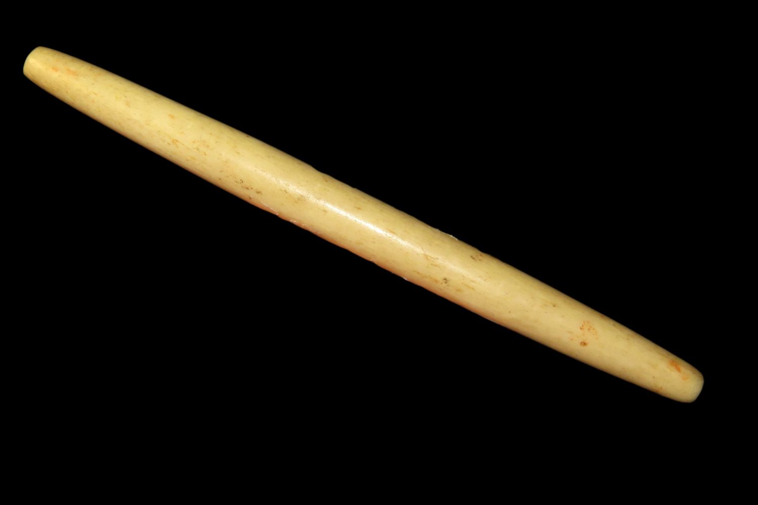 4 3/8″ Bone bead Mandan, Found in South Dakota EX. James Vroom Collection