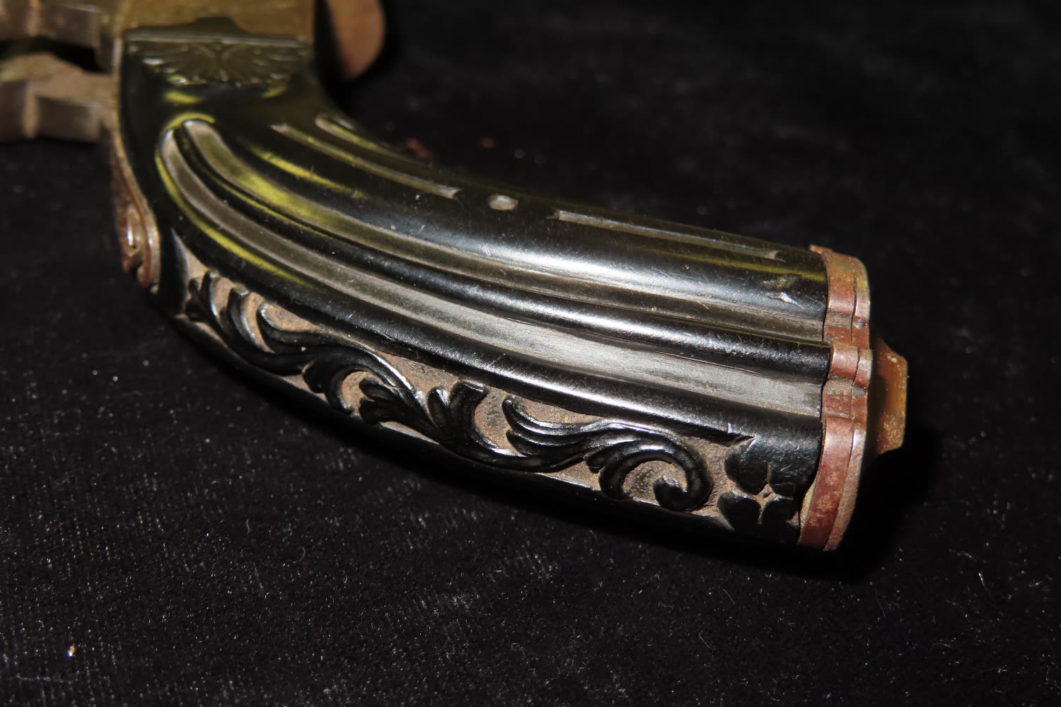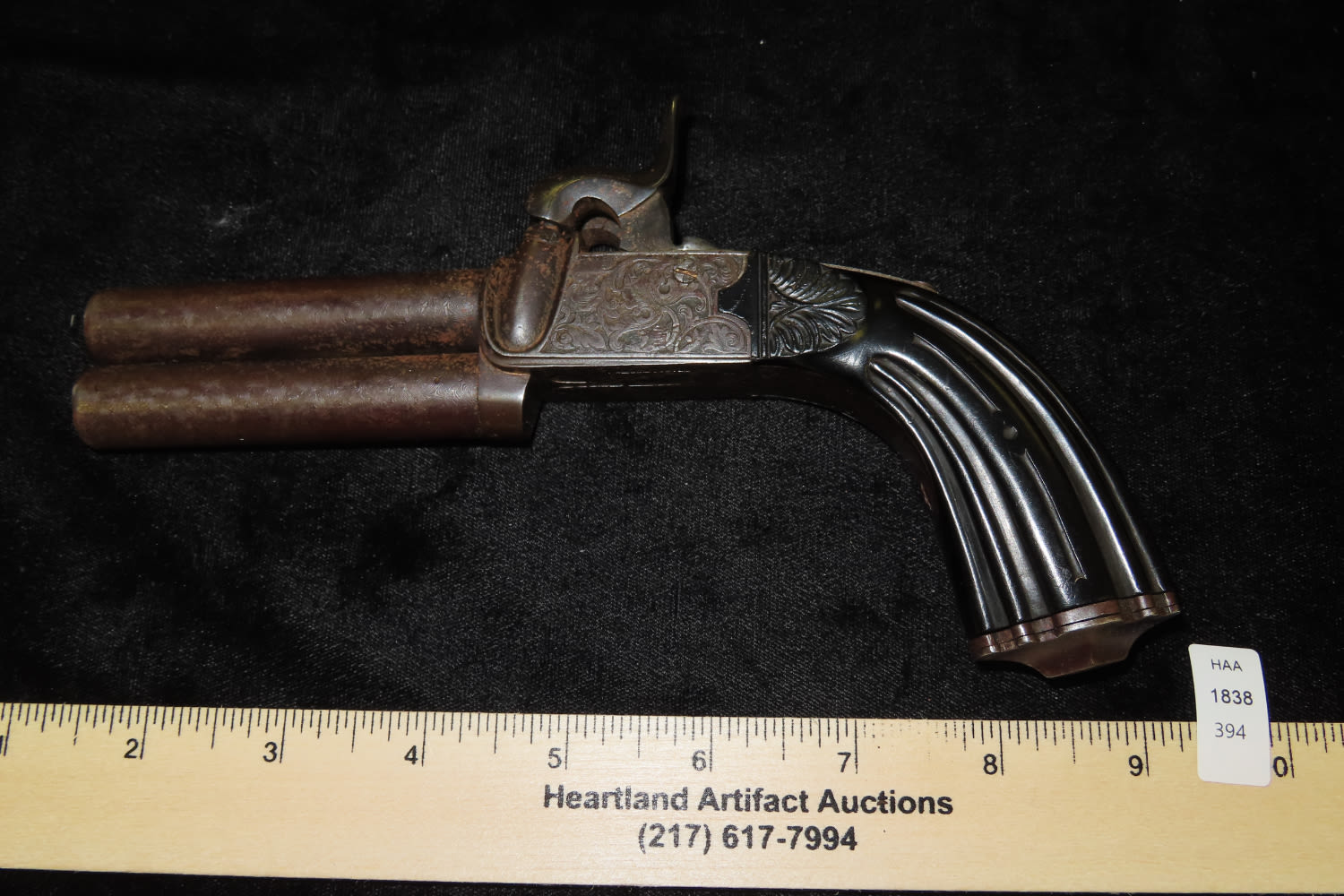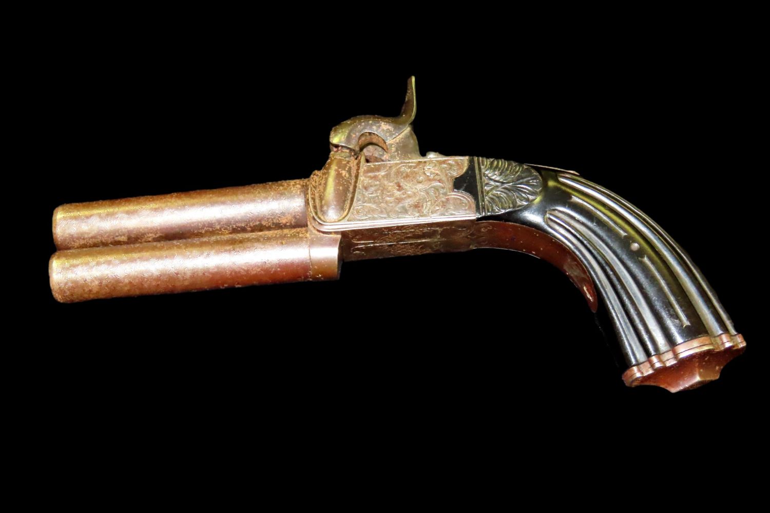Engragved European, Double Barrel, Percussion Pistol. Functions (works)