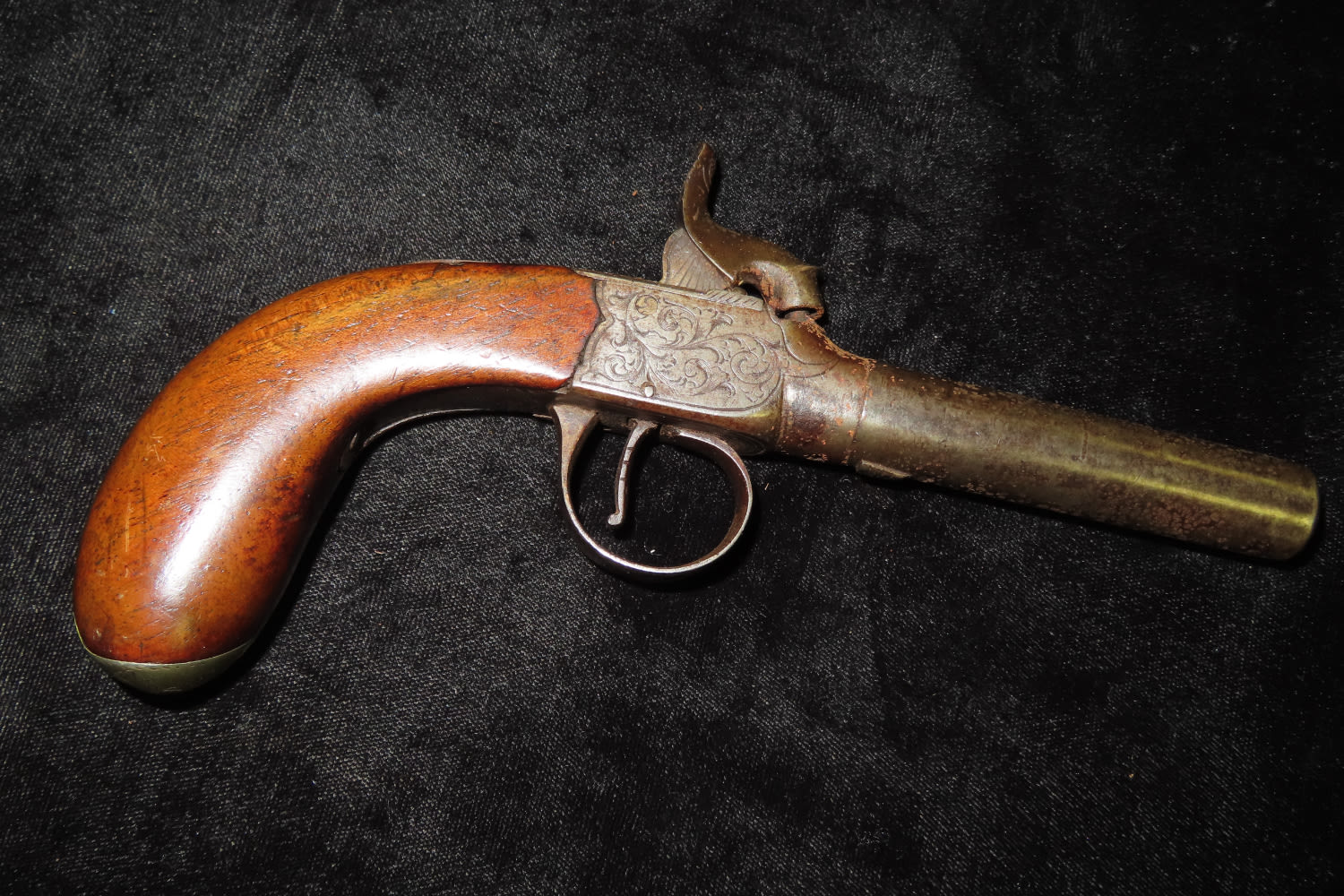 English 6 Shot Percussion Pistol, Nicely Engraved Pattasson, London