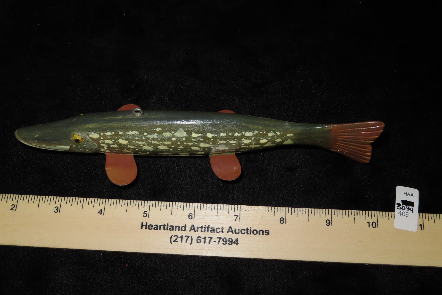 8″ Vintage Wood/ Metal, Hand painted Fish Decoy, David L. Root Collection