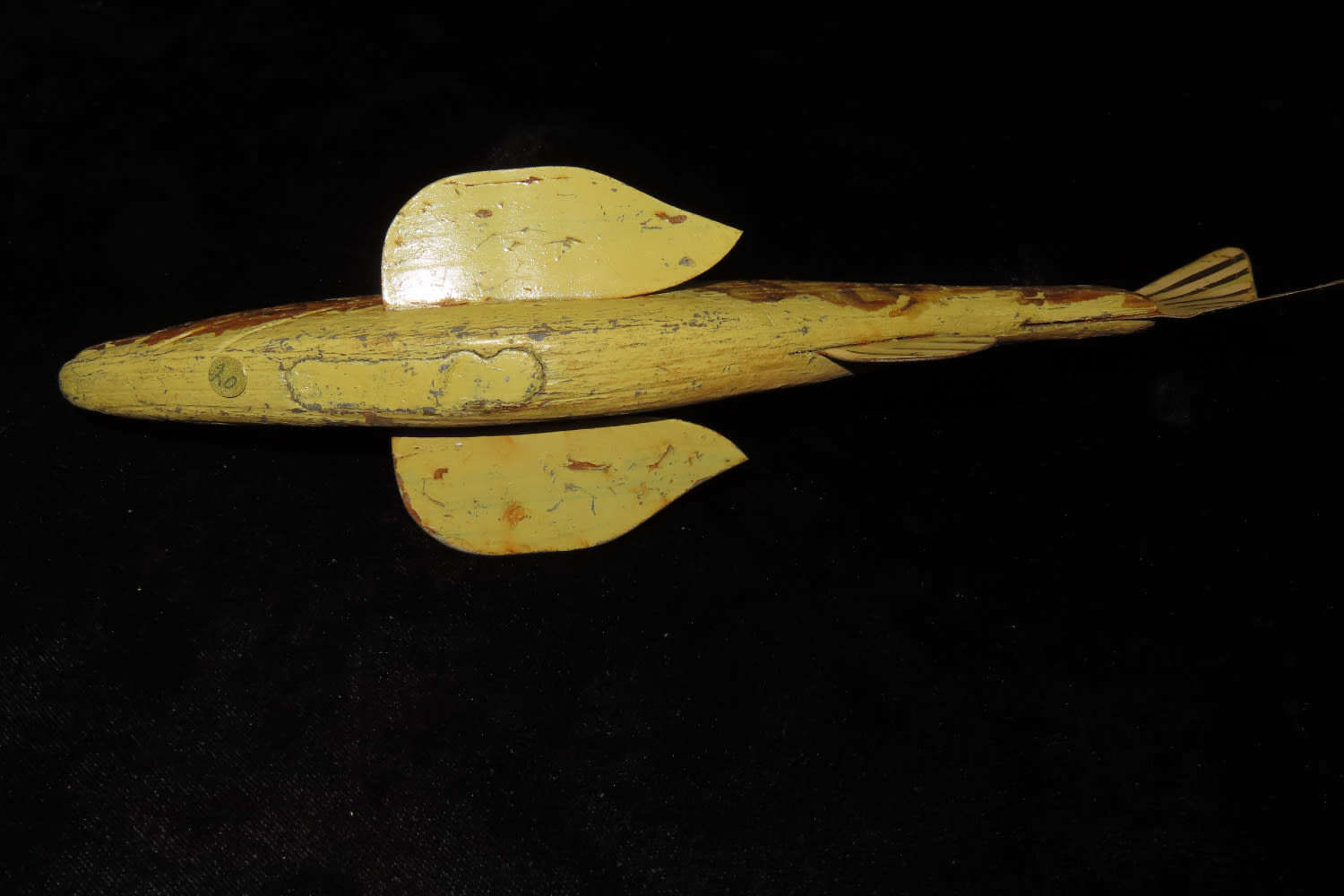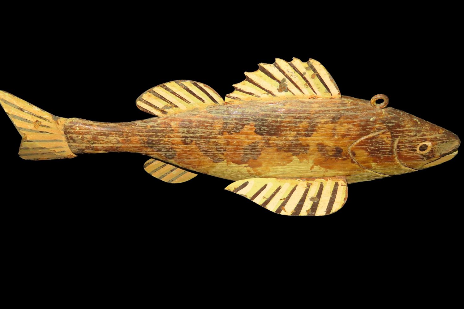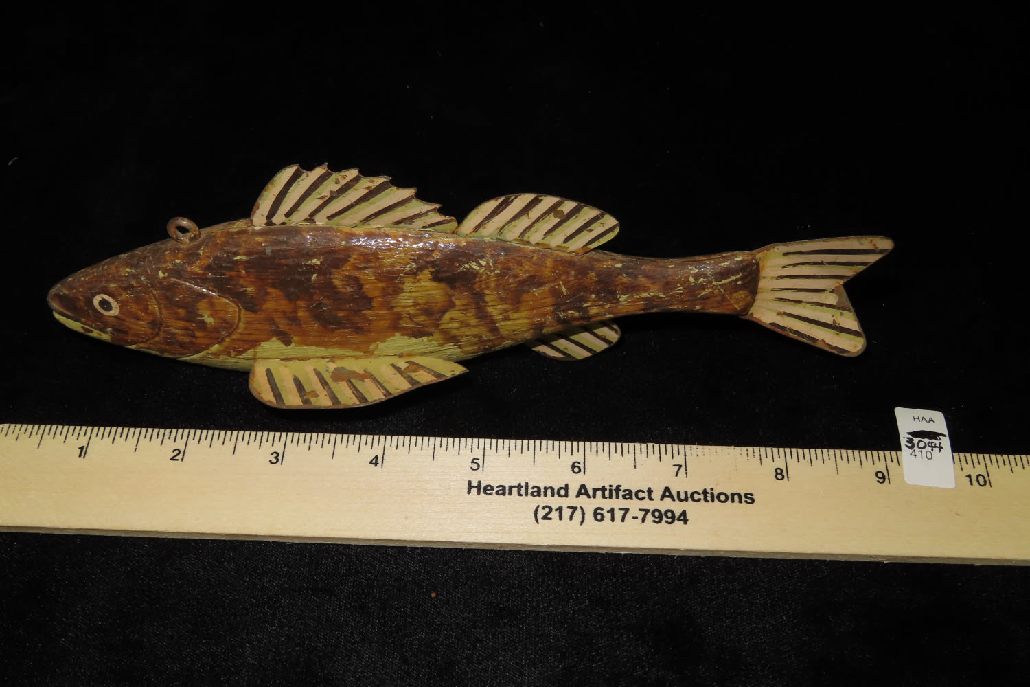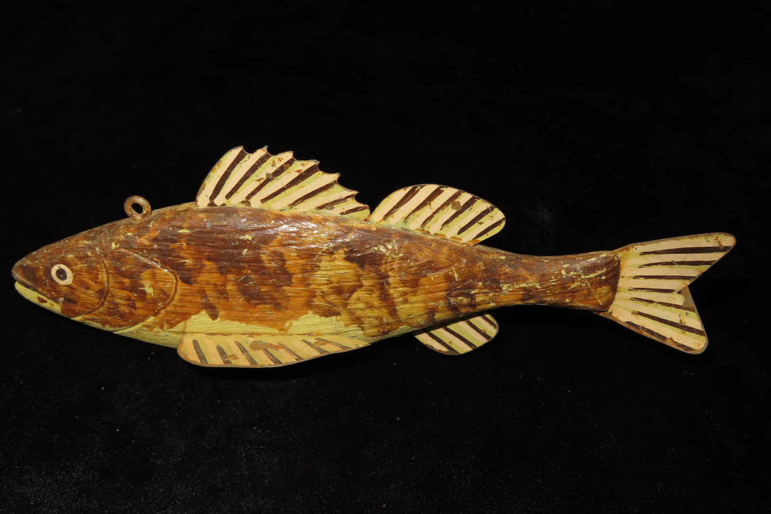8 3/8″ Vintage Wood/ Metal, Hand painted Fish Decoy, David L. Root Collection