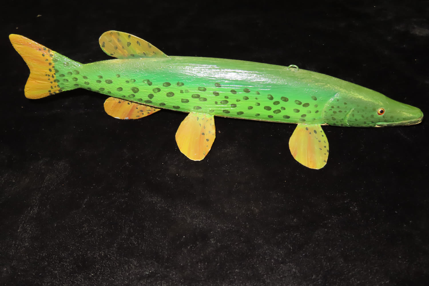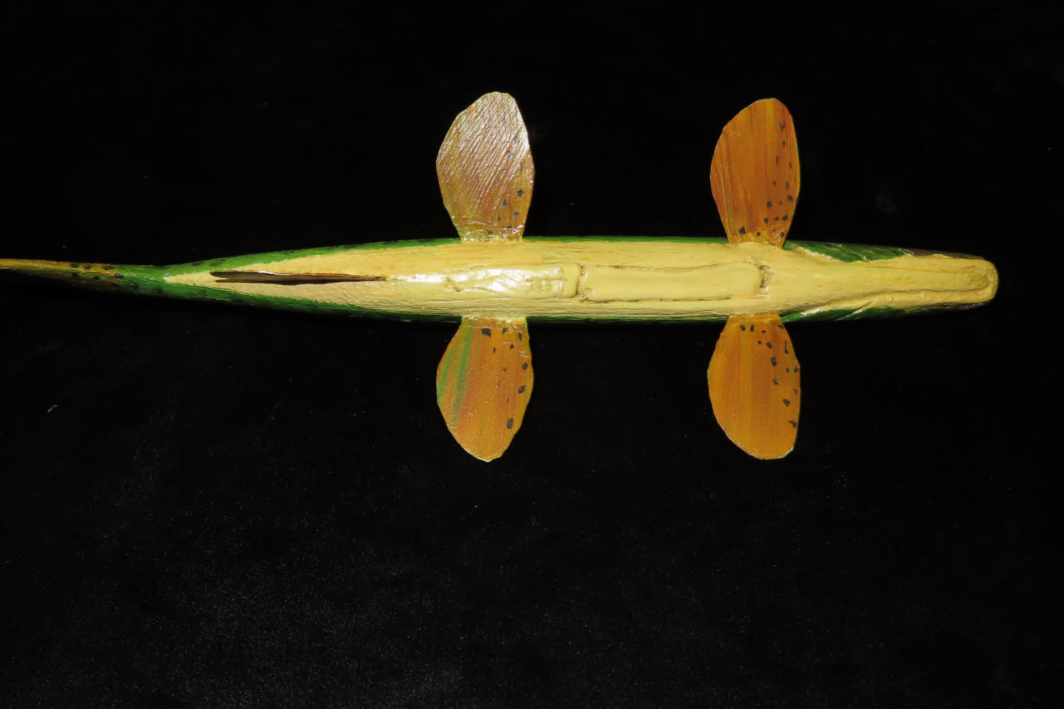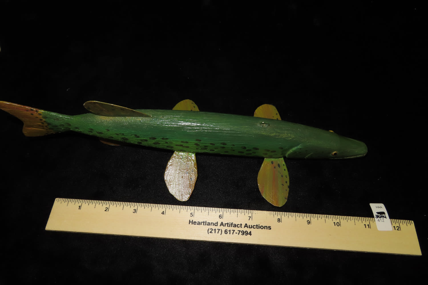 12 1/2″ Vintage Wood/ Metal, Hand painted Fish Decoy, David L. Root Collection
