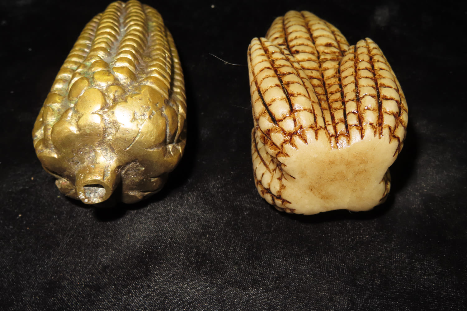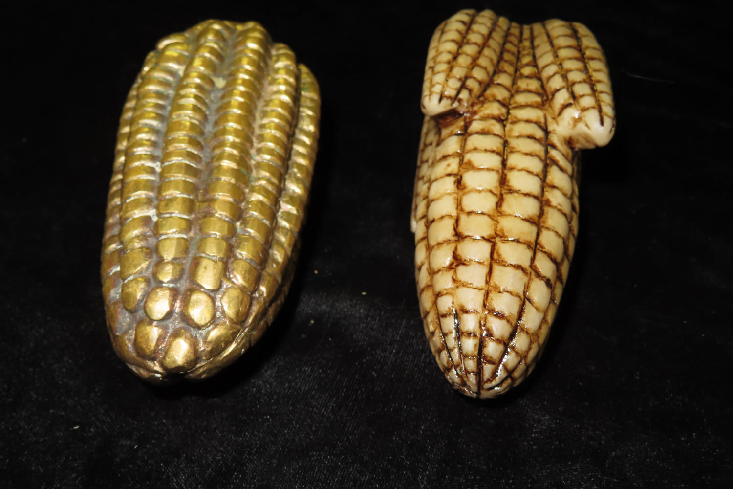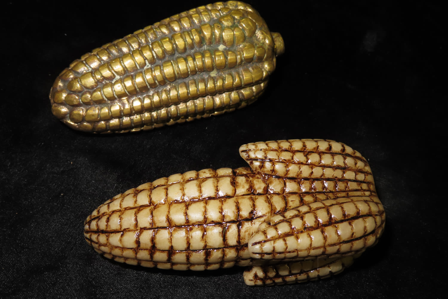 Set of 2 corn god effigies-one made of Brass and one of Resin
