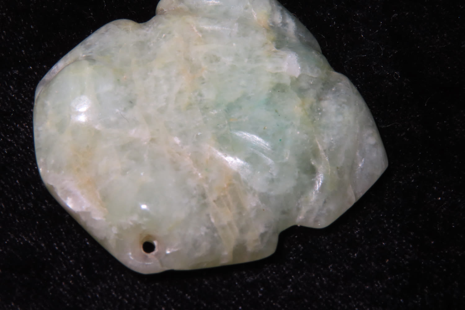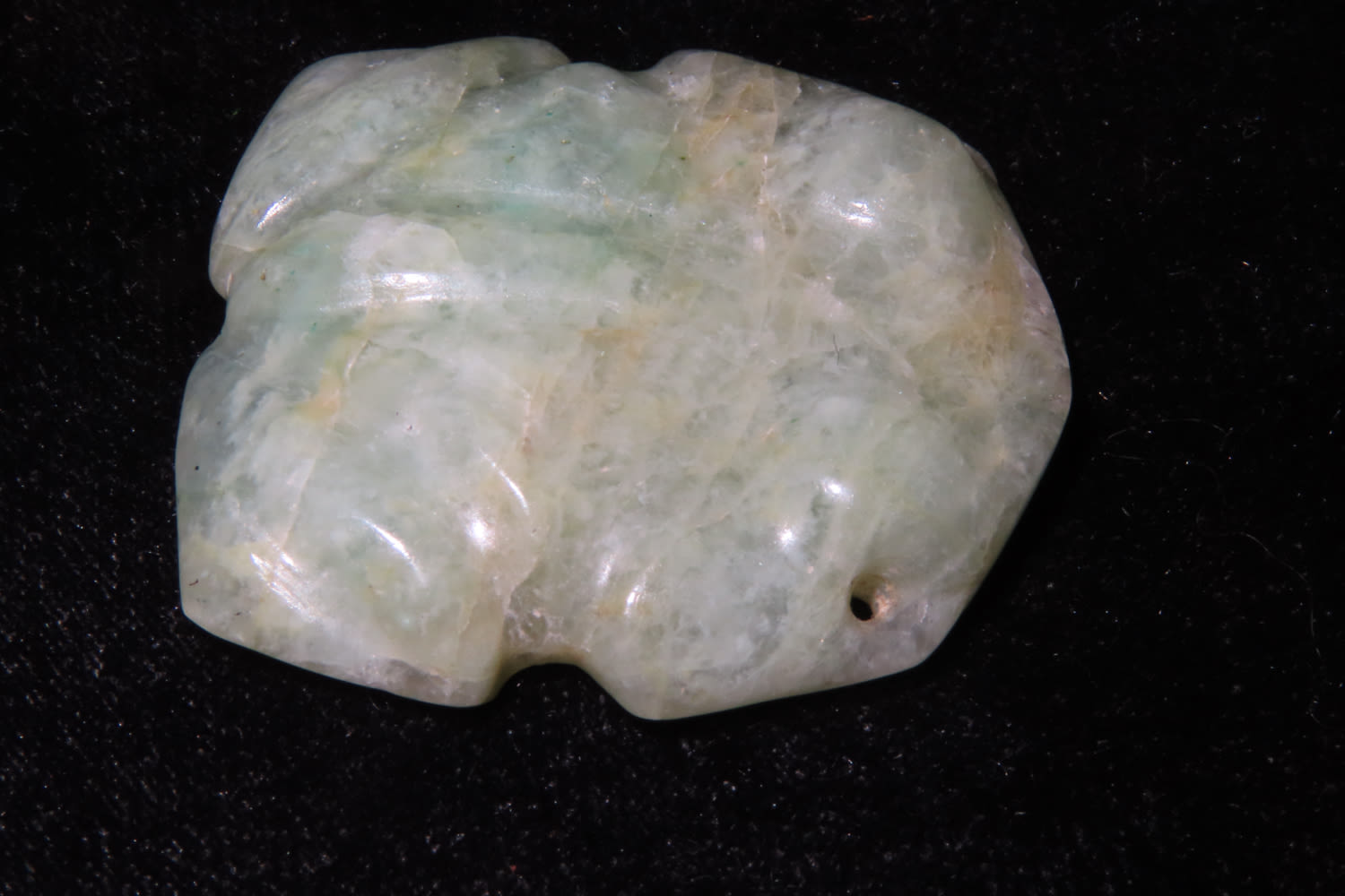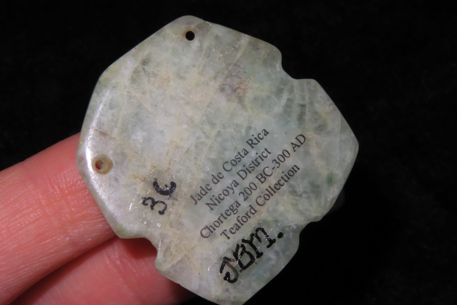 1 3/8″ Frog Effigy Pendant, High Grade Translucent Jade, Jade de Costa Rica, Nicoya District, Chortega 200 BC- 300 AD, Teaford Collction, Collection of Joe Morrissey