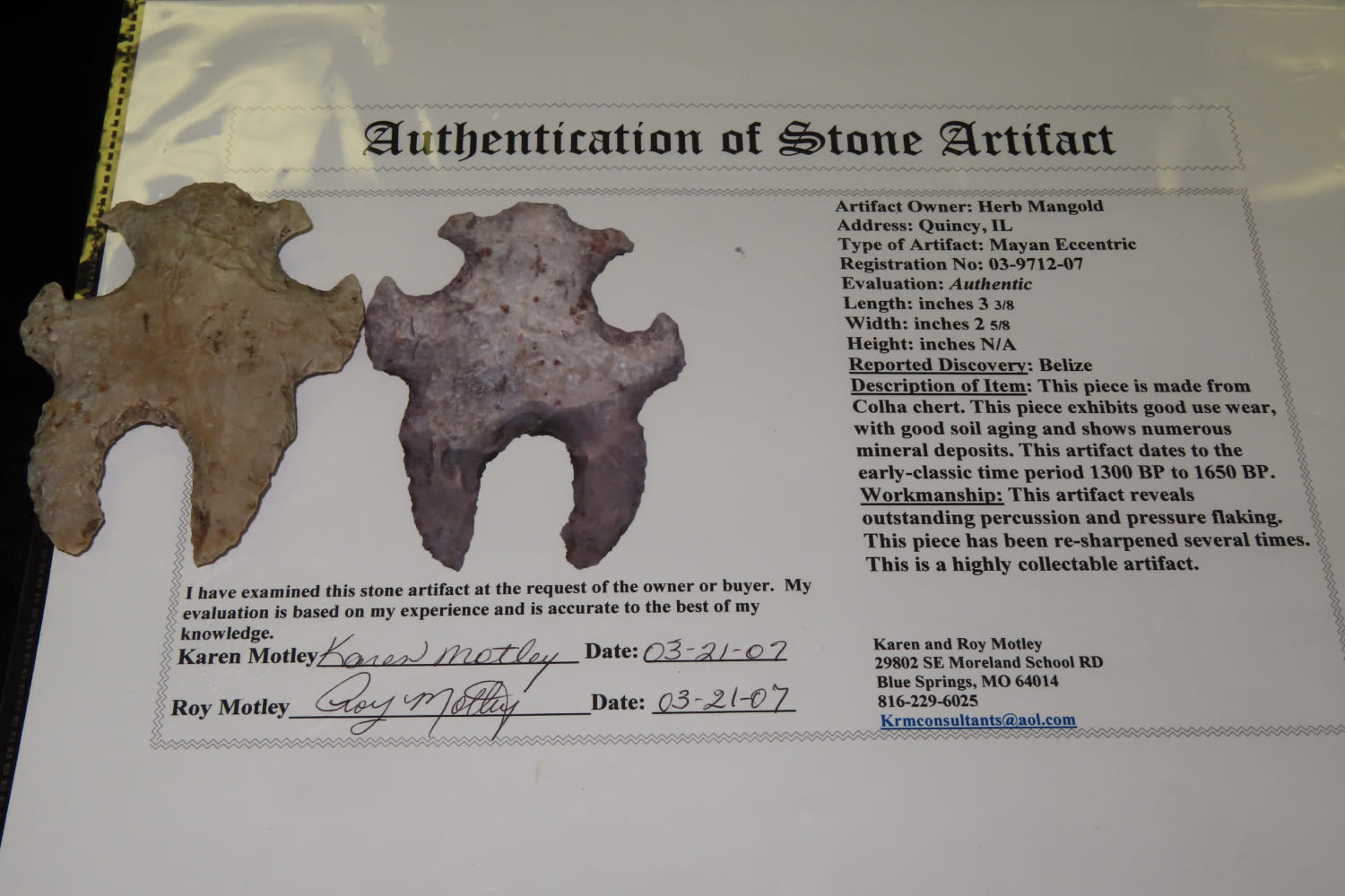 3 3/8″ Mayan Eccentric, Motley COA, Found in Belize