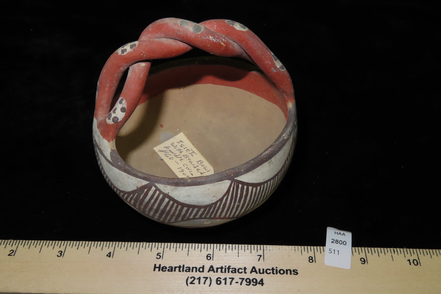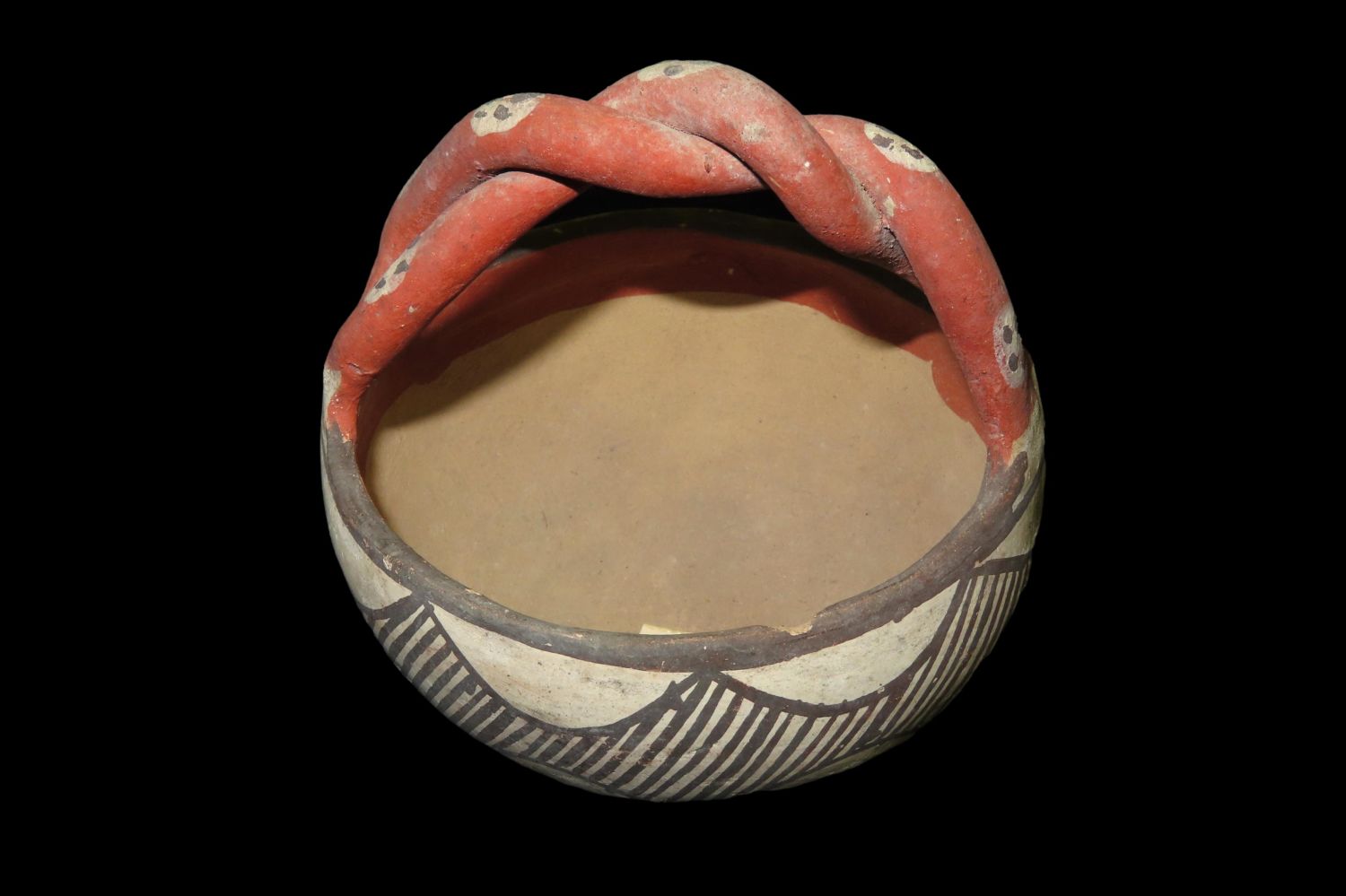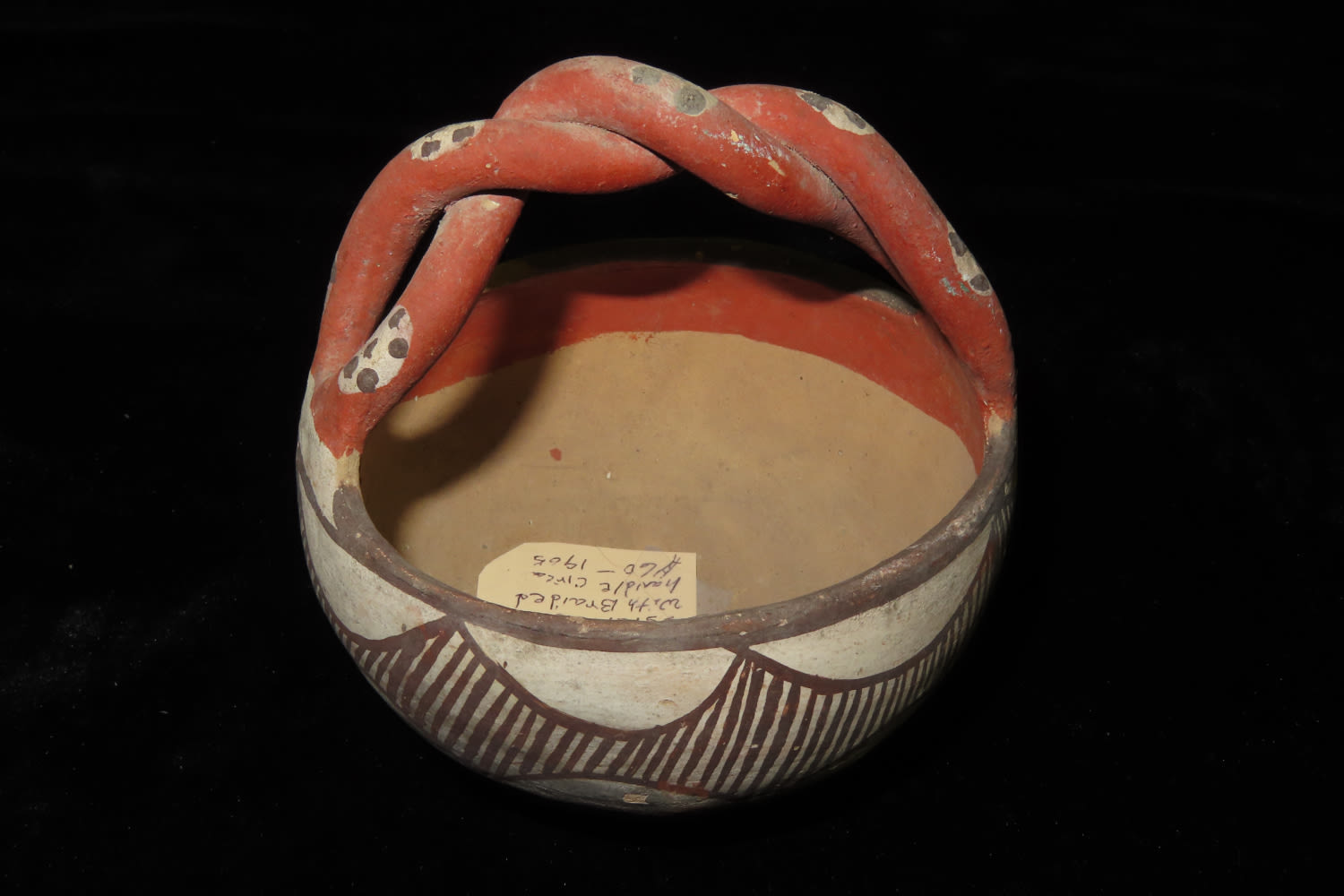 4″ Antique/Vintage Rope Handled Pottery Isleta Bowl with Braided Handle, Circa 1905