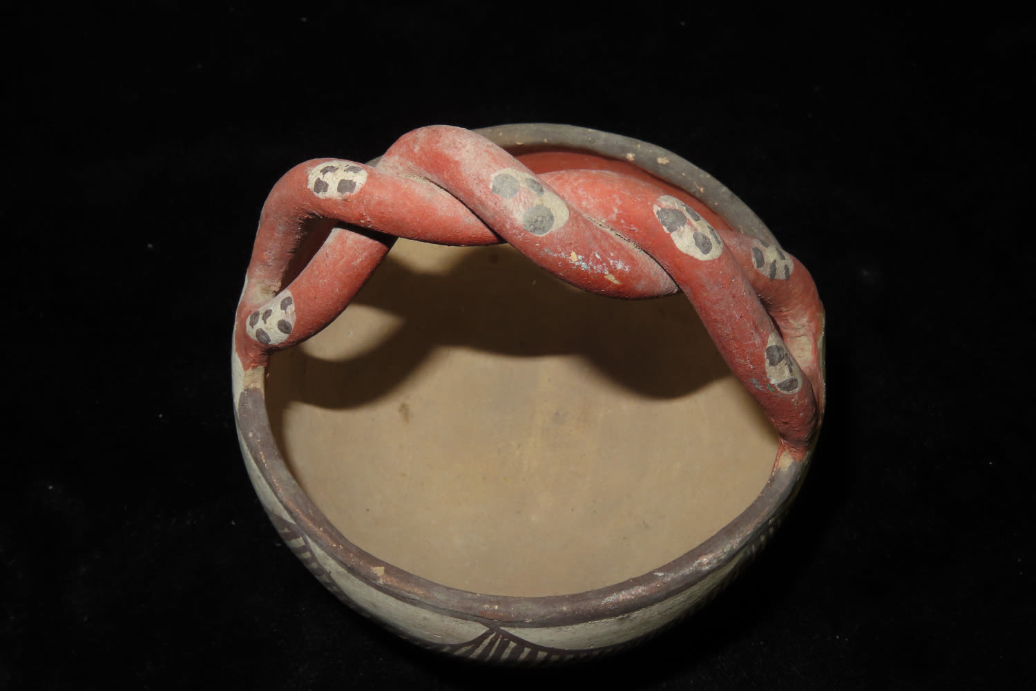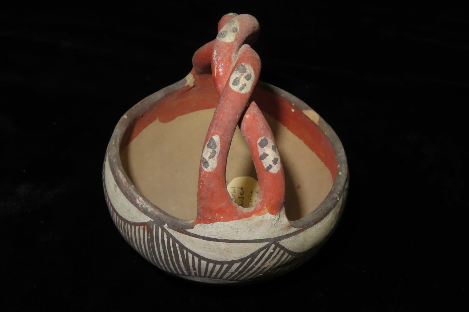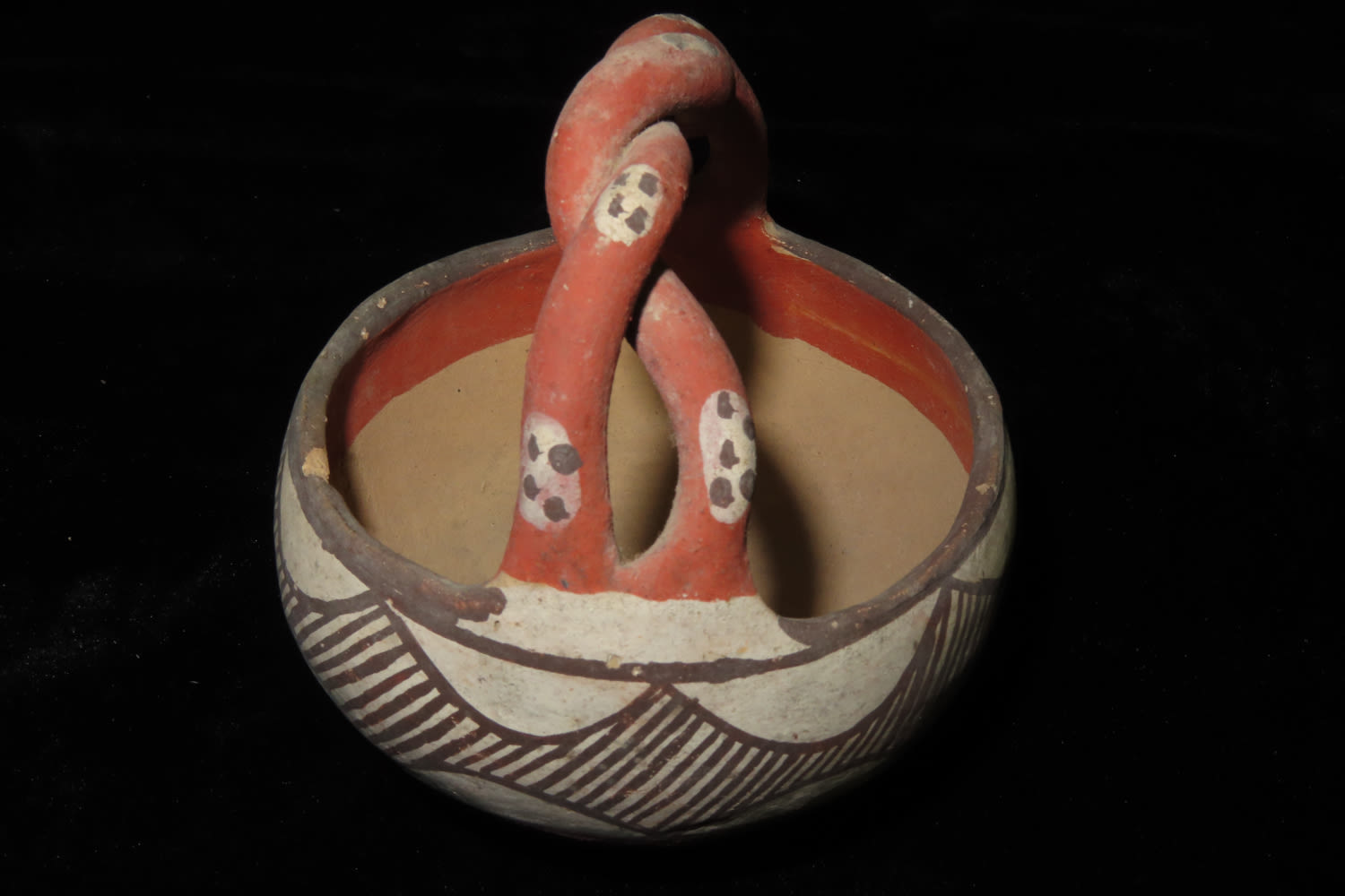 4″ Antique/Vintage Rope Handled Pottery Isleta Bowl with Braided Handle, Circa 1905
