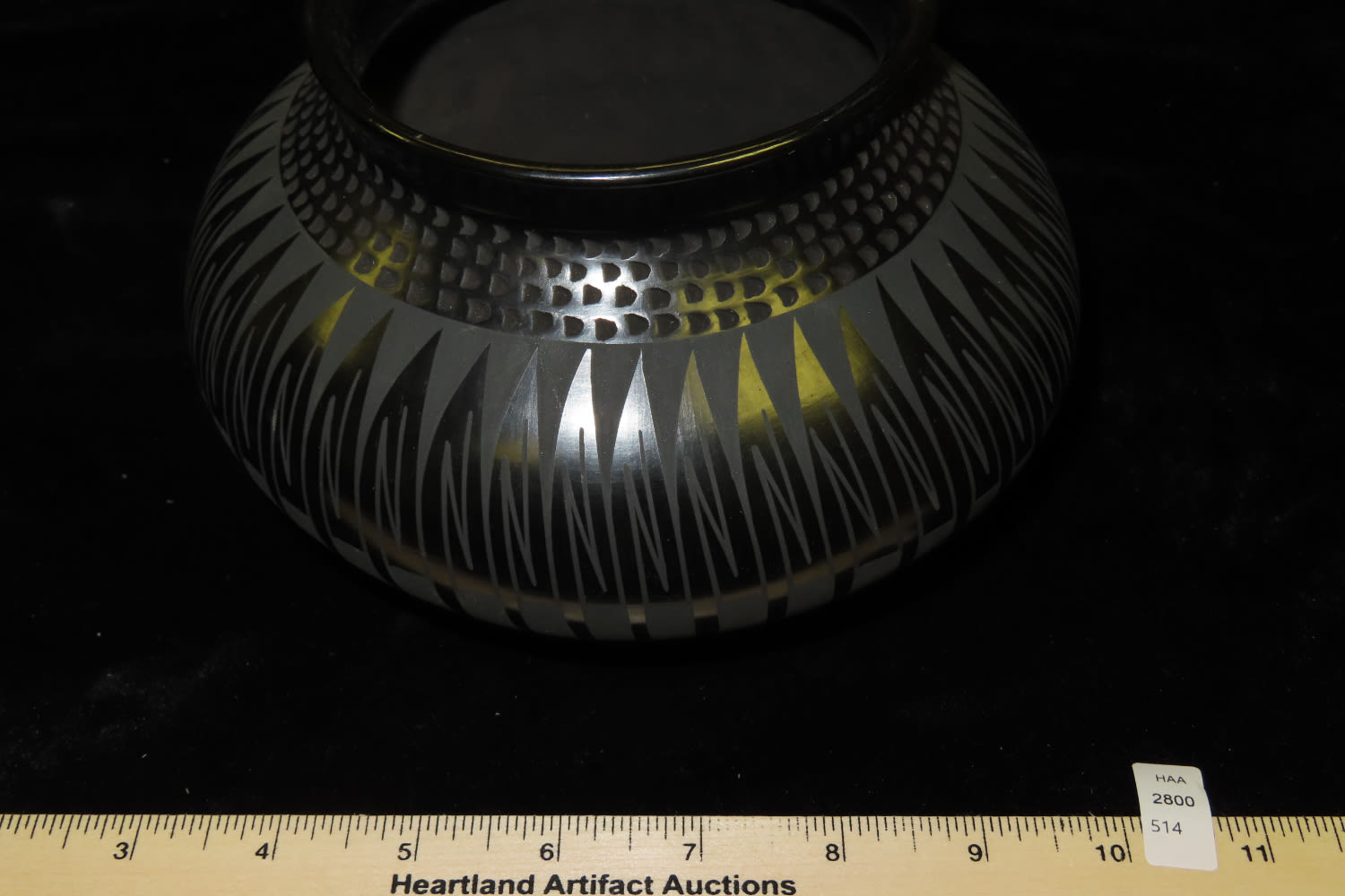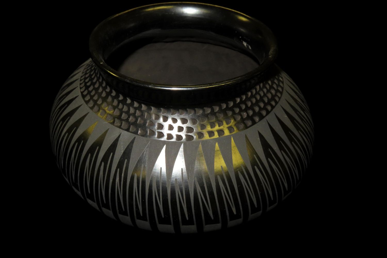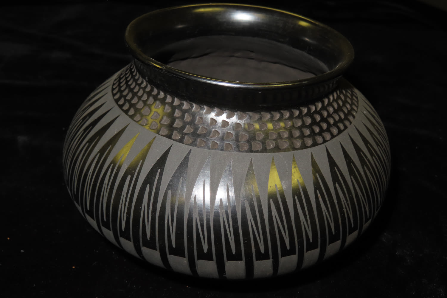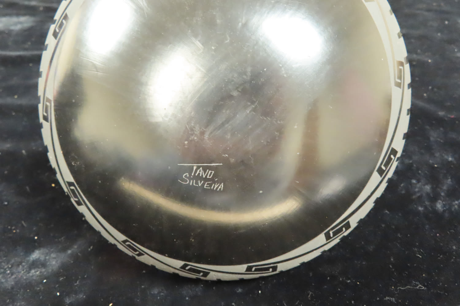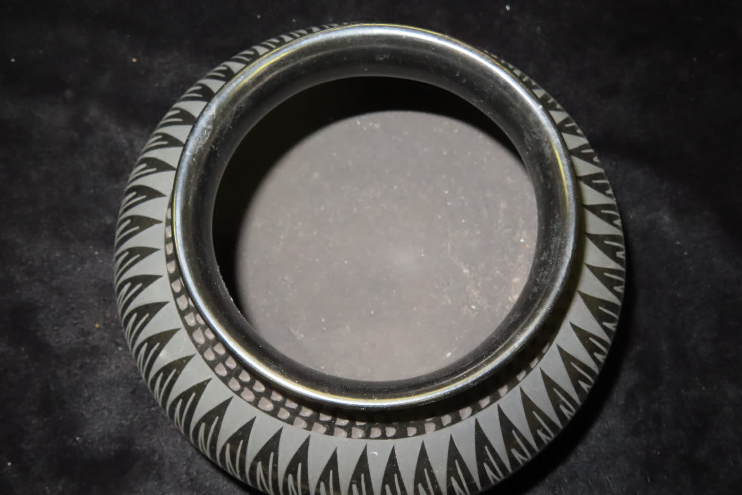 6 1/2″ X 4 1/4″ Antique/Vintage black on black Pottery Bowl signed Tavo Silveiva