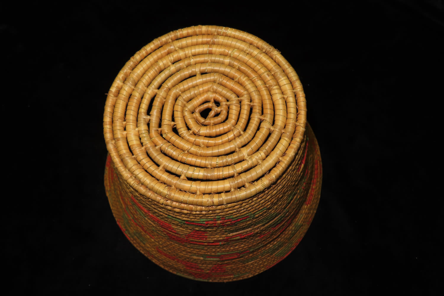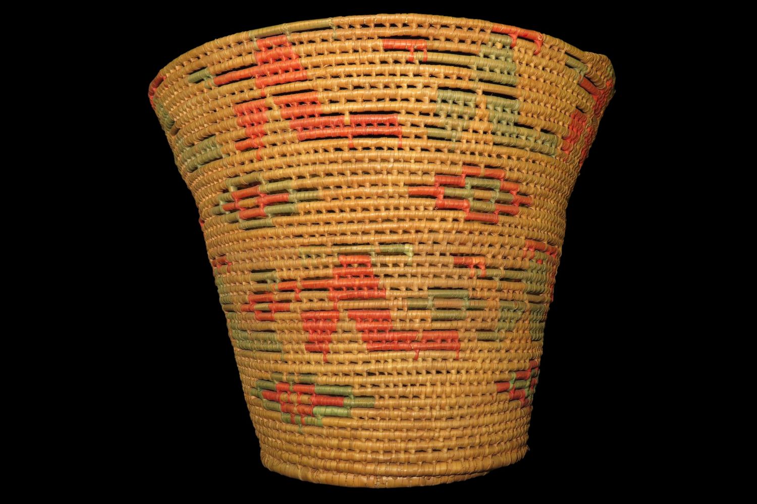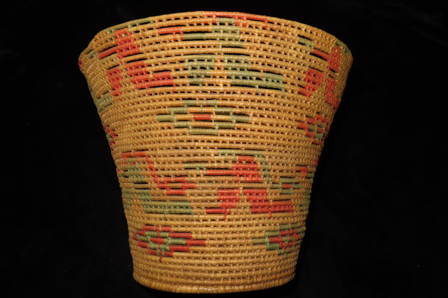 8 1/2″ Antique/Vintage Tall Hand woven basket, Colorful, from Kickapoo Creek, St. Angelo, Texas