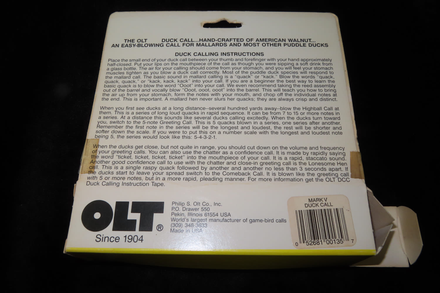 Mark V. OLT game and bird call Vintage/Antique Duck or Goose Call