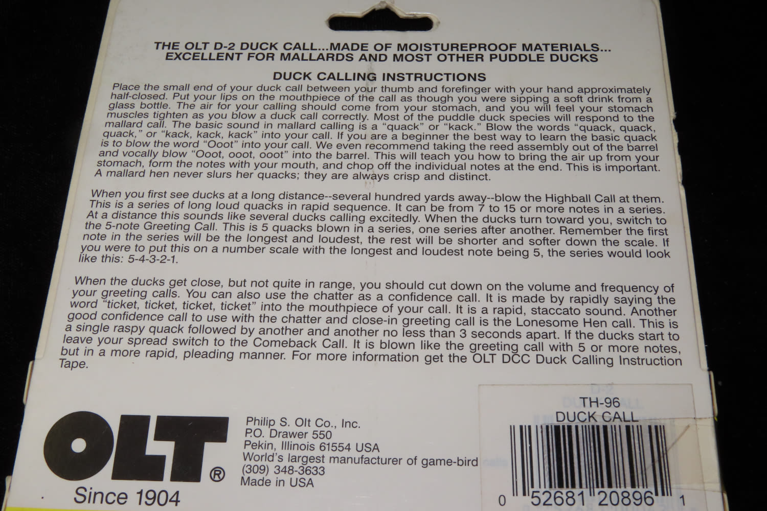 Model TH-96 OLT Vintage/Antique Duck or Goose Call
