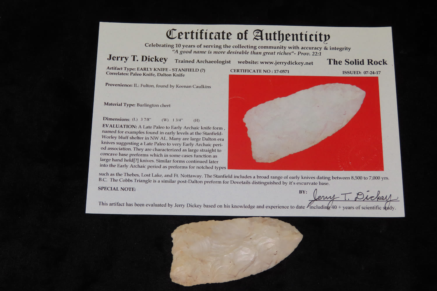 3 7/8″ Early Knive/Stanfield Dickey COA found by Keenan Caulkins in Fulton County Illinois Ex Herb Mangold Collection