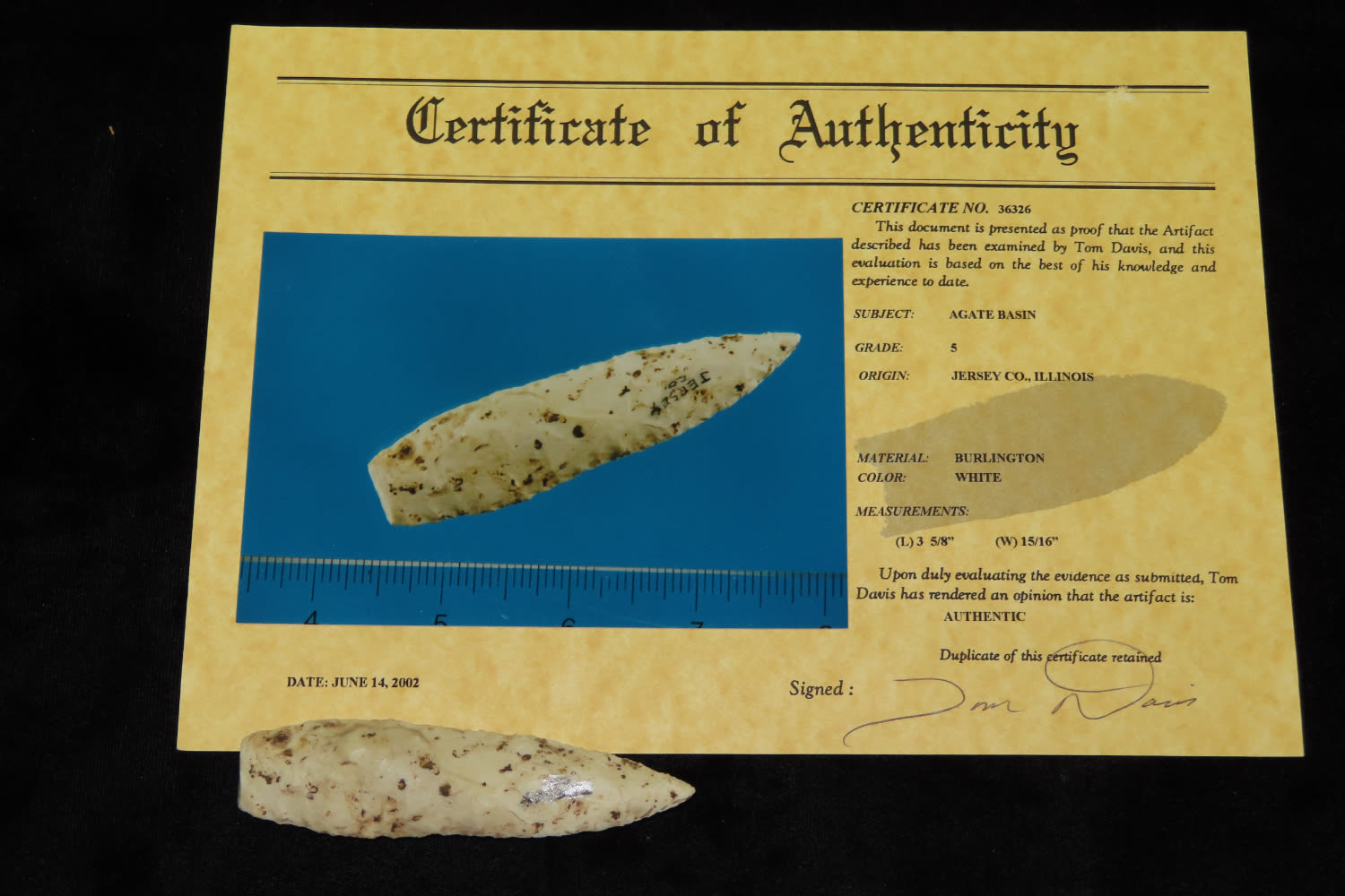 3 5/8″ Agate Basin Davis COA Jersey County Illinois Ex Herb Mangold Collection
