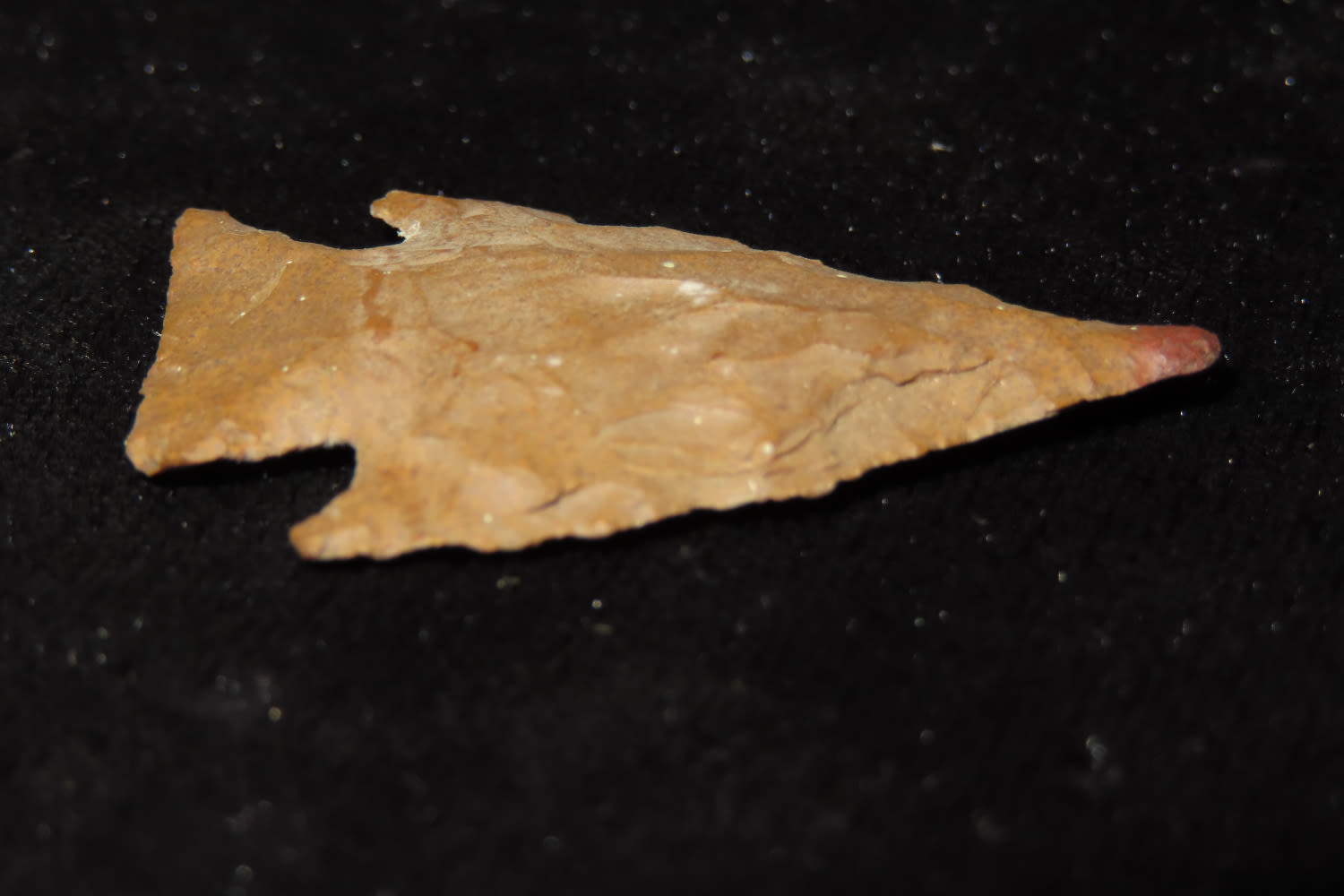 1 1/2″ ARROWHEAD From the Thunderbird Native American Museum in NJ. Dorothy Middleton Nelson was the founder, curator and proprietor of the Thunderbird Museum on Mt. Laurel Road during the 1930s through the 1960s. At one time it held one of the largest collections of Native American artifacts (nearly 50,000) in North America. Photo credit: “Dorothy’s Dream: Dorothy Middleton and her Indian Artifact Museum” by O. Kirk Spurr.Dorothy’s Dream, Dorothy Middelton and her Indian Artifact Museum- by O. Kirk Spurr, PhD. For nearly fifty years Dorothy Middleton Nelson and her collection of Indian archaeological and ethnological materials was reputedly the fourth largest private collection in North America at the time.