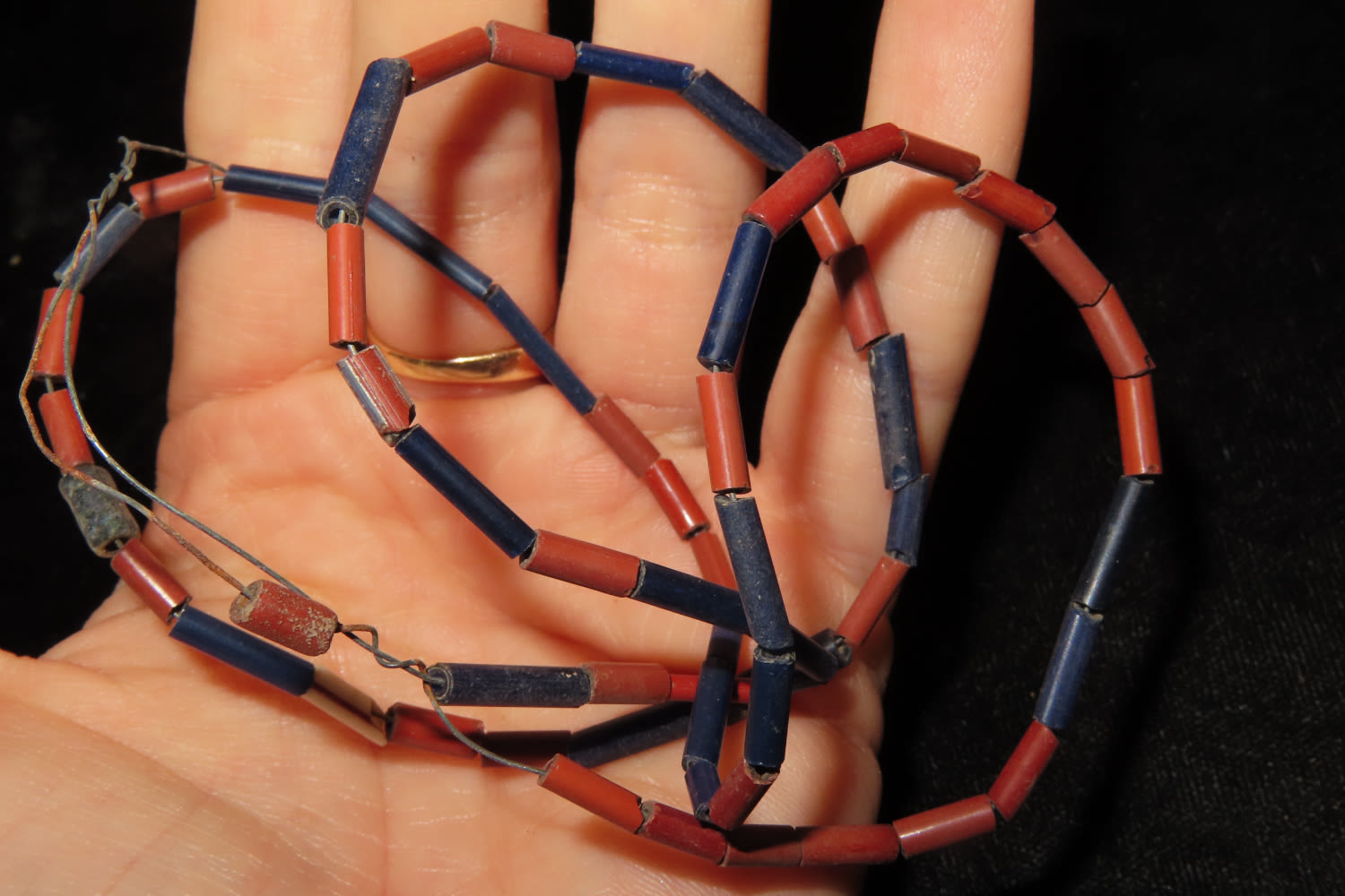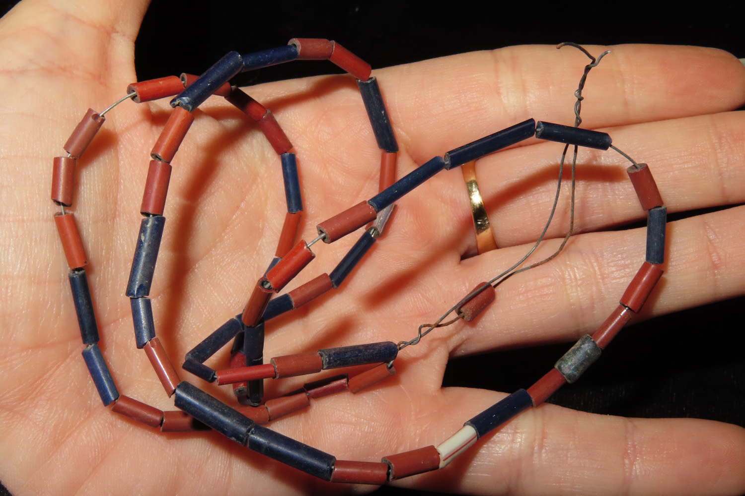 STRAND OF SIOUX BEADS From the Thunderbird Native American Museum in NJ. Dorothy Middleton Nelson was the founder, curator and proprietor of the Thunderbird Museum on Mt. Laurel Road during the 1930s through the 1960s. At one time it held one of the largest collections of Native American artifacts (nearly 50,000) in North America. Photo credit: “Dorothy’s Dream: Dorothy Middleton and her Indian Artifact Museum” by O. Kirk Spurr.Dorothy’s Dream, Dorothy Middelton and her Indian Artifact Museum- by O. Kirk Spurr, PhD. For nearly fifty years Dorothy Middleton Nelson and her collection of Indian archaeological and ethnological materials was reputedly the fourth largest private collection in North America at the time.