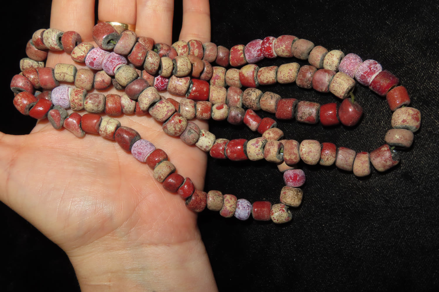 STRAND OF SIOUX BEADS From the Thunderbird Native American Museum in NJ. Dorothy Middleton Nelson was the founder, curator and proprietor of the Thunderbird Museum on Mt. Laurel Road during the 1930s through the 1960s. At one time it held one of the largest collections of Native American artifacts (nearly 50,000) in North America. Photo credit: “Dorothy’s Dream: Dorothy Middleton and her Indian Artifact Museum” by O. Kirk Spurr.Dorothy’s Dream, Dorothy Middelton and her Indian Artifact Museum- by O. Kirk Spurr, PhD. For nearly fifty years Dorothy Middleton Nelson and her collection of Indian archaeological and ethnological materials was reputedly the fourth largest private collection in North America at the time.