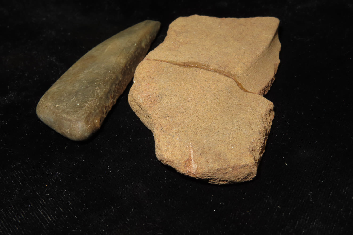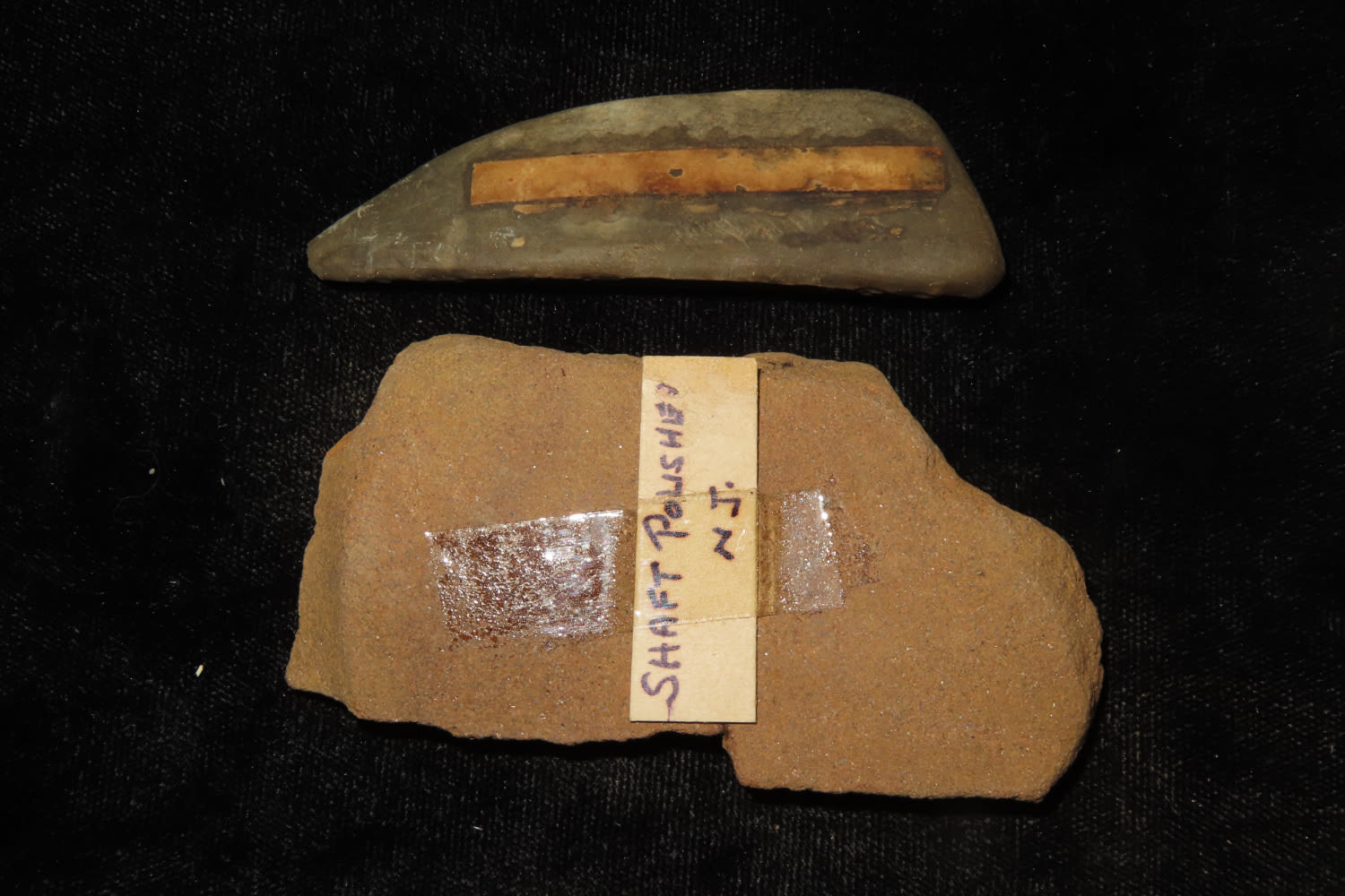 3 PIECE SHAFT POLISH ROCKS FOUND IN NJ From the Thunderbird Native American Museum in NJ. Dorothy Middleton Nelson was the founder, curator and proprietor of the Thunderbird Museum on Mt. Laurel Road during the 1930s through the 1960s. At one time it held one of the largest collections of Native American artifacts (nearly 50,000) in North America. Photo credit: “Dorothy’s Dream: Dorothy Middleton and her Indian Artifact Museum” by O. Kirk Spurr.Dorothy’s Dream, Dorothy Middelton and her Indian Artifact Museum- by O. Kirk Spurr, PhD. For nearly fifty years Dorothy Middleton Nelson and her collection of Indian archaeological and ethnological materials was reputedly the fourth largest private collection in North America at the time.
