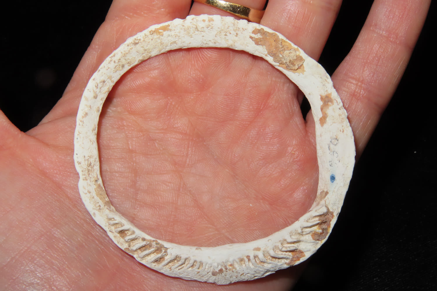 SHELL MADE BRACELET From the Thunderbird Native American Museum in NJ. Dorothy Middleton Nelson was the founder, curator and proprietor of the Thunderbird Museum on Mt. Laurel Road during the 1930s through the 1960s. At one time it held one of the largest collections of Native American artifacts (nearly 50,000) in North America. Photo credit: “Dorothy’s Dream: Dorothy Middleton and her Indian Artifact Museum” by O. Kirk Spurr.Dorothy’s Dream, Dorothy Middelton and her Indian Artifact Museum- by O. Kirk Spurr, PhD. For nearly fifty years Dorothy Middleton Nelson and her collection of Indian archaeological and ethnological materials was reputedly the fourth largest private collection in North America at the time.