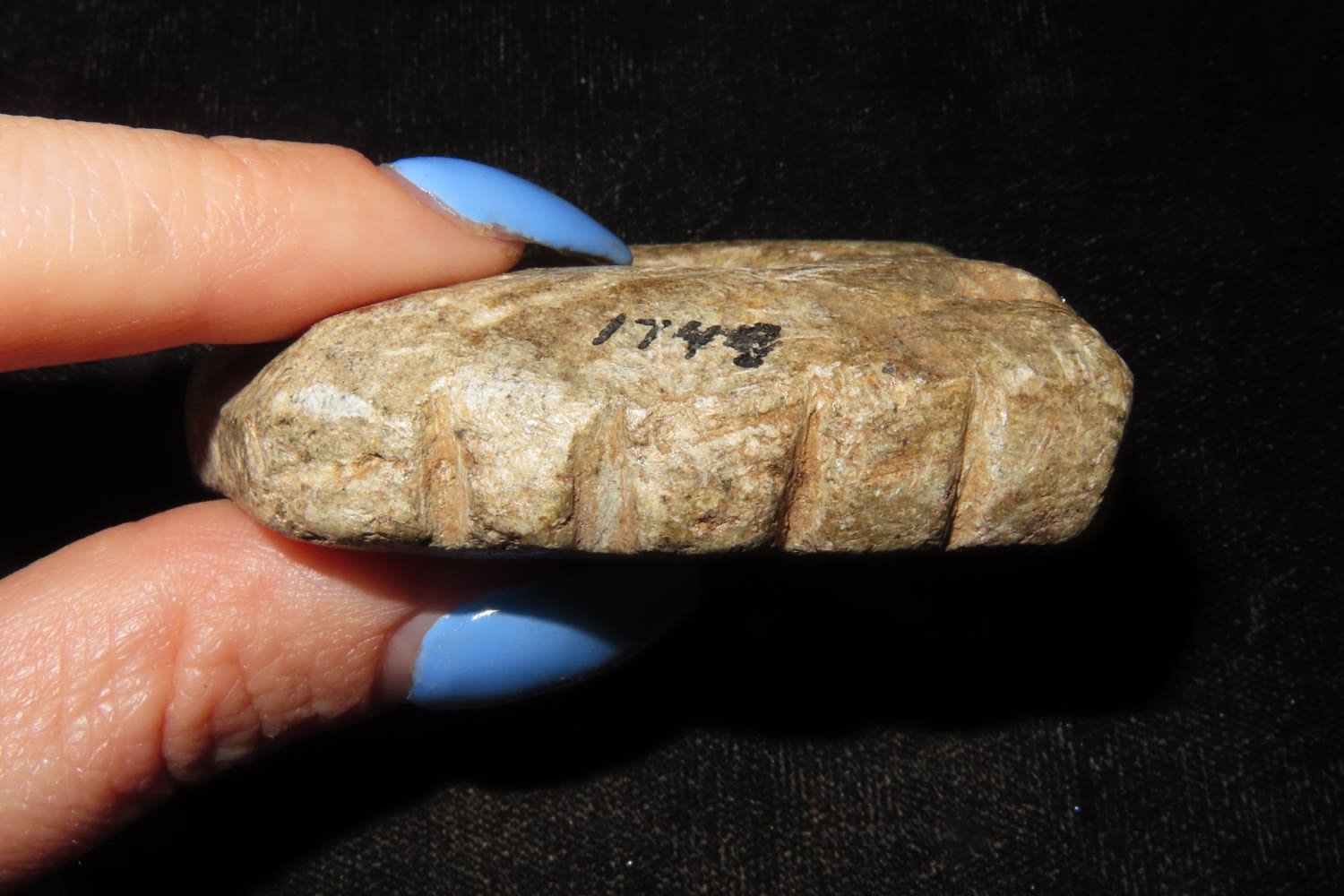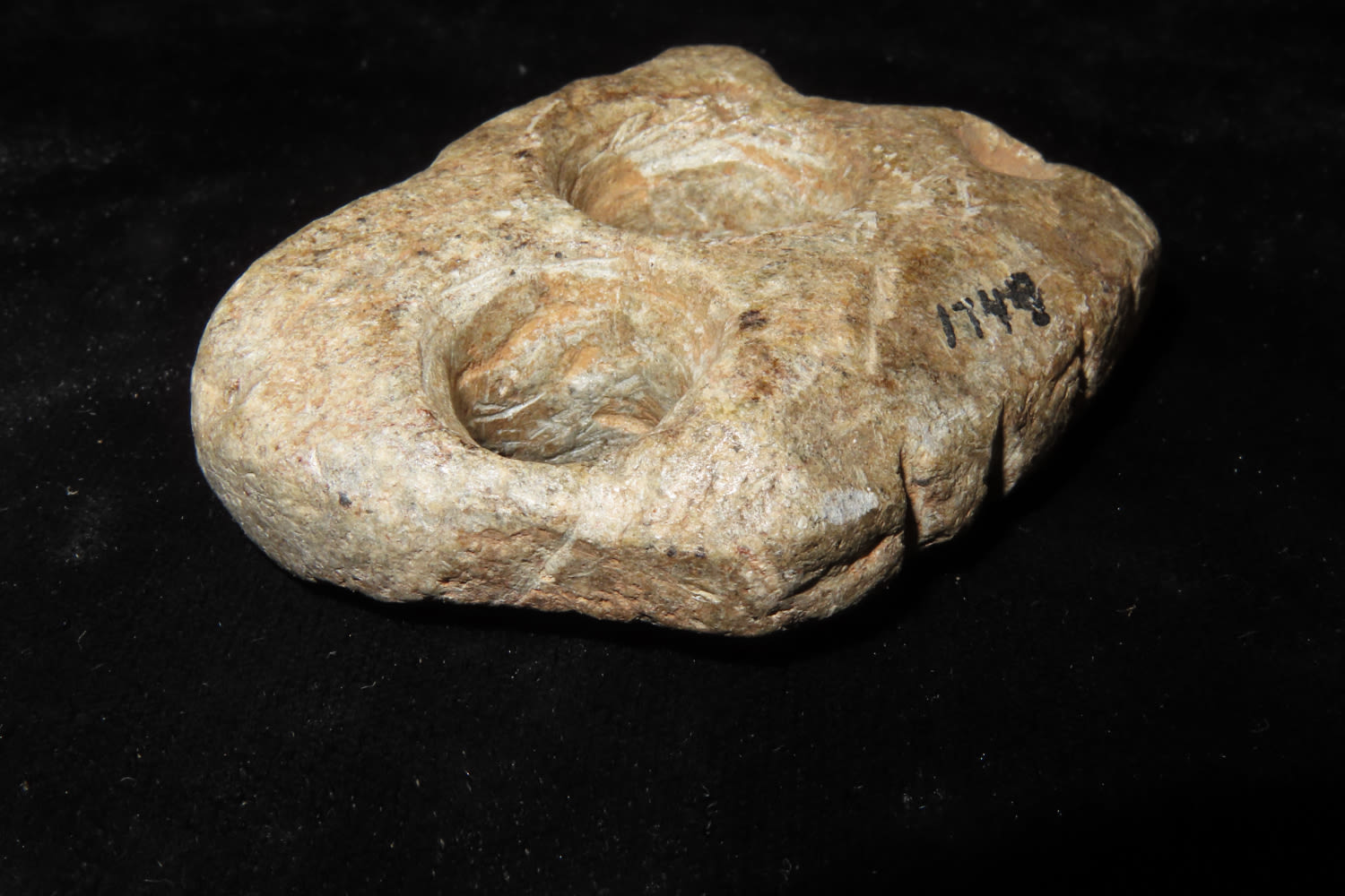 2 1/4″ SOAPSTONE TOOL From the Thunderbird Native American Museum in NJ. Dorothy Middleton Nelson was the founder, curator and proprietor of the Thunderbird Museum on Mt. Laurel Road during the 1930s through the 1960s. At one time it held one of the largest collections of Native American artifacts (nearly 50,000) in North America. Photo credit: “Dorothy’s Dream: Dorothy Middleton and her Indian Artifact Museum” by O. Kirk Spurr.Dorothy’s Dream, Dorothy Middelton and her Indian Artifact Museum- by O. Kirk Spurr, PhD. For nearly fifty years Dorothy Middleton Nelson and her collection of Indian archaeological and ethnological materials was reputedly the fourth largest private collection in North America at the time.