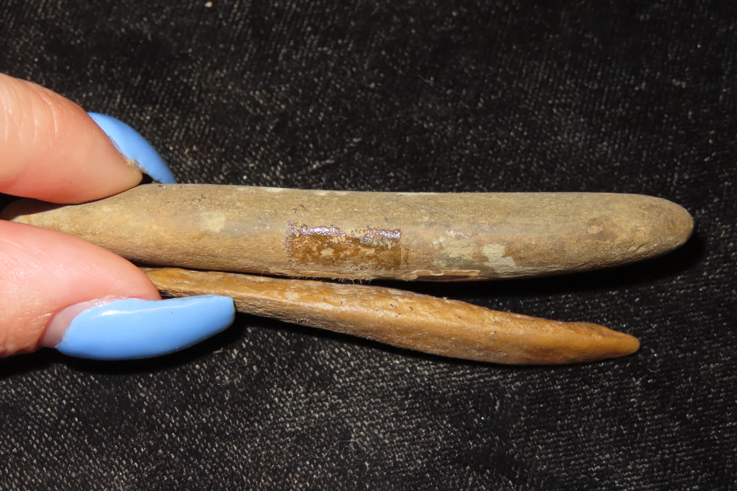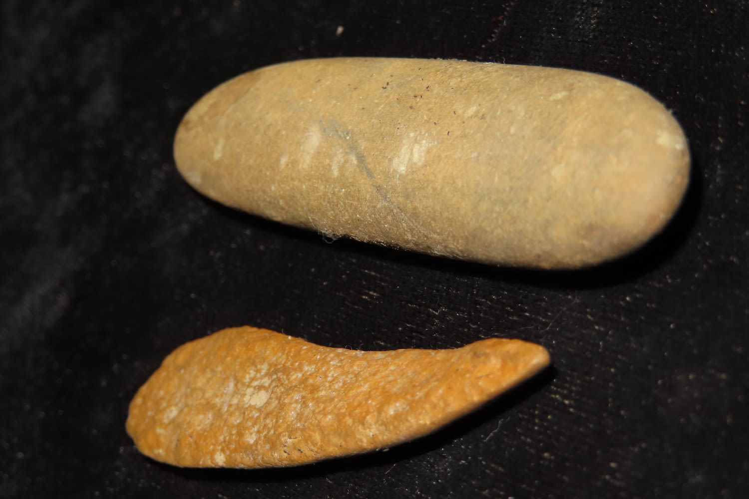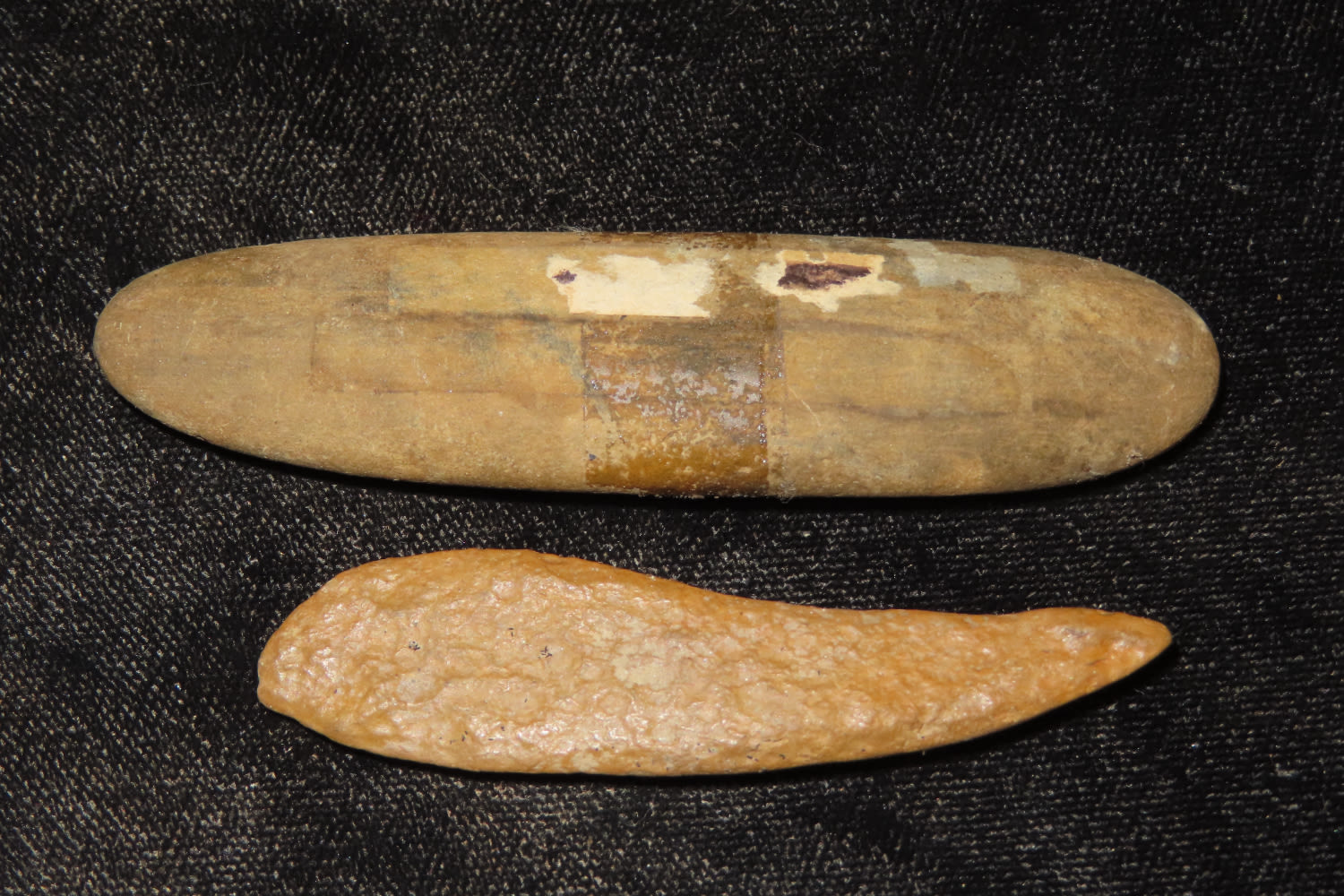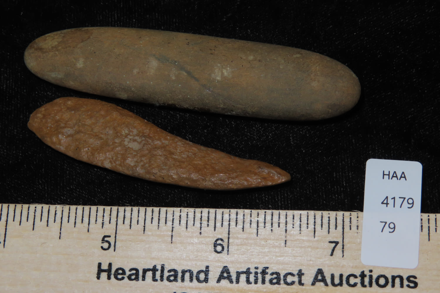 2 1/2″ AND 1 3/8″ 2 PIECE ROCKS From the Thunderbird Native American Museum in NJ. Dorothy Middleton Nelson was the founder, curator and proprietor of the Thunderbird Museum on Mt. Laurel Road during the 1930s through the 1960s. At one time it held one of the largest collections of Native American artifacts (nearly 50,000) in North America. Photo credit: “Dorothy’s Dream: Dorothy Middleton and her Indian Artifact Museum” by O. Kirk Spurr.Dorothy’s Dream, Dorothy Middelton and her Indian Artifact Museum- by O. Kirk Spurr, PhD. For nearly fifty years Dorothy Middleton Nelson and her collection of Indian archaeological and ethnological materials was reputedly the fourth largest private collection in North America at the time.