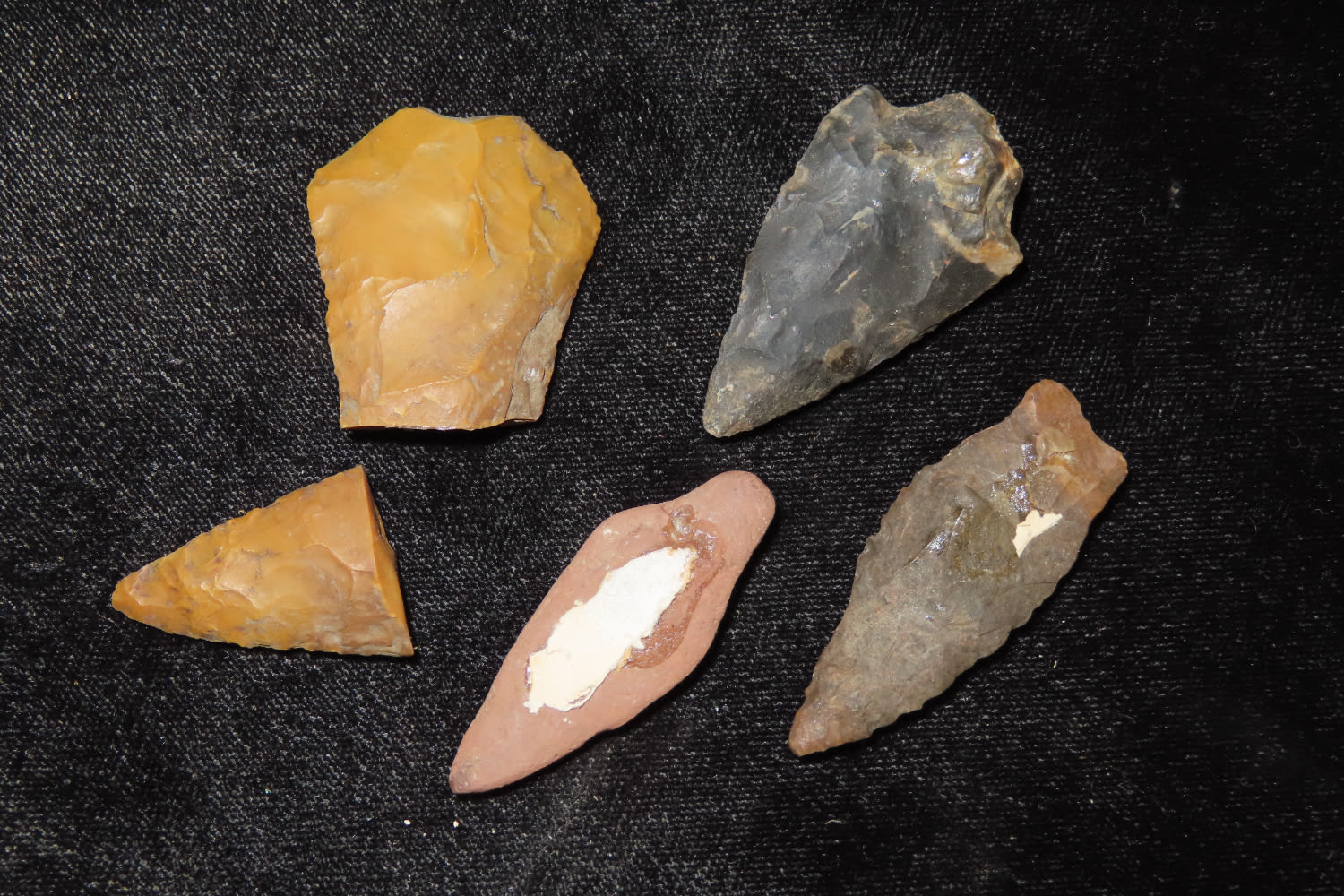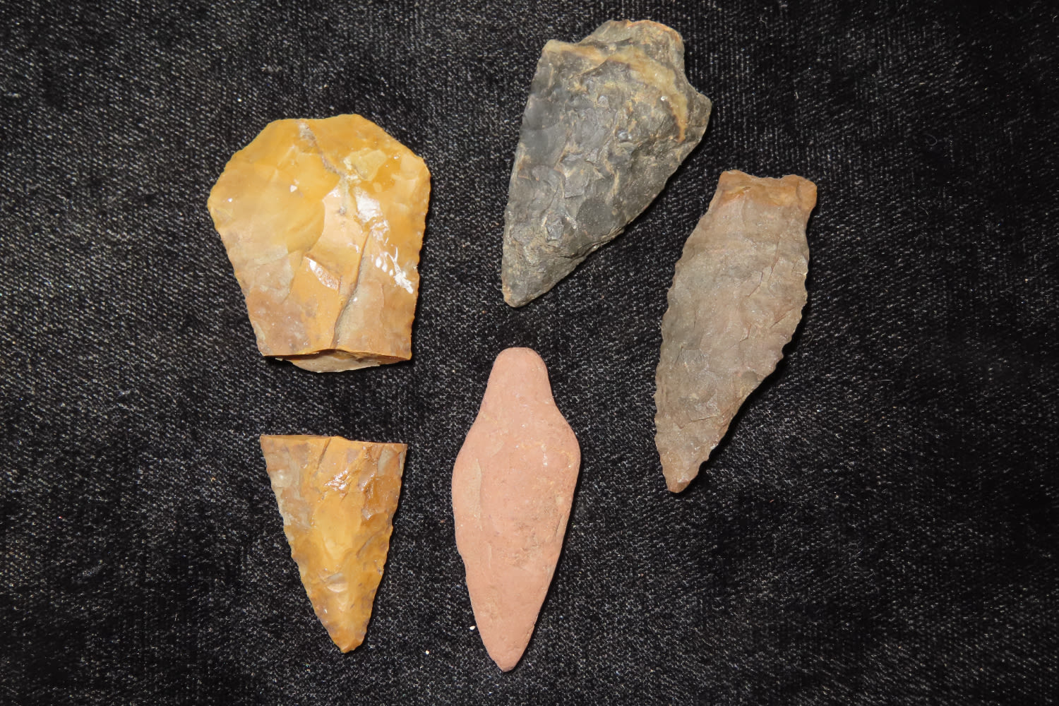 5 PIECE BROKEN ARROWHEADS From the Thunderbird Native American Museum in NJ. Dorothy Middleton Nelson was the founder, curator and proprietor of the Thunderbird Museum on Mt. Laurel Road during the 1930s through the 1960s. At one time it held one of the largest collections of Native American artifacts (nearly 50,000) in North America. Photo credit: “Dorothy’s Dream: Dorothy Middleton and her Indian Artifact Museum” by O. Kirk Spurr.Dorothy’s Dream, Dorothy Middelton and her Indian Artifact Museum- by O. Kirk Spurr, PhD. For nearly fifty years Dorothy Middleton Nelson and her collection of Indian archaeological and ethnological materials was reputedly the fourth largest private collection in North America at the time.
