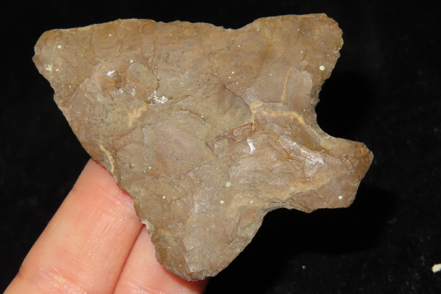 2 1/2″ ARROWHEAD From the Thunderbird Native American Museum in NJ. Dorothy Middleton Nelson was the founder, curator and proprietor of the Thunderbird Museum on Mt. Laurel Road during the 1930s through the 1960s. At one time it held one of the largest collections of Native American artifacts (nearly 50,000) in North America. Photo credit: “Dorothy’s Dream: Dorothy Middleton and her Indian Artifact Museum” by O. Kirk Spurr.Dorothy’s Dream, Dorothy Middelton and her Indian Artifact Museum- by O. Kirk Spurr, PhD. For nearly fifty years Dorothy Middleton Nelson and her collection of Indian archaeological and ethnological materials was reputedly the fourth largest private collection in North America at the time.
