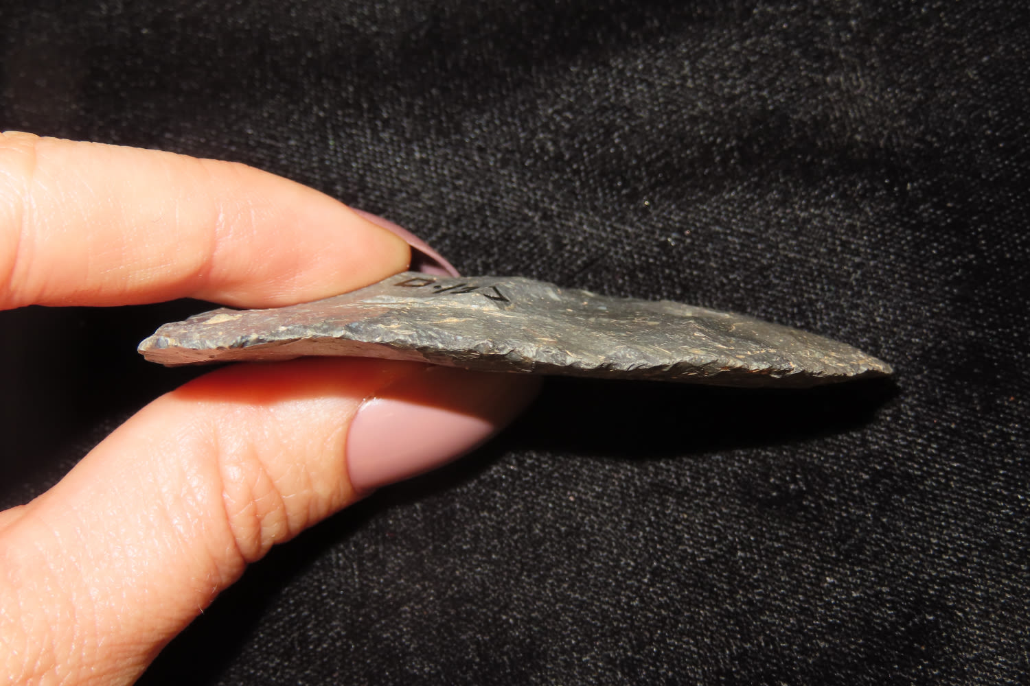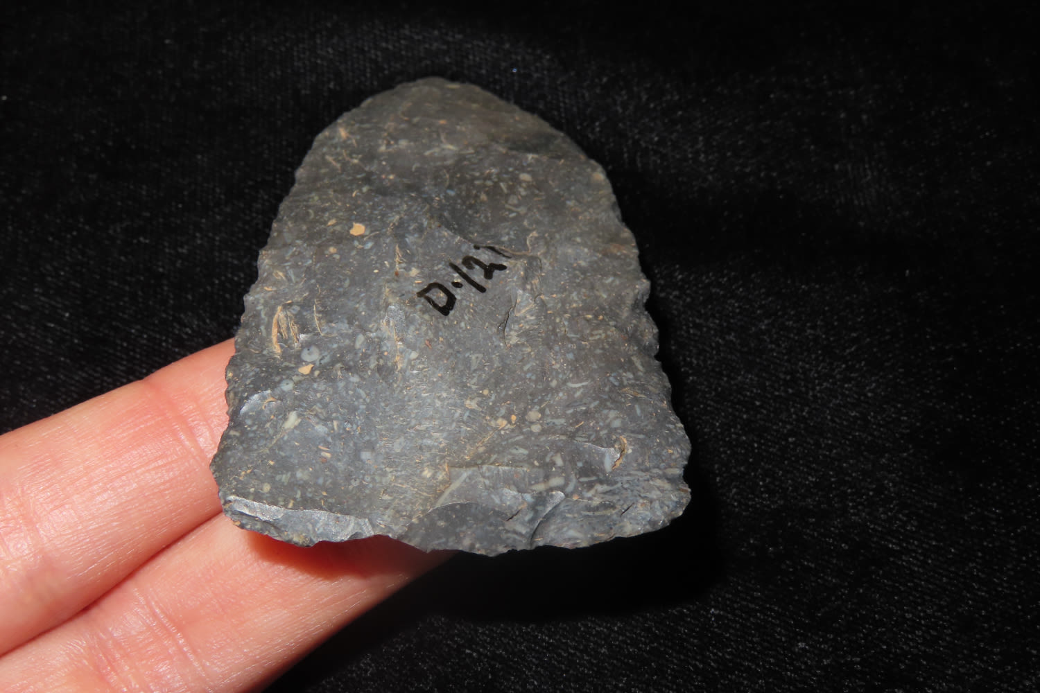 2 3/4″ Early Archaic knife EX. Sam Wasion Collection Authentic Native American Artifact