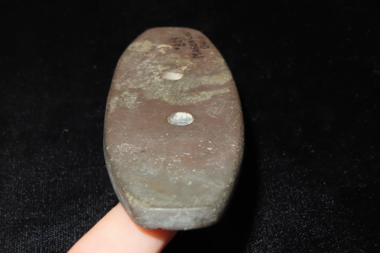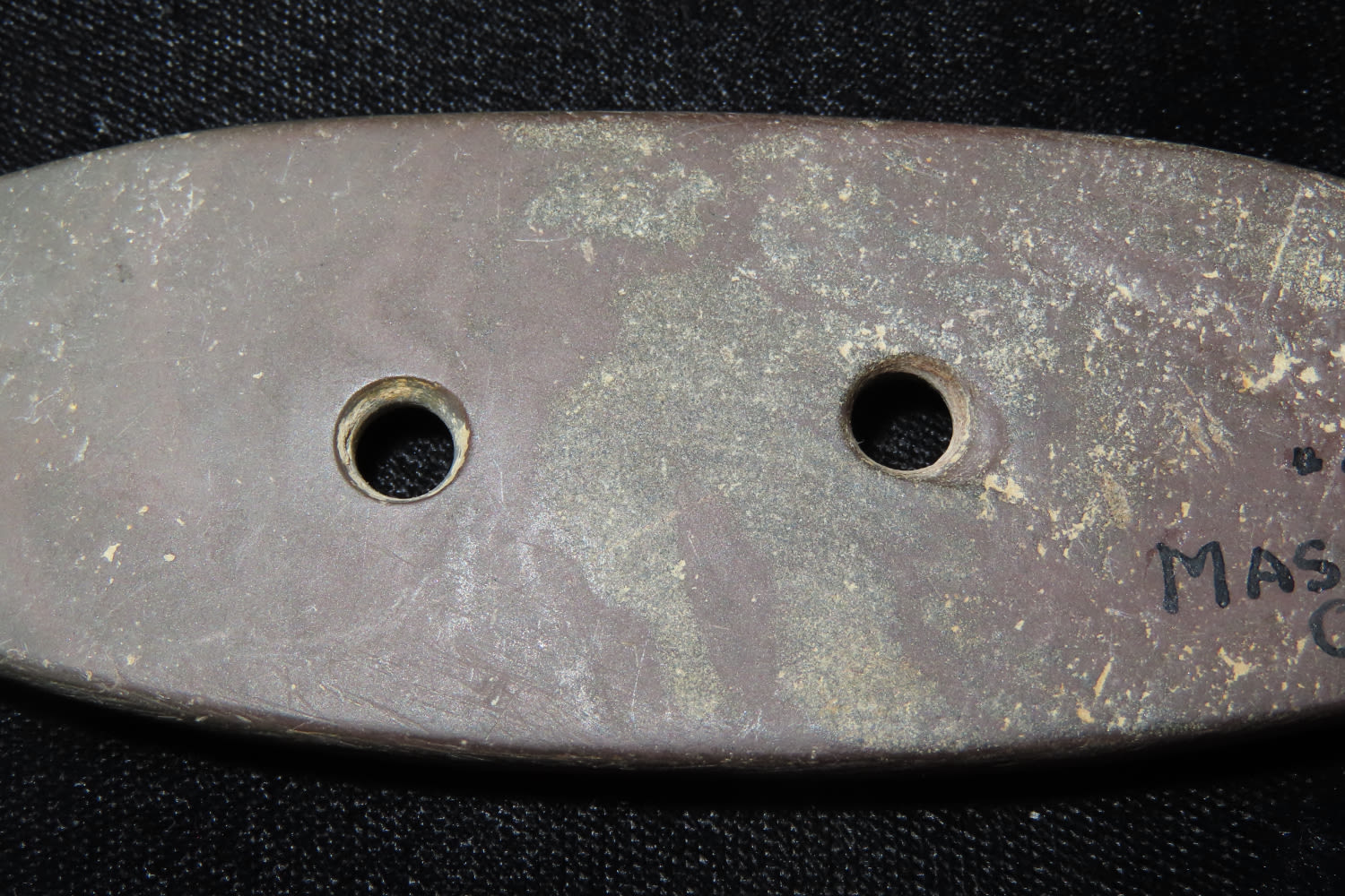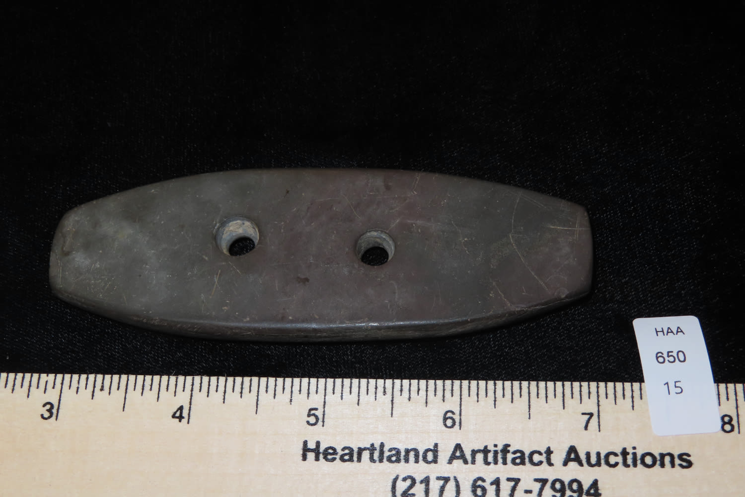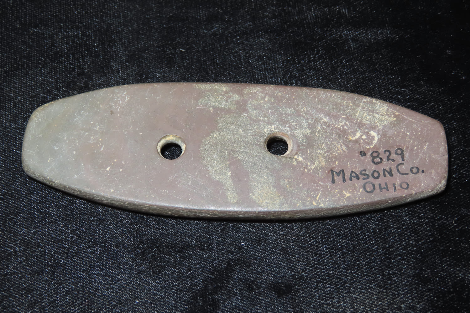 4 1/4″ Gorget found in mason Co., Ohio. EX. Sam Wasion Collection Authentic Native American Artifact