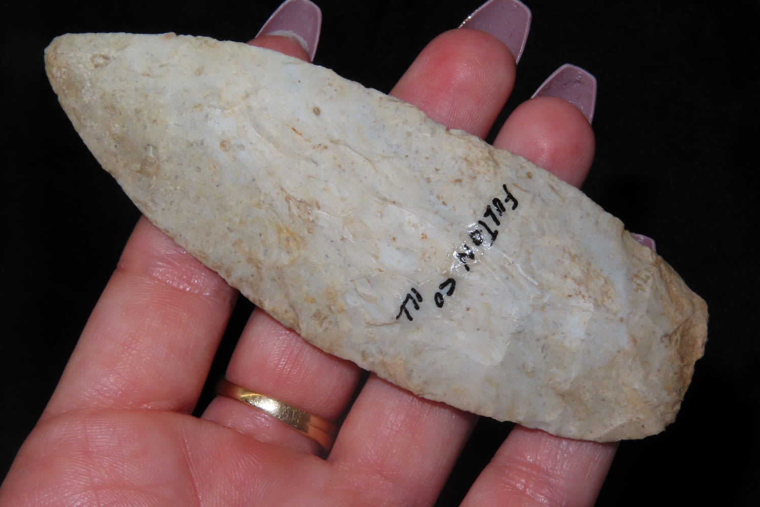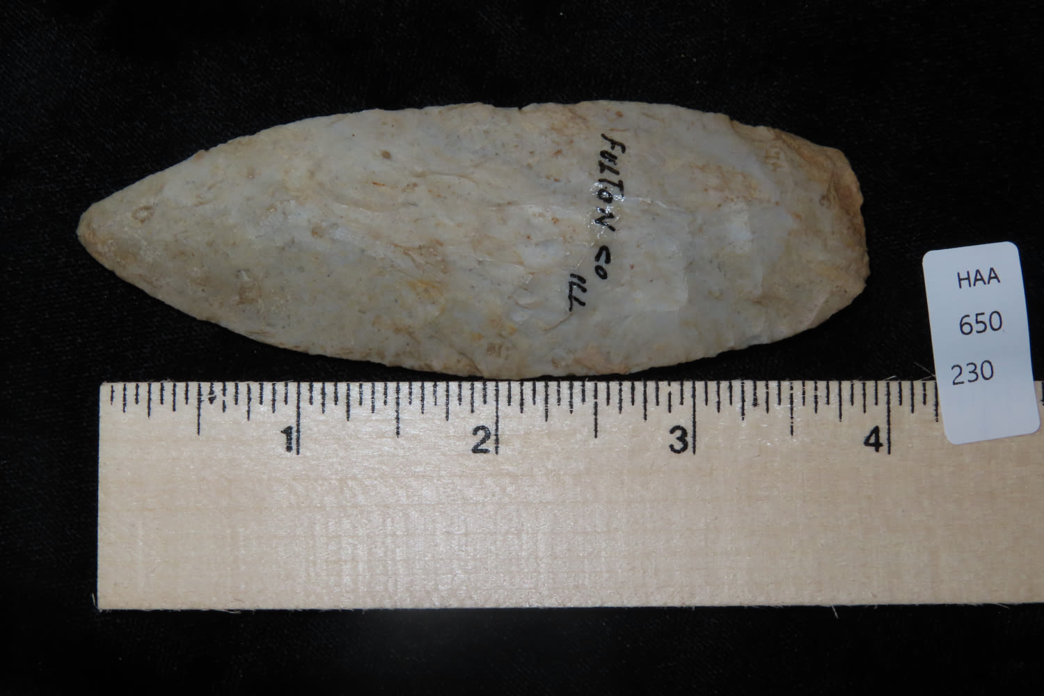 4 1/8″ Early Archaic Knife found in Fulton Co., Illinois EX. Sam Wasion Collection Authentic Native American Artifact