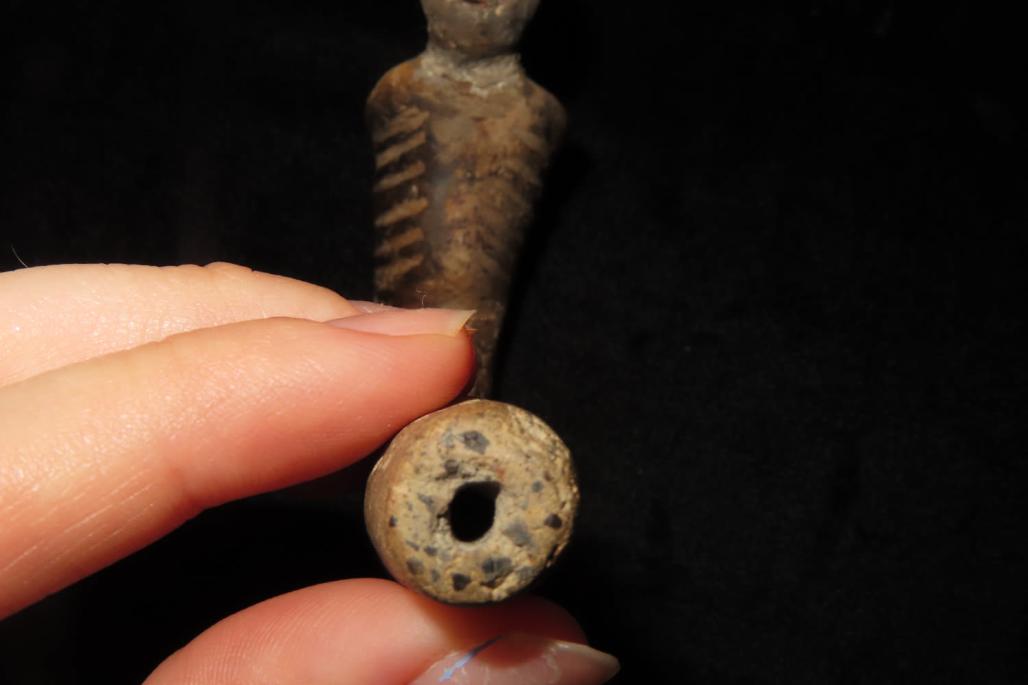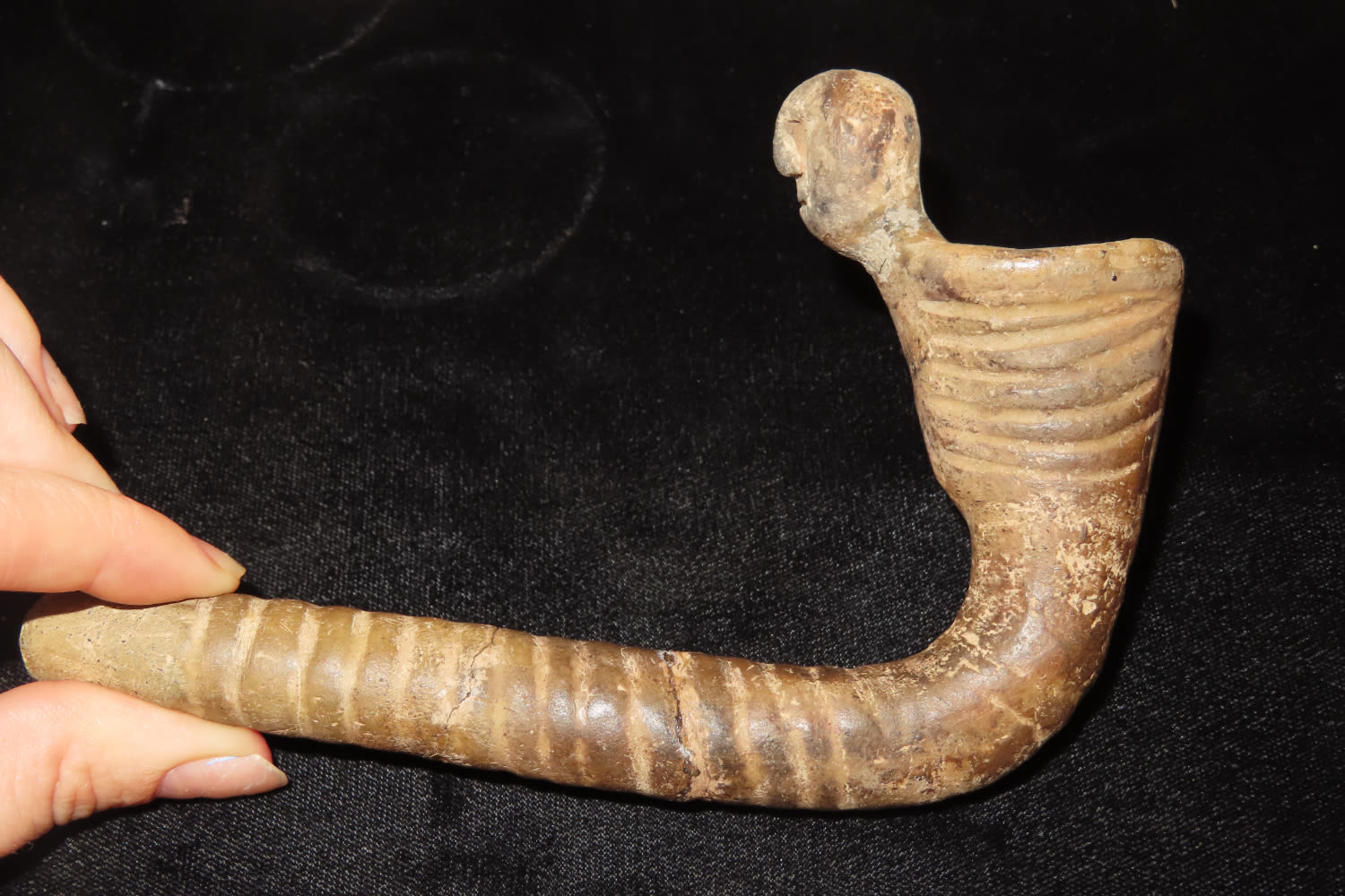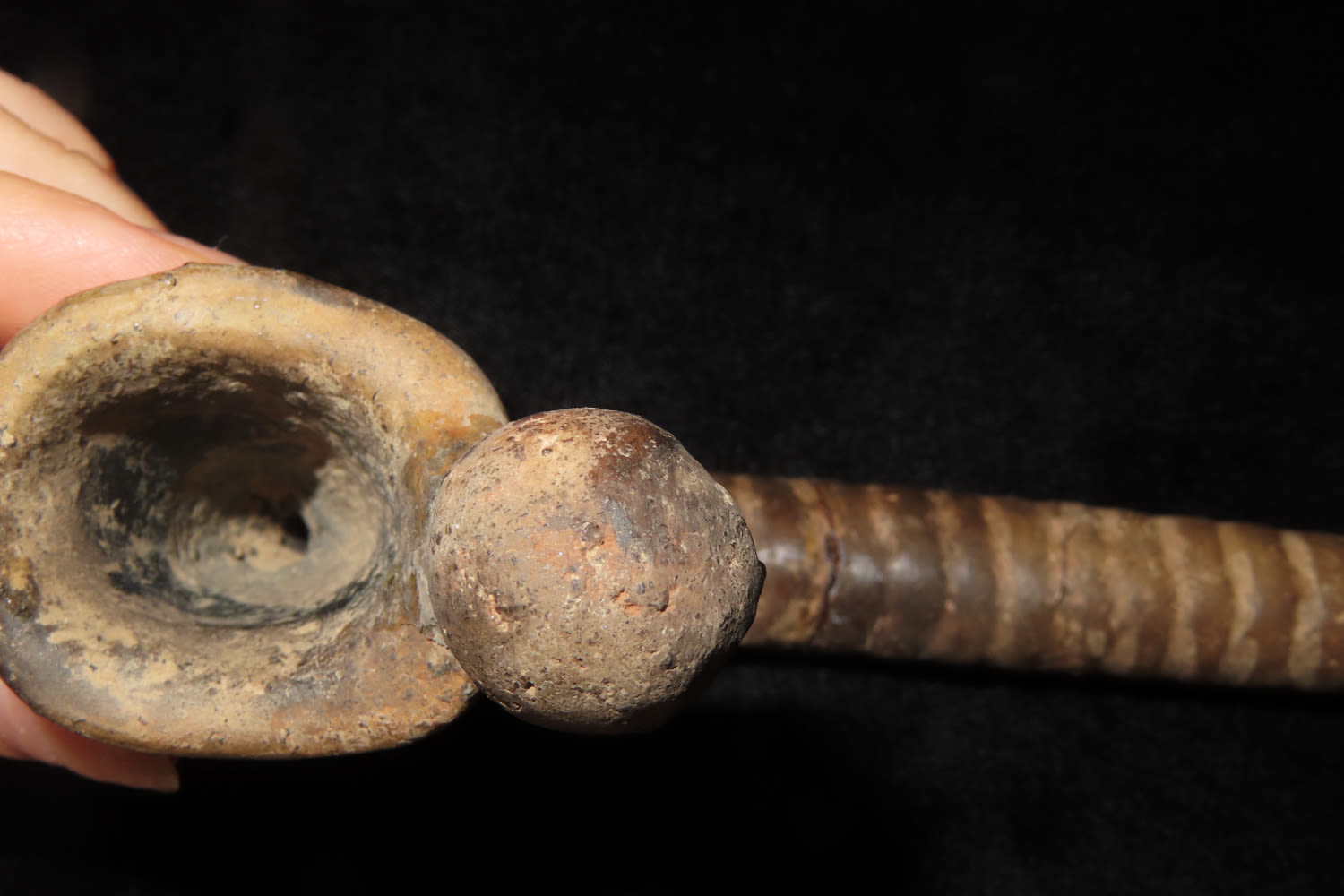 6″ Iroquois pipe with human effigy head, glued / restored EX. Sam Wasion Collection Authentic Native American Artifact