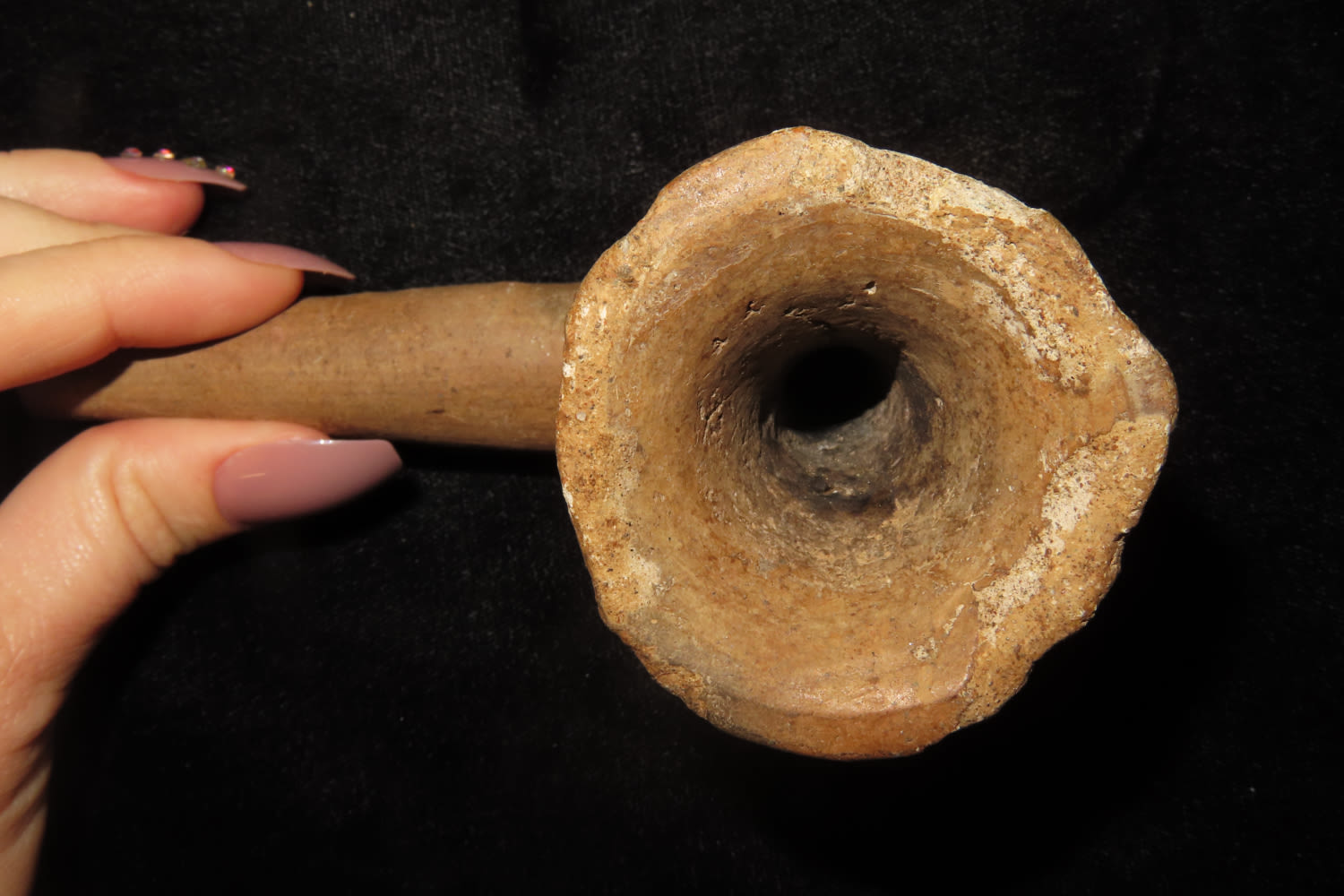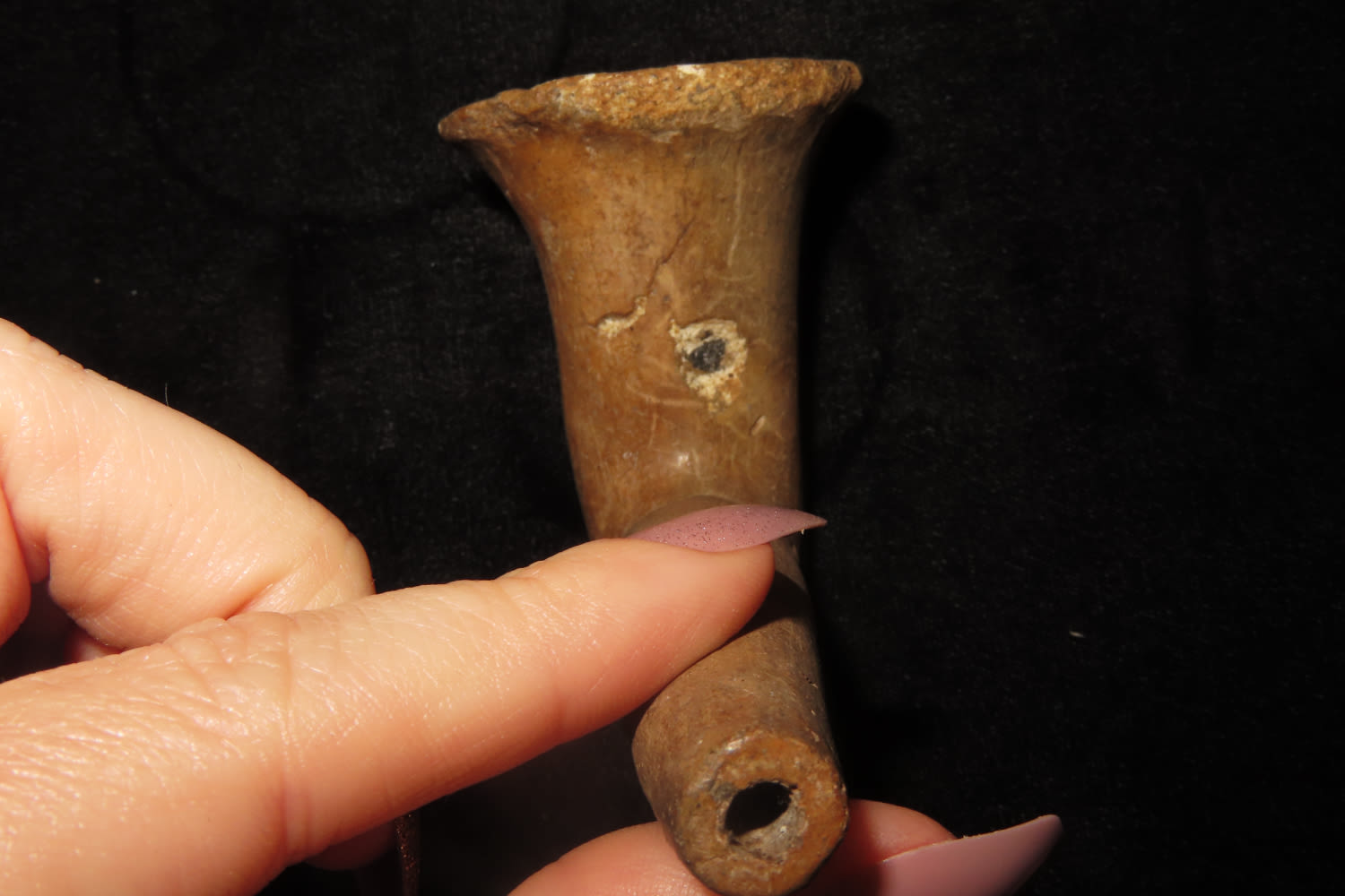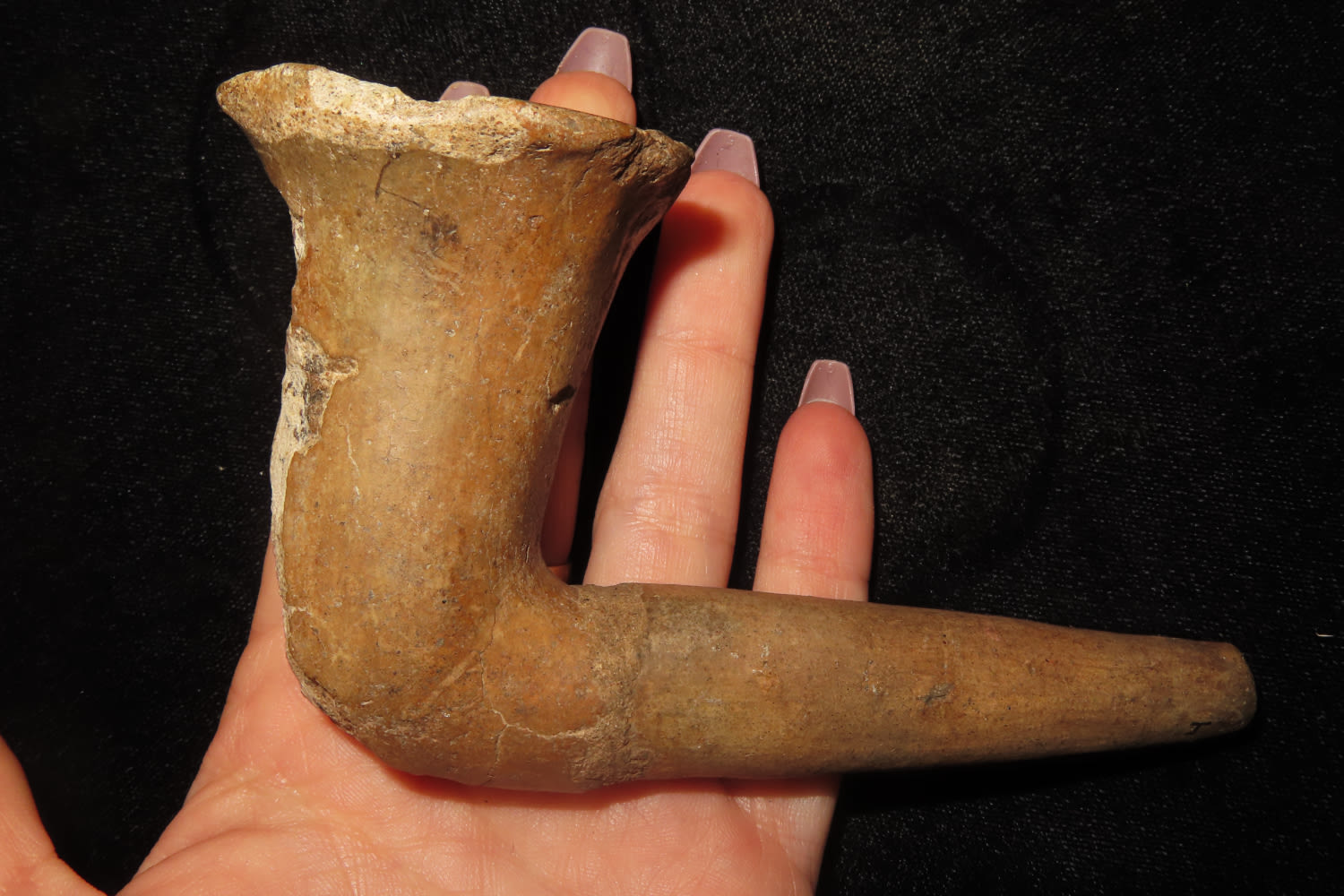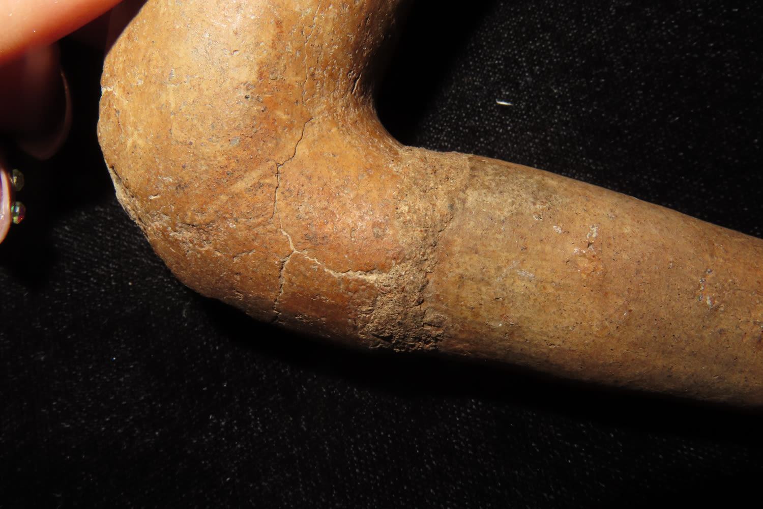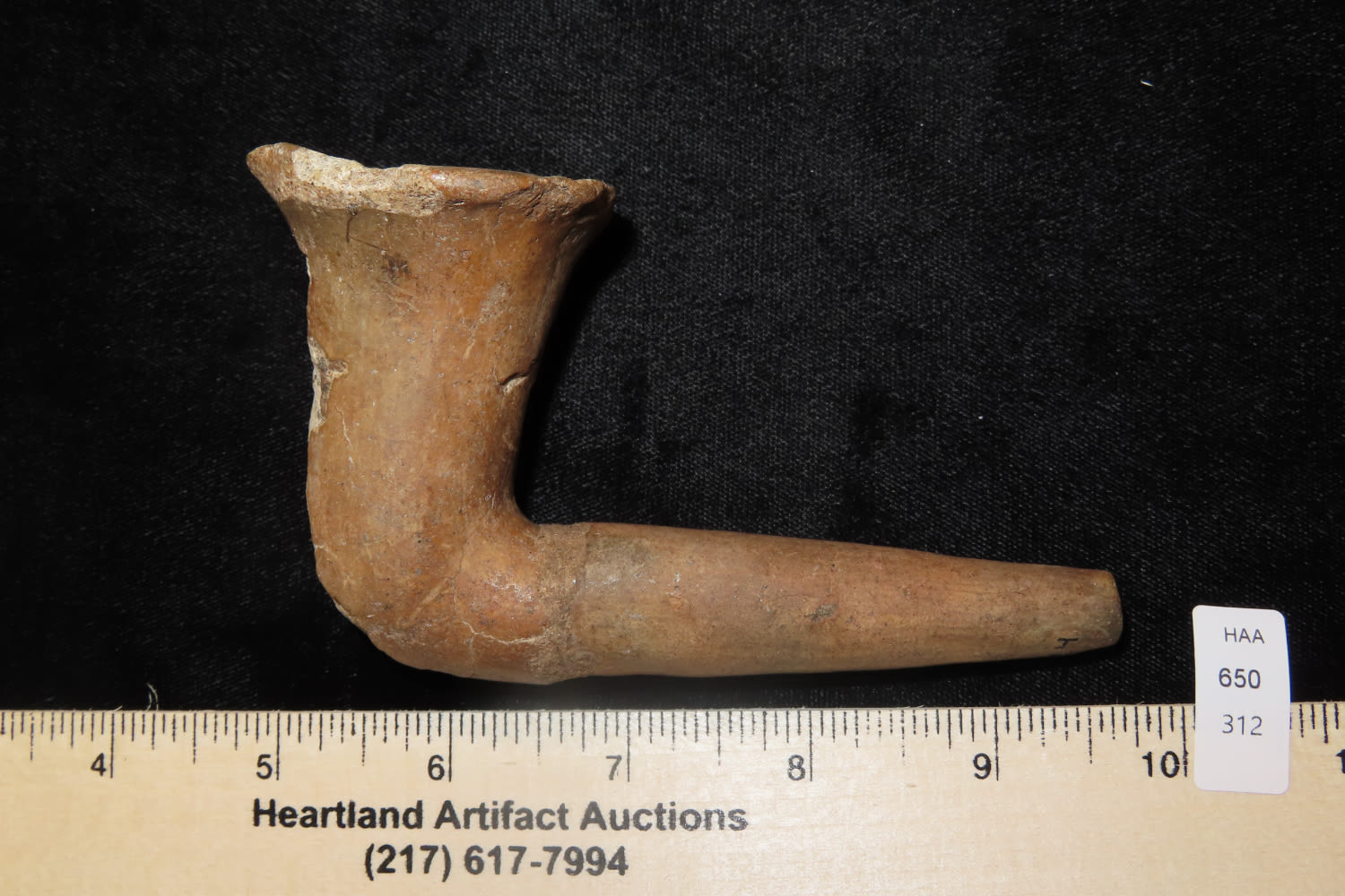 4 3/4″ Pottery elbow Historic Pipe with Restoration found in Monroe County New York Ex Sam Wasion Collection