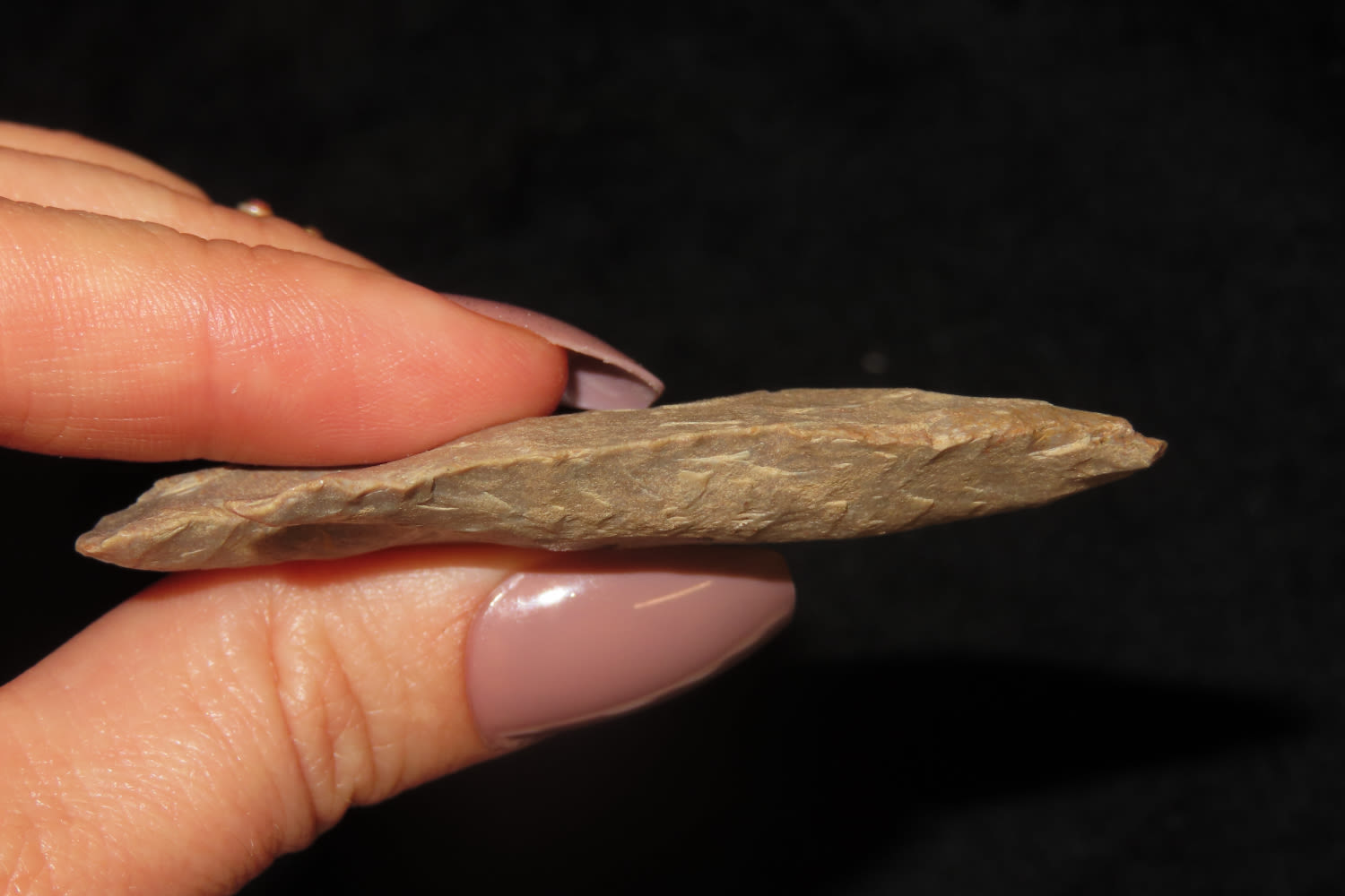 2 1/2″ Archaic Dog Leg bevel Moderate dings on tip from Wisconsin Ex Sam Wasion Collection