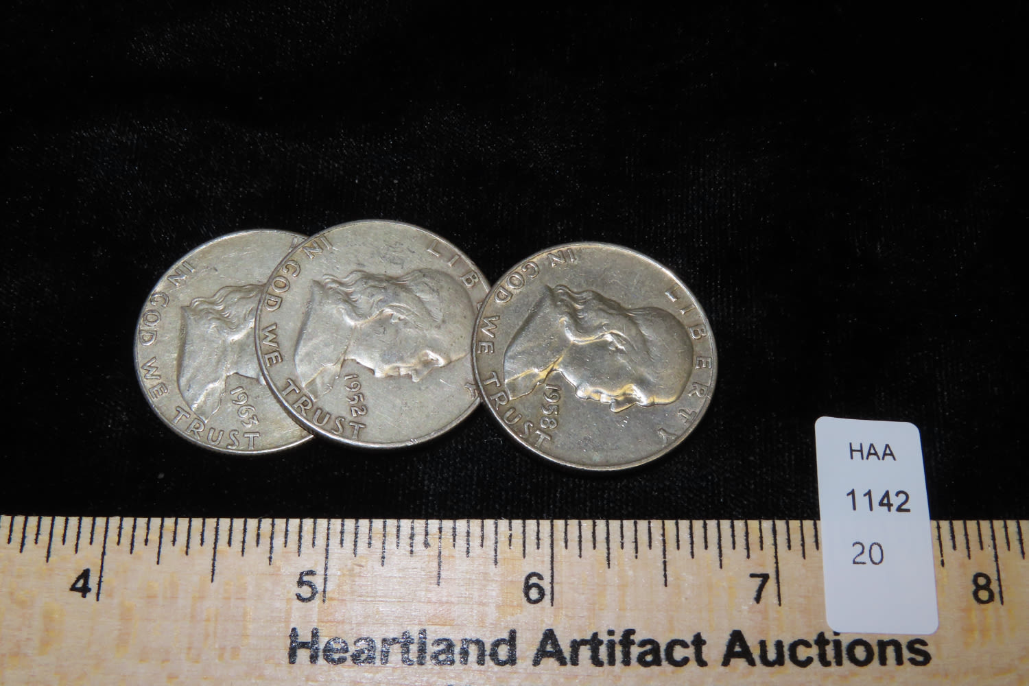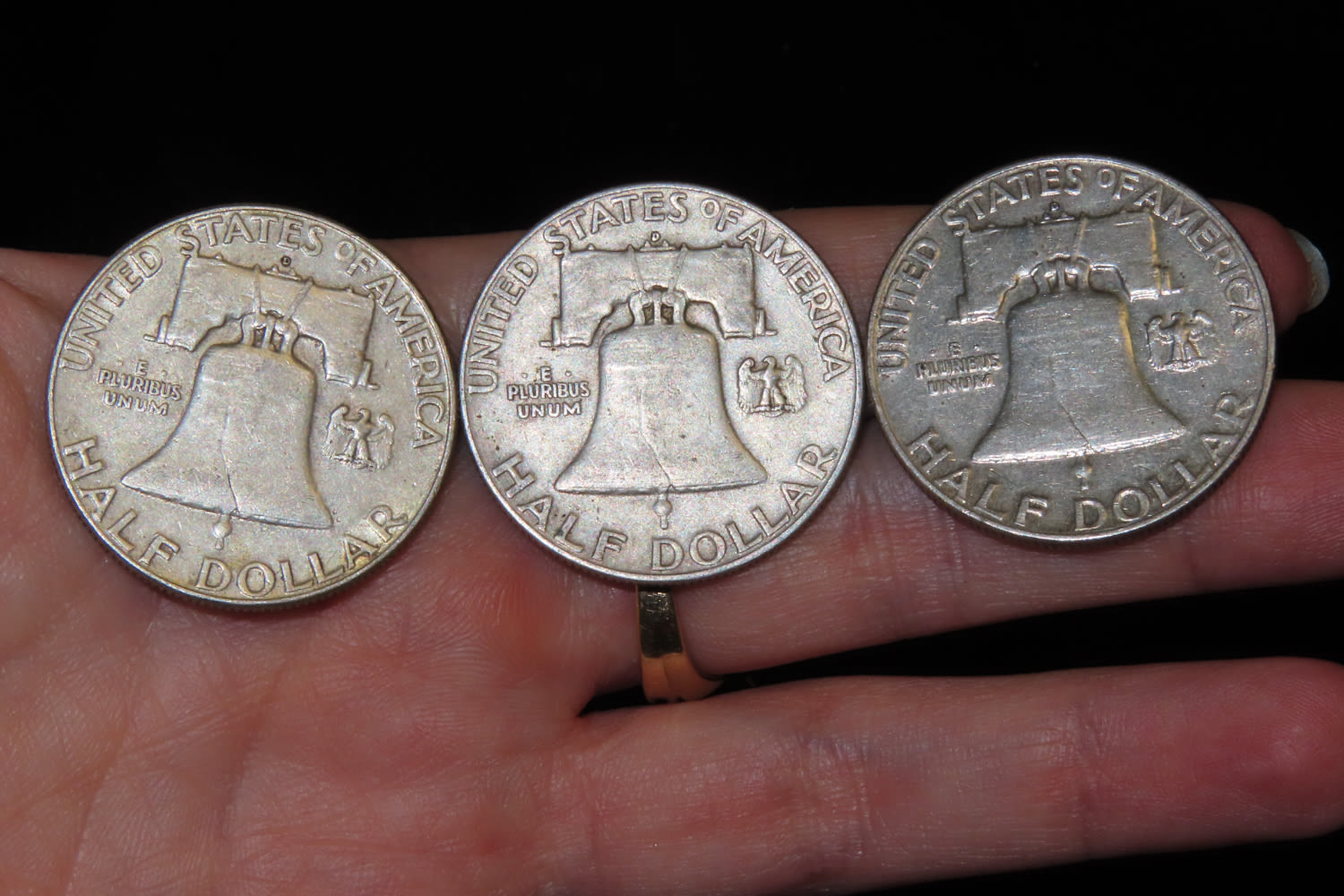 Lot of 3 Ben Franklin/Liberty Bell Half Dollars