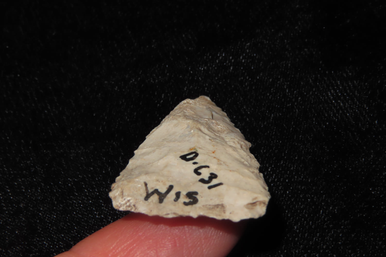 1 1/4″ Triangle found in Wisconsin EX. Sam Wasion Collection Authentic Native American Artifact