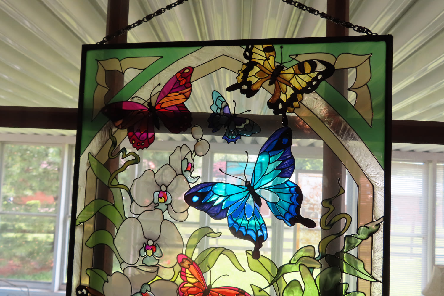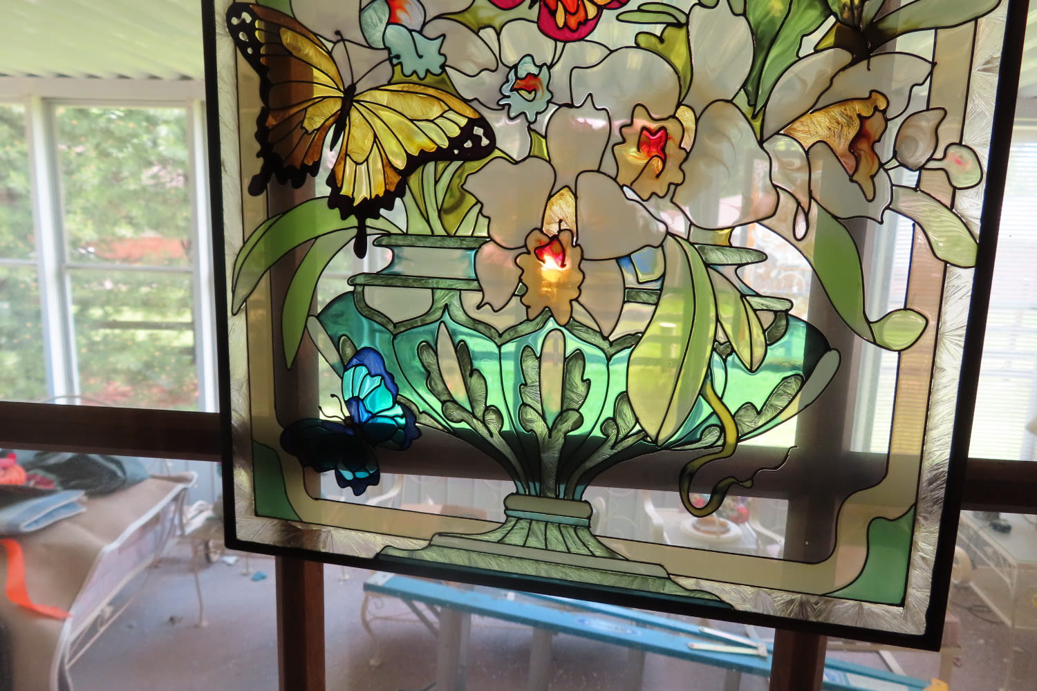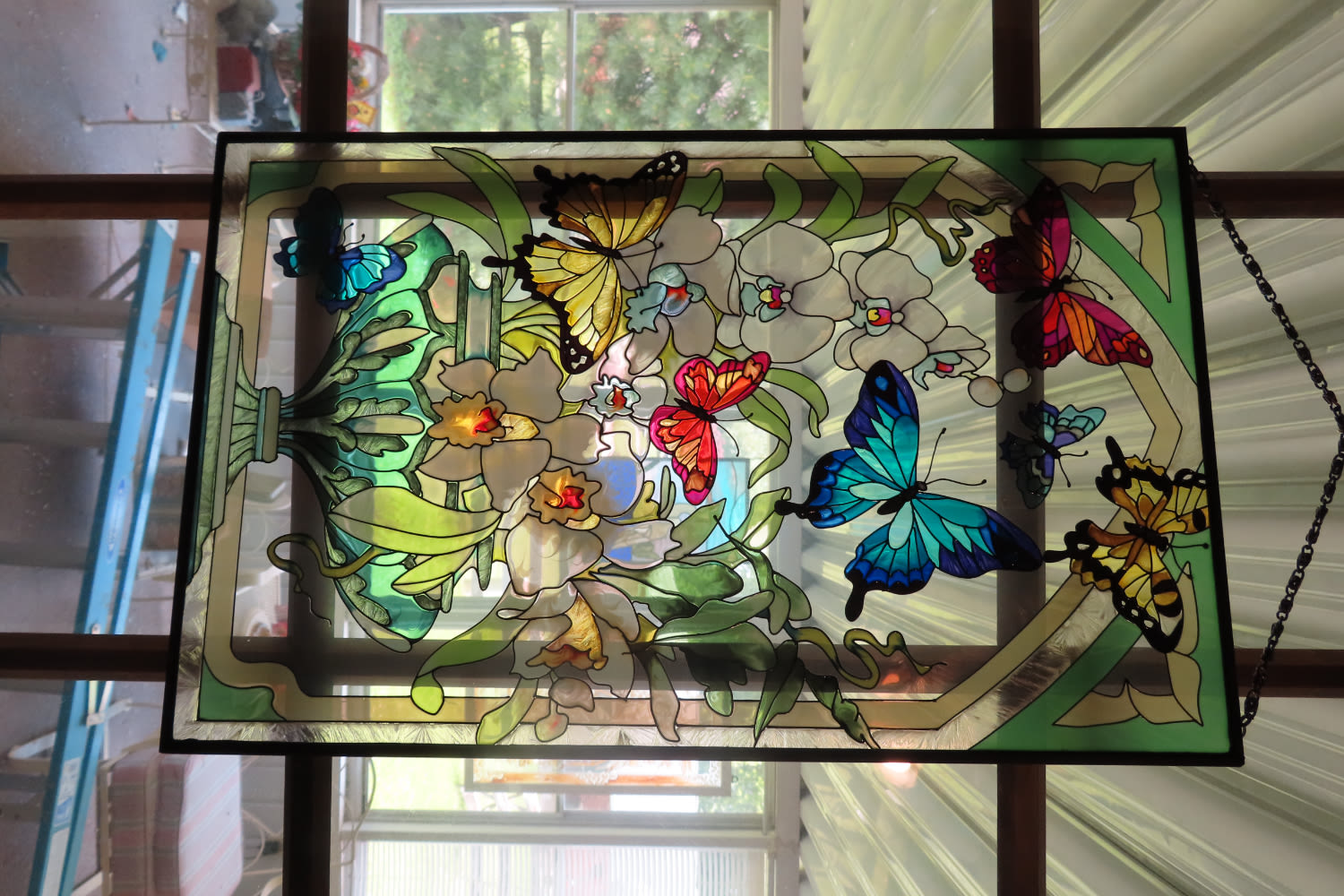 DECORATIVE STAINED GLASS ARTWORK PIECE WITH BUTTERFLIES 16″ X 10″
