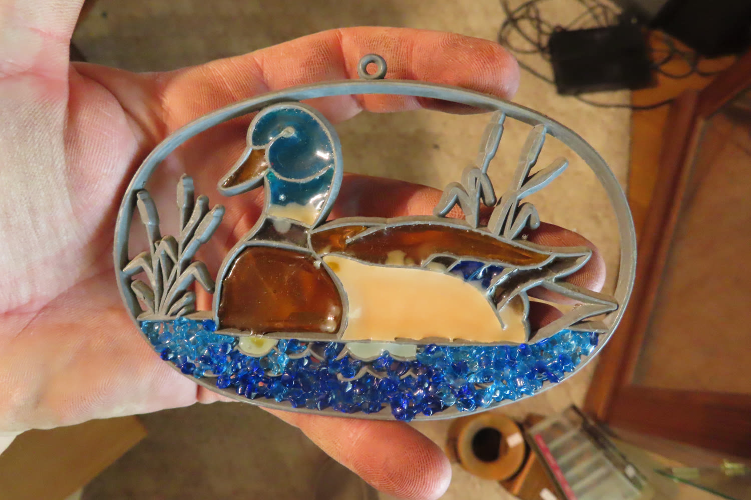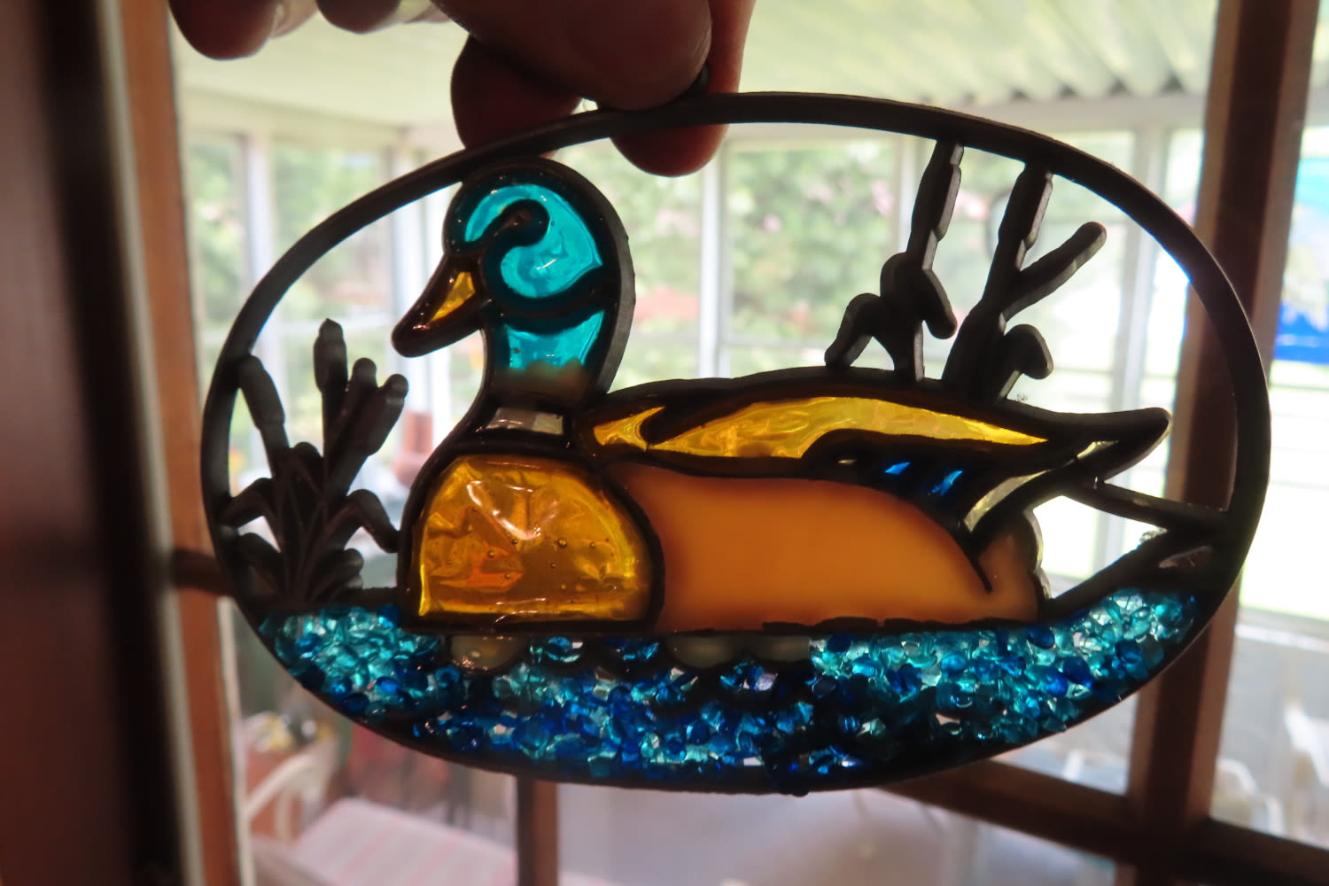 DECORATIVE STAINED GLASS ARTWORK PIECE WITH DUCK 4 3/4″