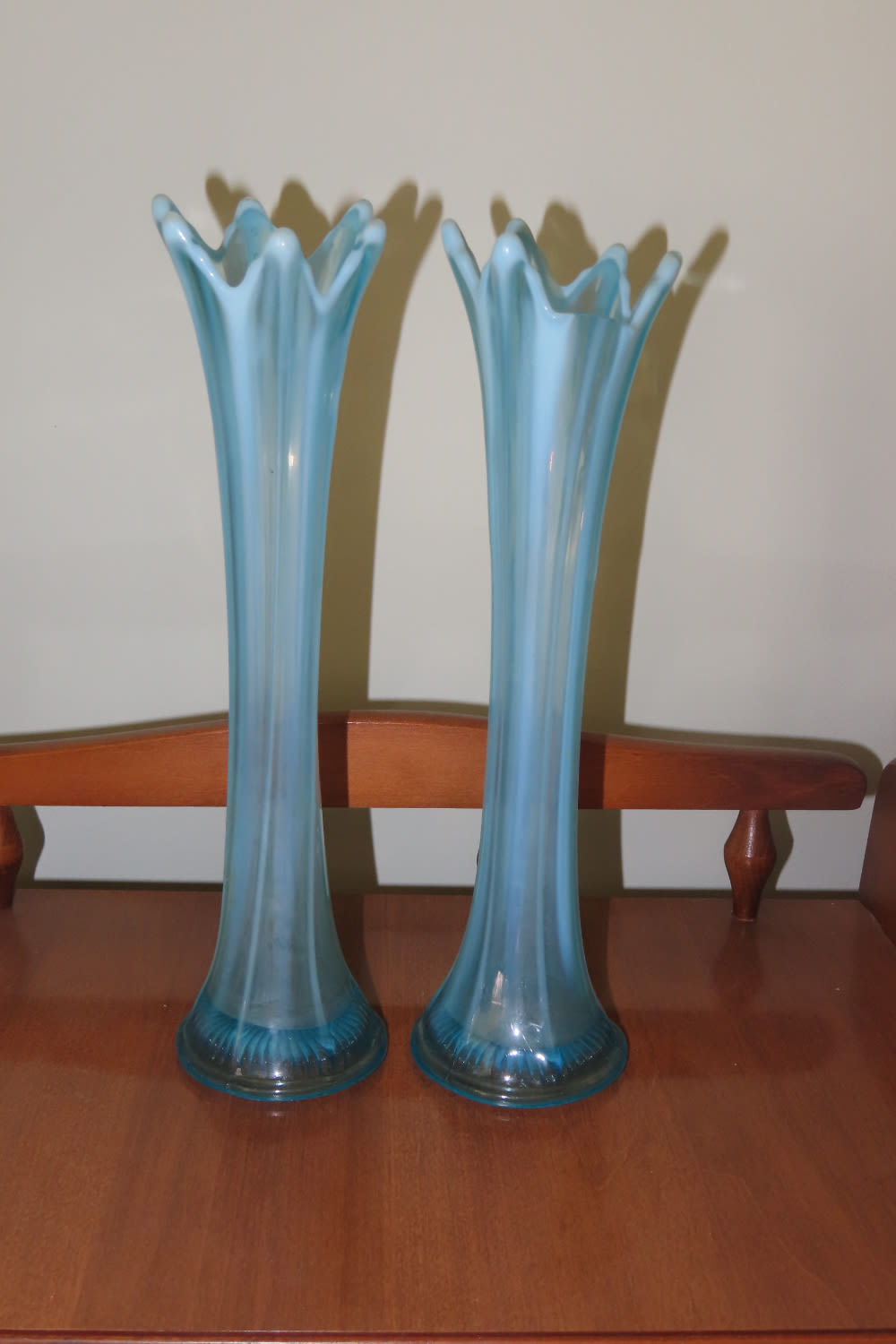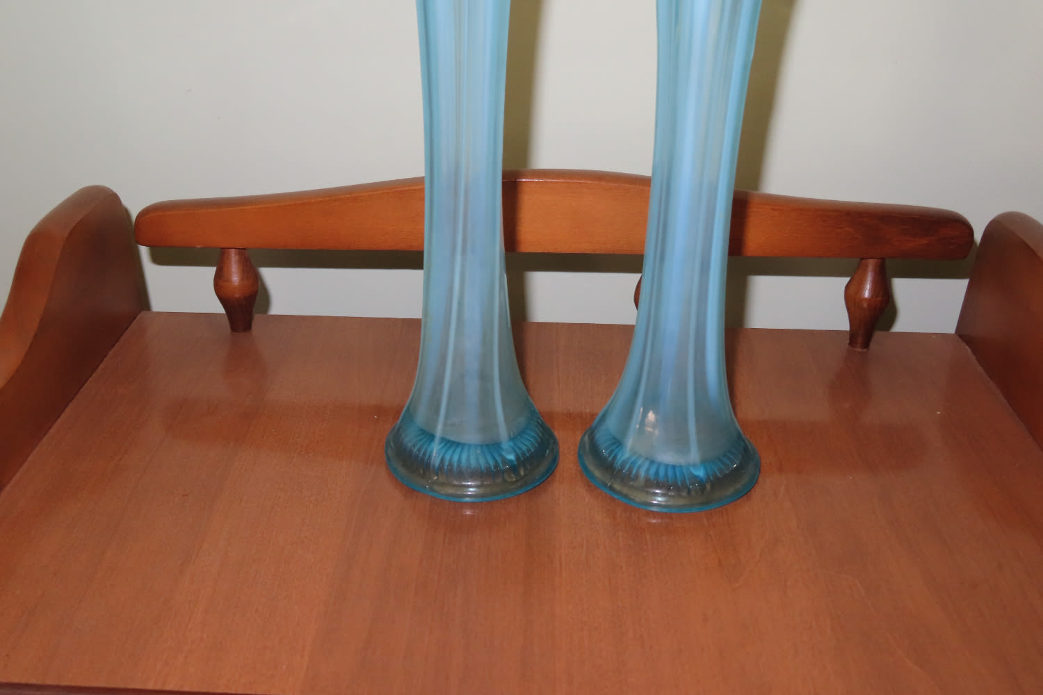 PAIR OF HIGHLY DECORATIVE GLASS VASES APPROX 10 3/4″ TALL