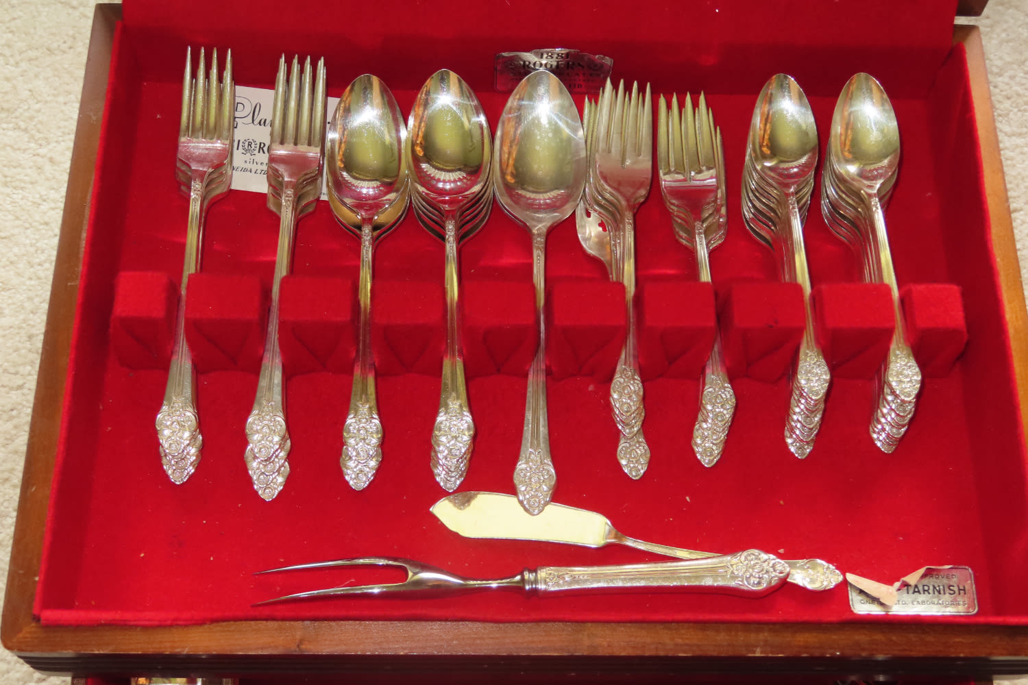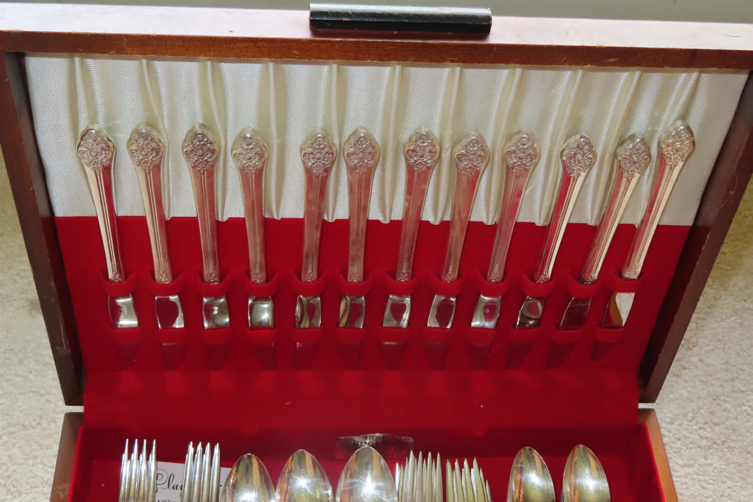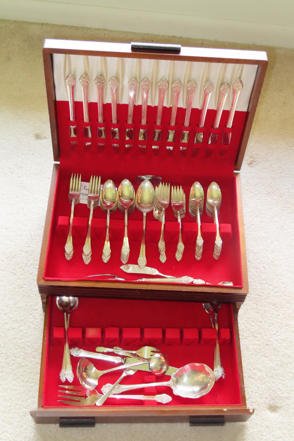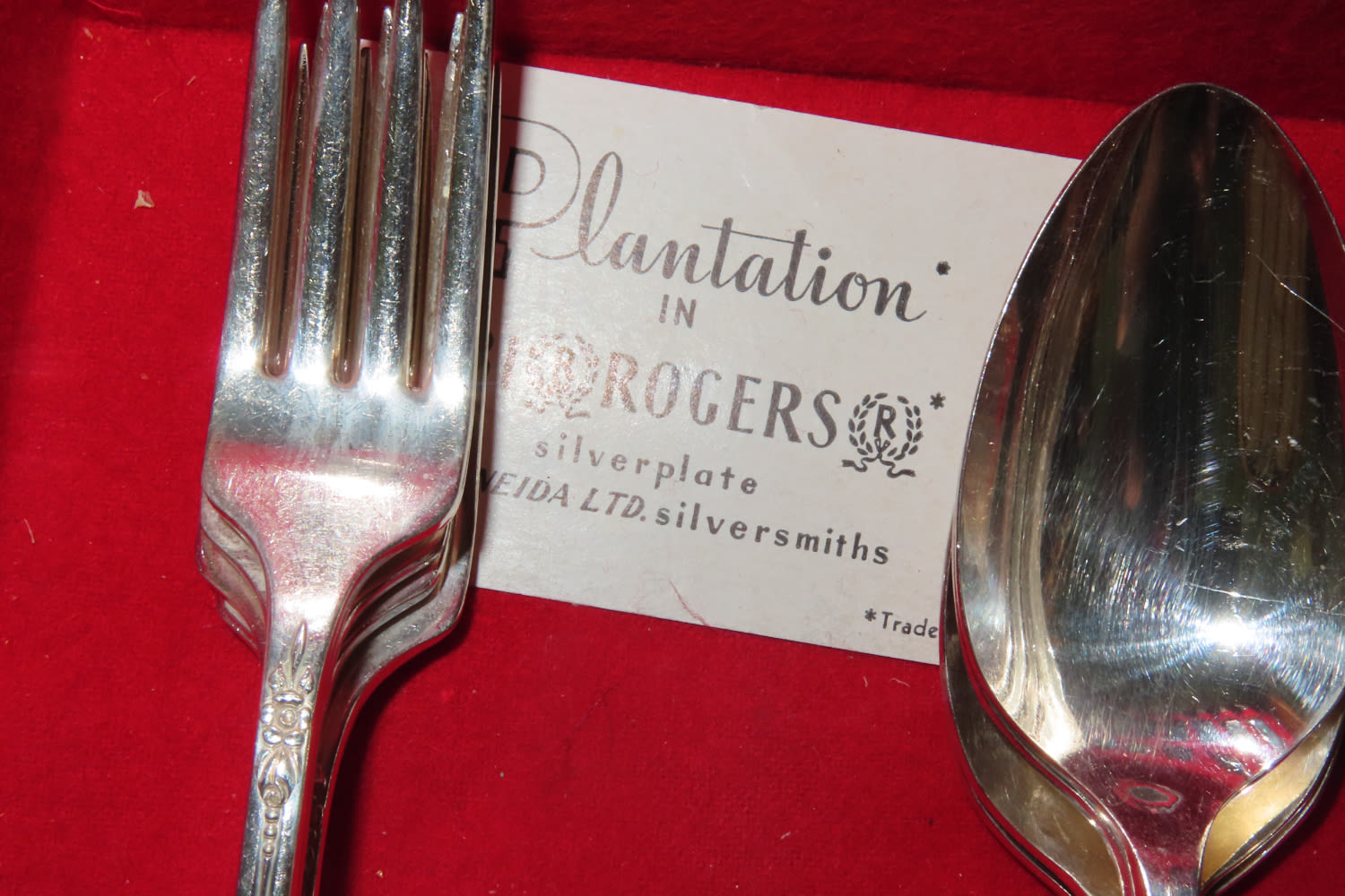 SILVER PLATED FLATWARE BY ONEIDA LTD SILVERSMITHS, “PLANTATION IN ROGERS” PATTERN 1881