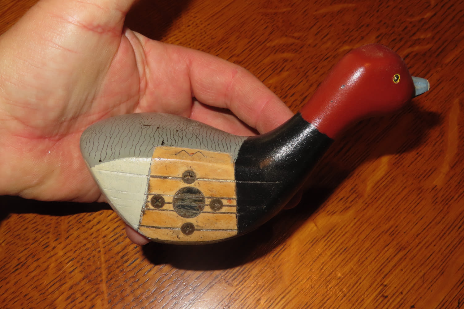 MINIATURE DUCK DECOY MADE OUT OF AN ANTIQUE GOLF THREE WOOD DISPLAY