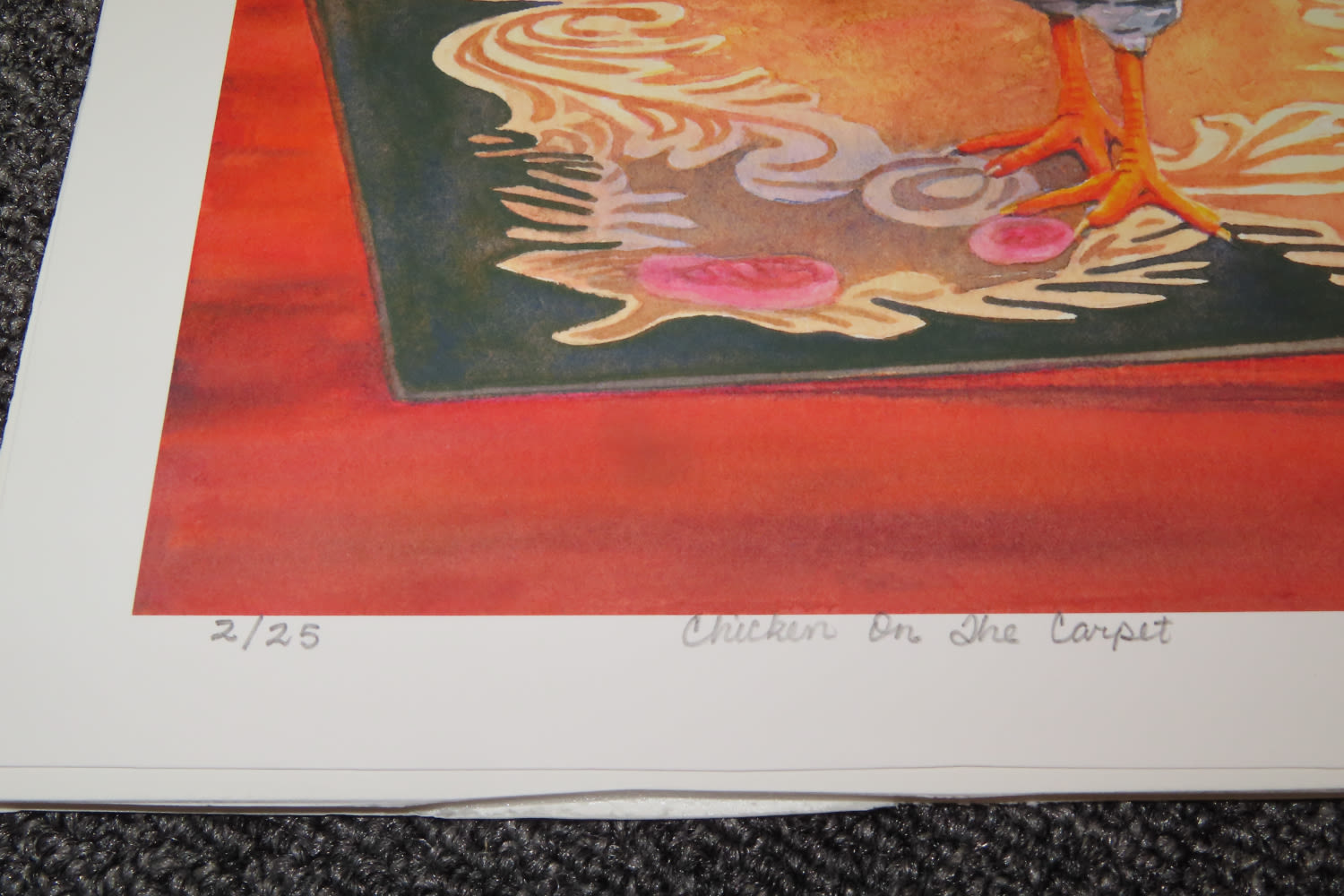 “CHICKEN ON THE CARPET”- SIGNED PRINT #2 OF 25 BY BRENDA BECK FISHER FROM HANNIBAL, MISSOURI
