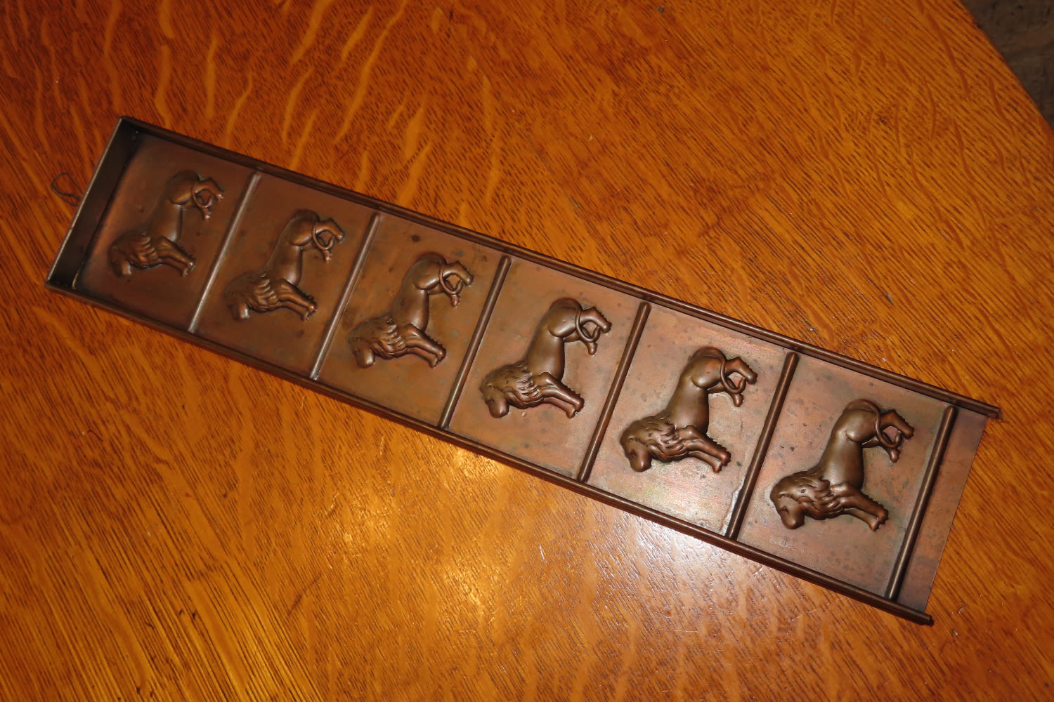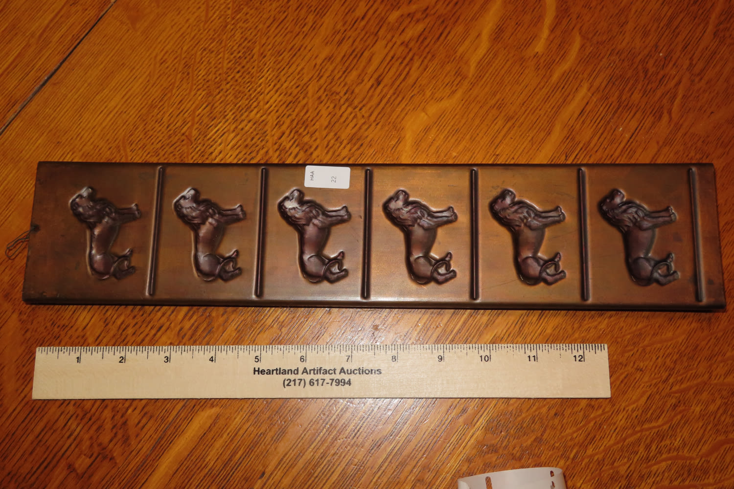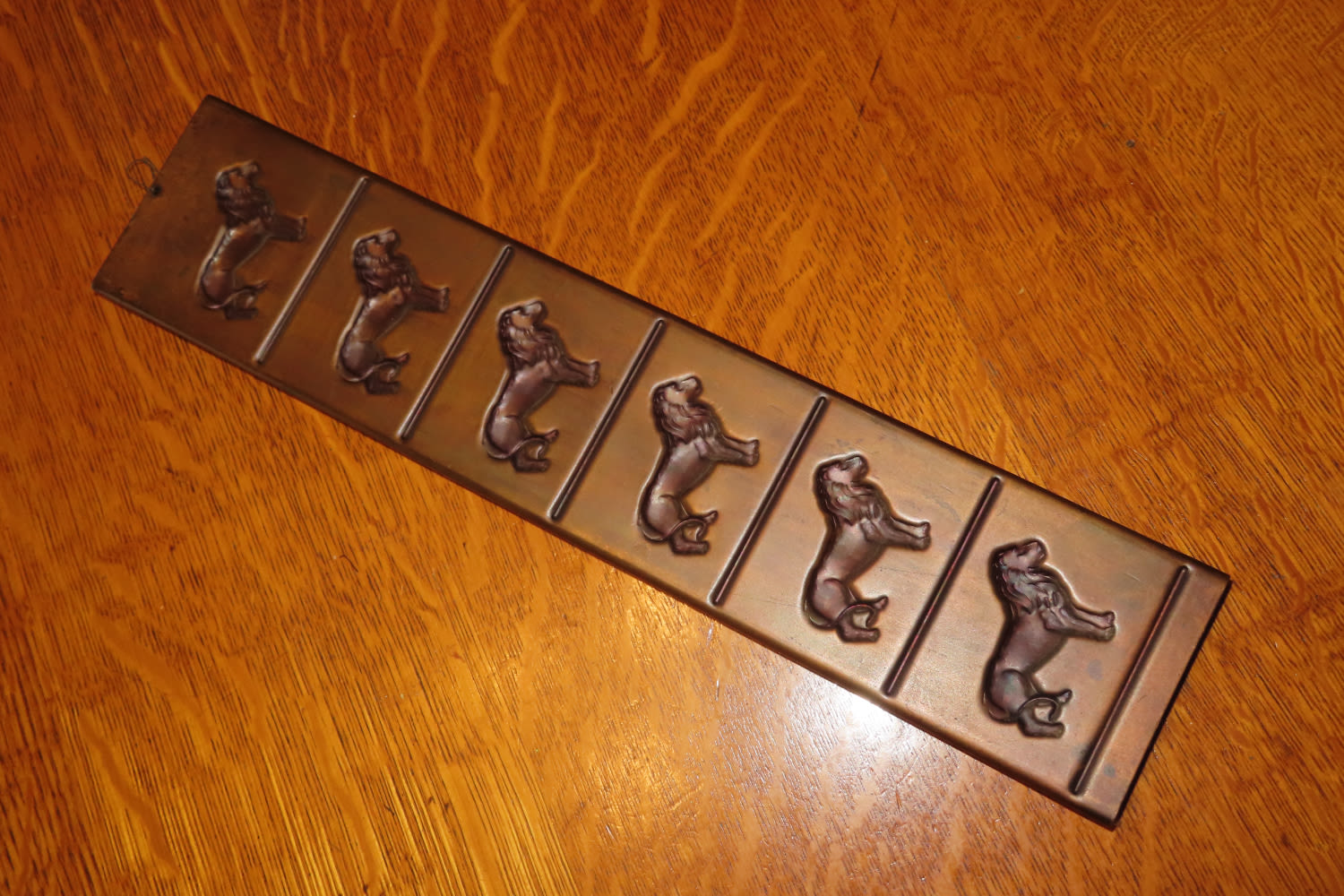ANTIQUE BRASS COOKIE MOLD OF LIONS