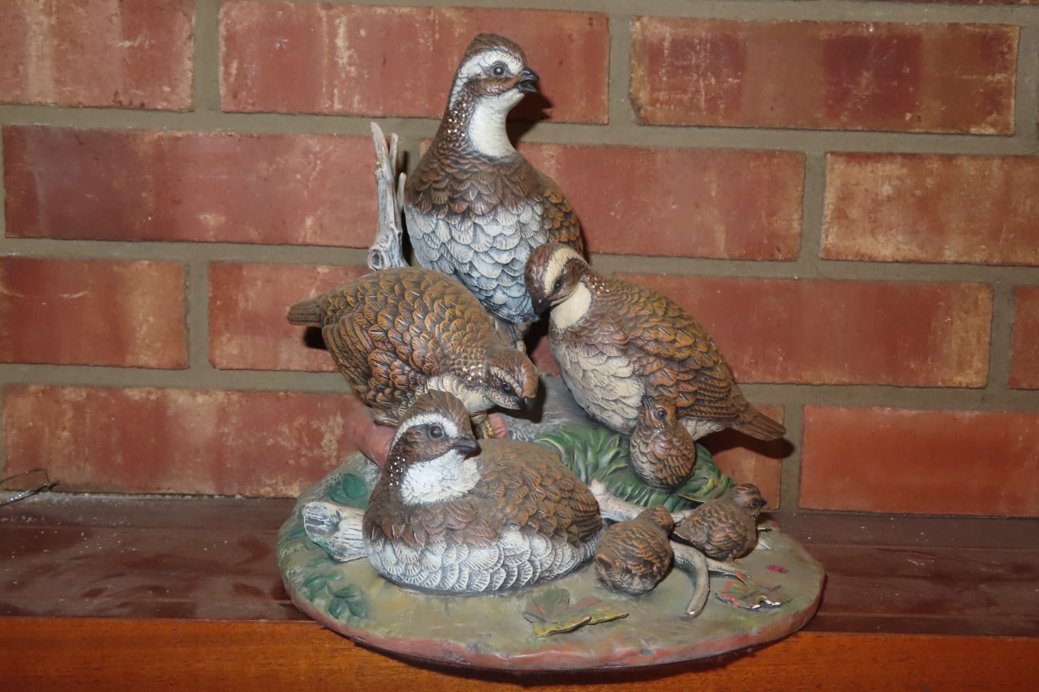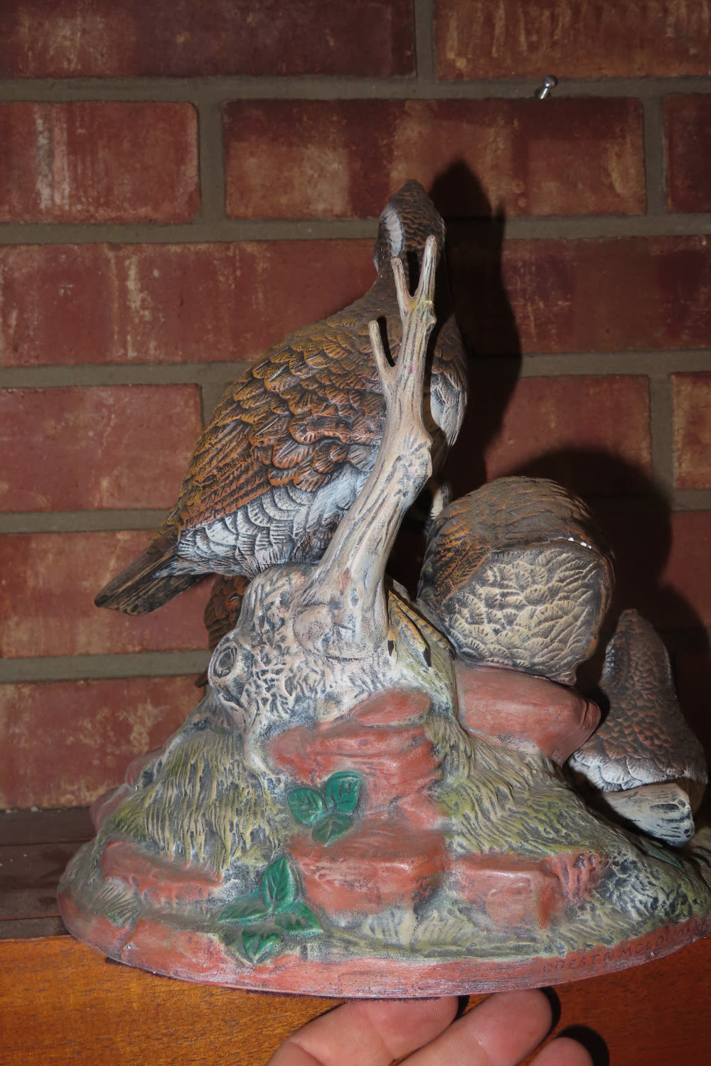 CERAMIC SCENE WITH BOB WHITE QUAIL DISPLAY CREST MOLD INC 1983