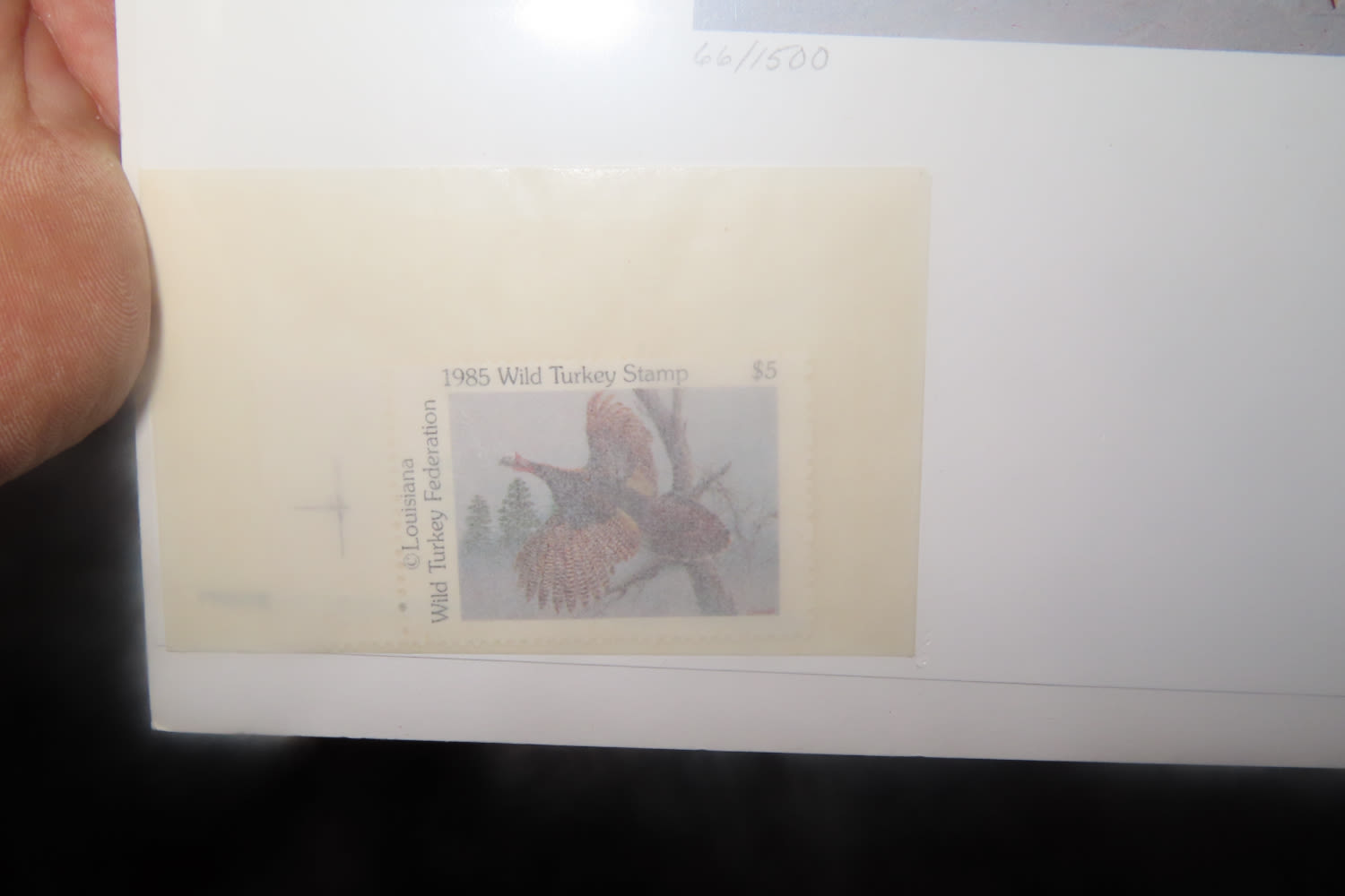 NATIONAL WILD TURKEY FEDERATION PRINT WITH STAMP 1985 PRINT 66 OF 1500