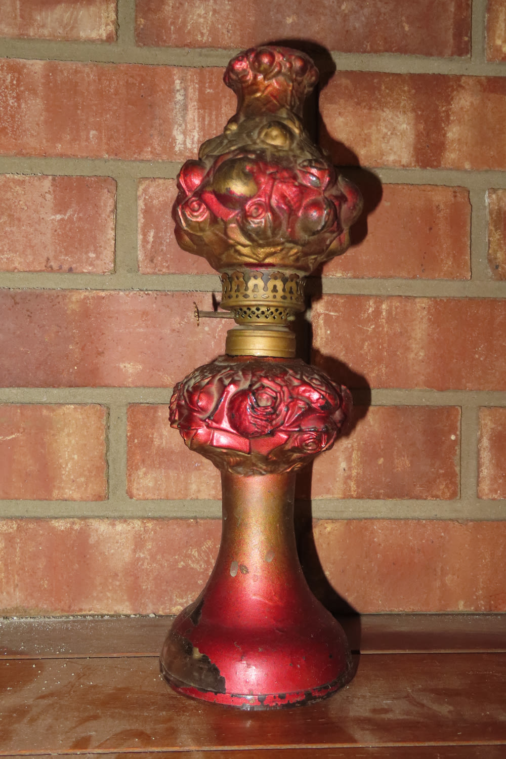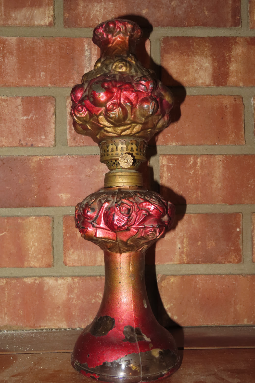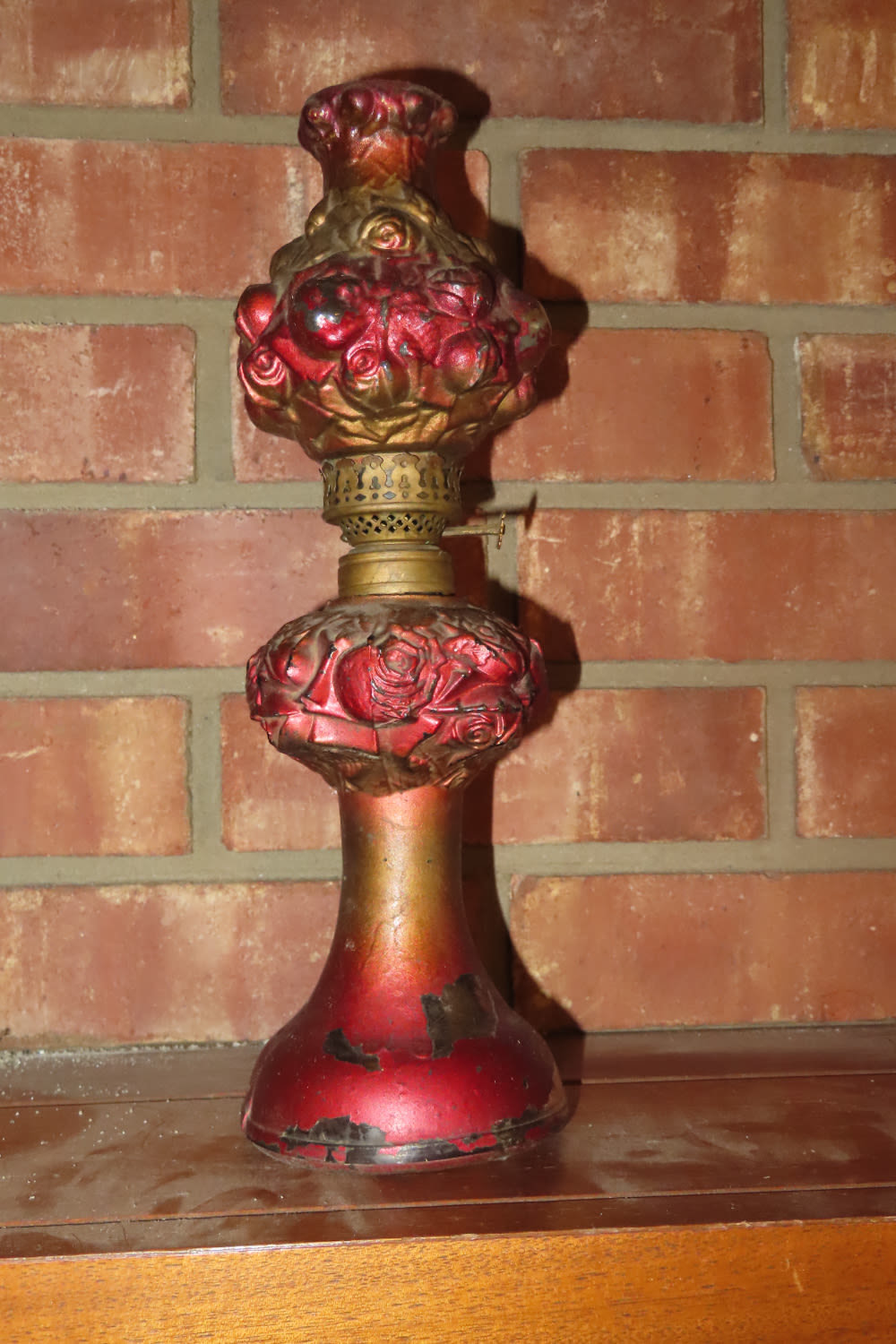 VERY UNIQUE PAINTED GLASS ANTIQUE OIL LAMP 11 3/4″ TALL