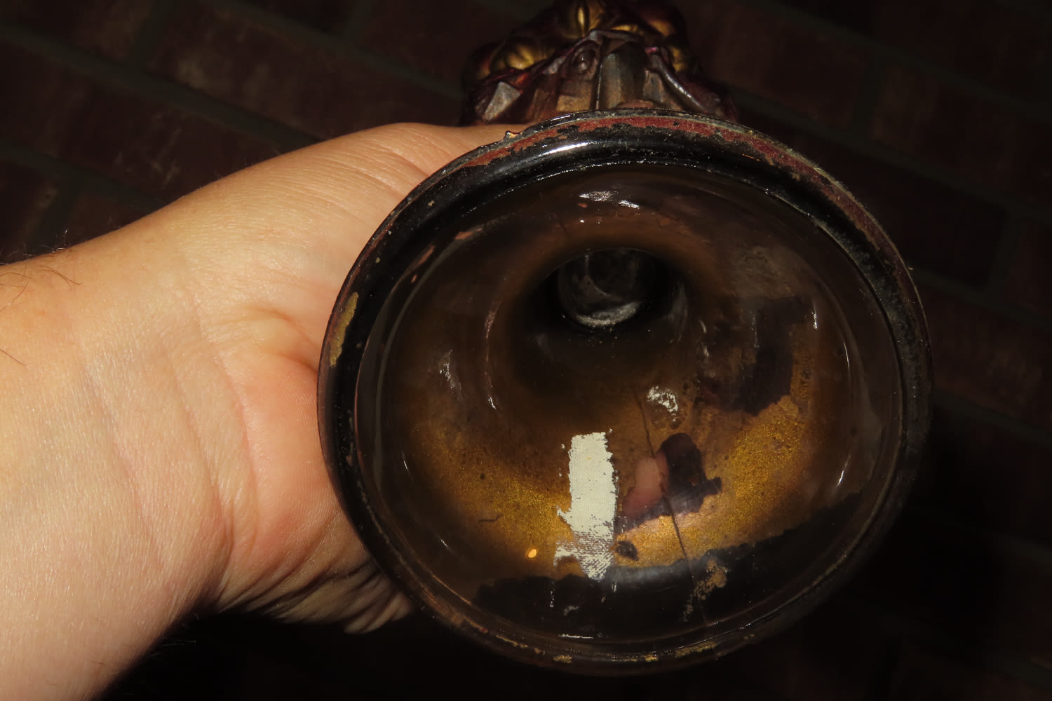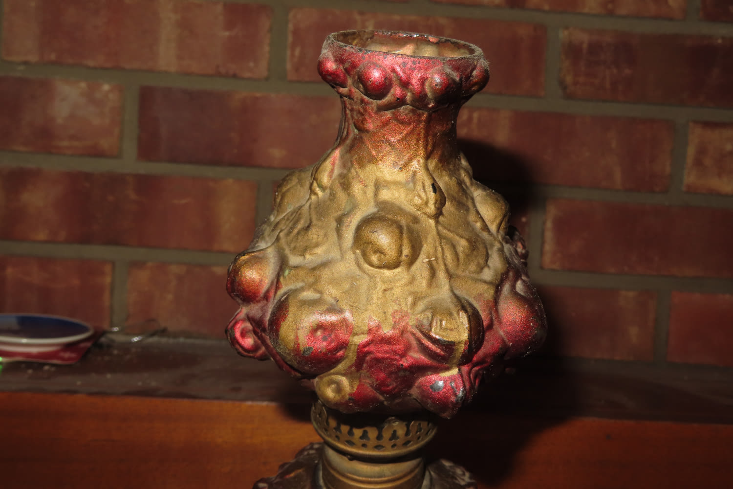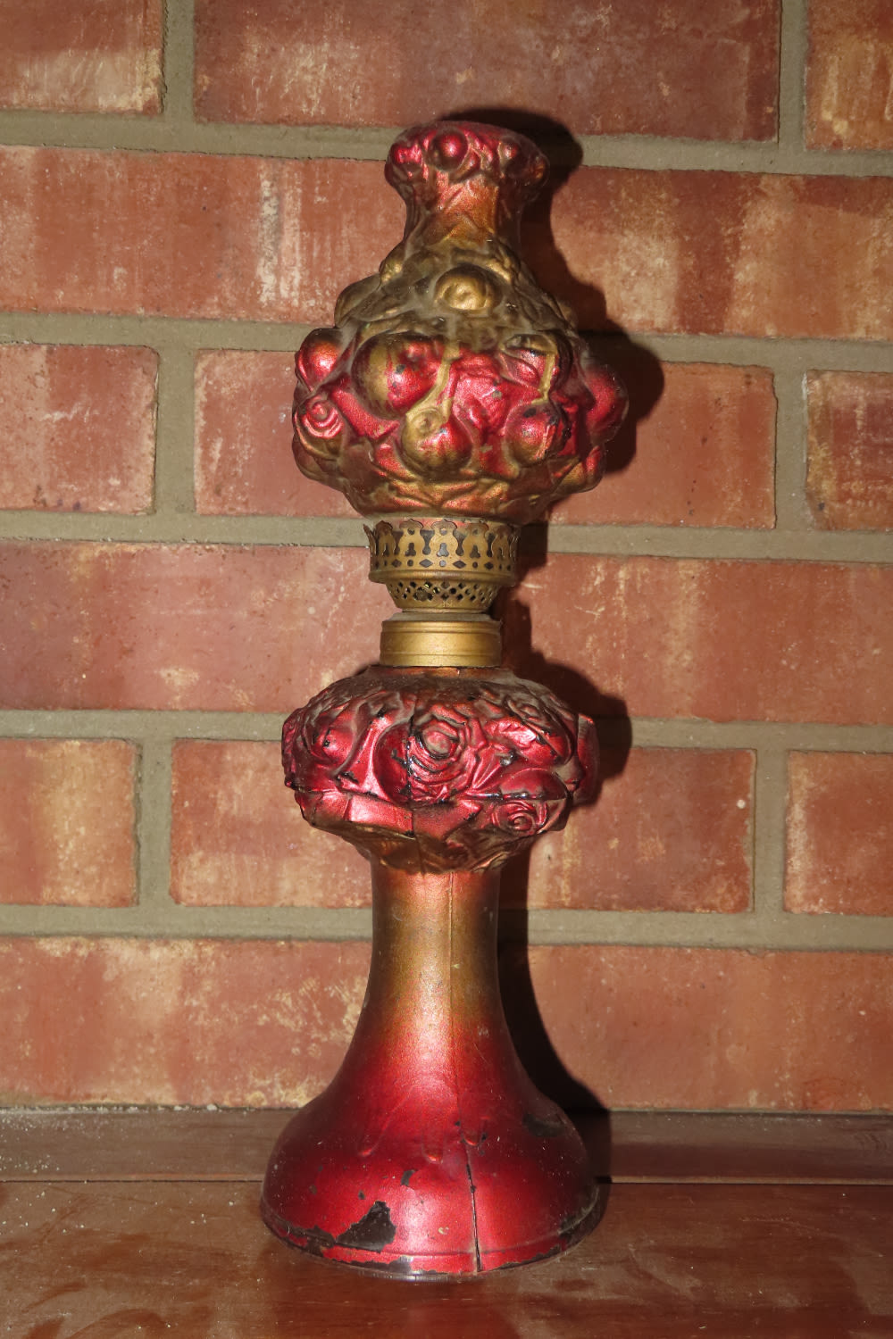 VERY UNIQUE PAINTED GLASS ANTIQUE OIL LAMP 11 3/4″ TALL