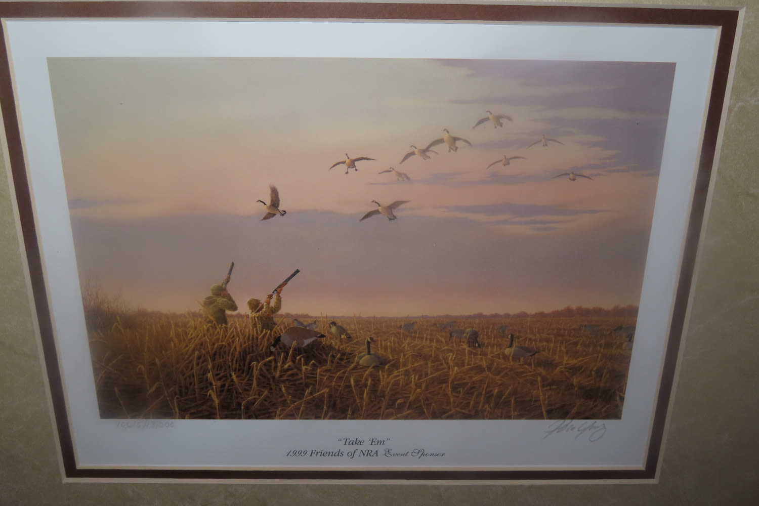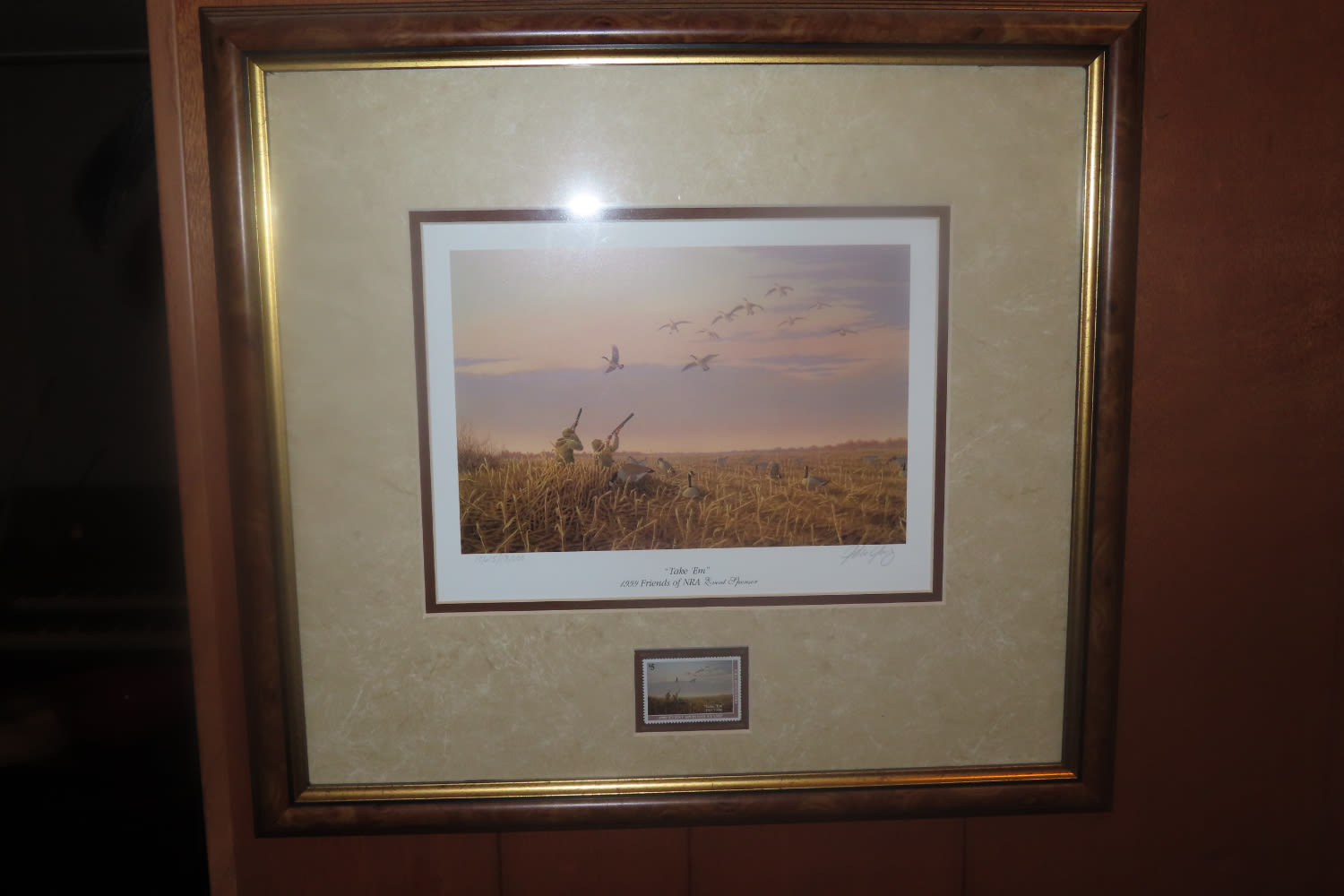 1999 FRIENDS OF THE NRA PRINT WITH STAMP 10 615 OF 3000 MEASURES 18″ X 16″