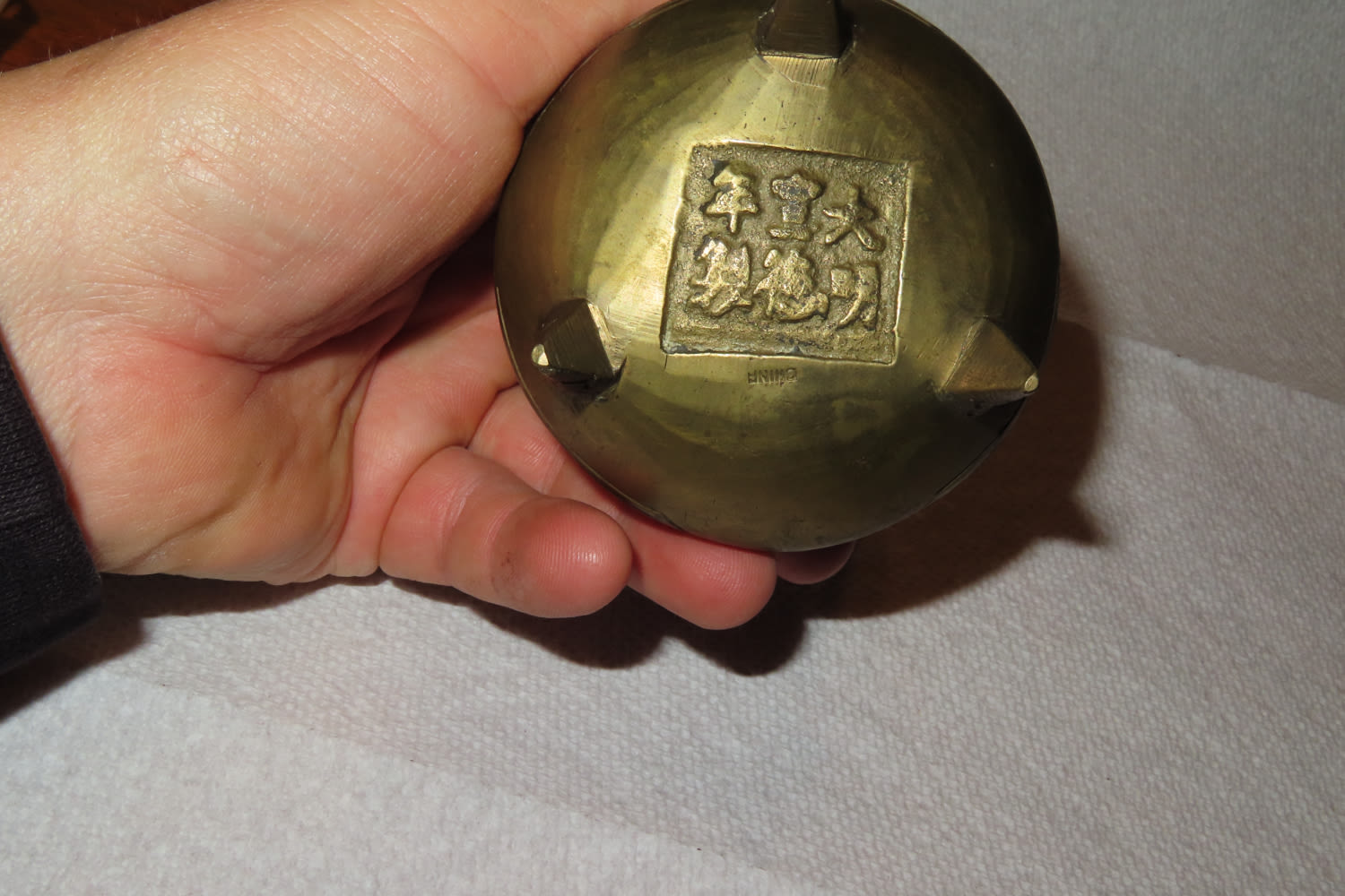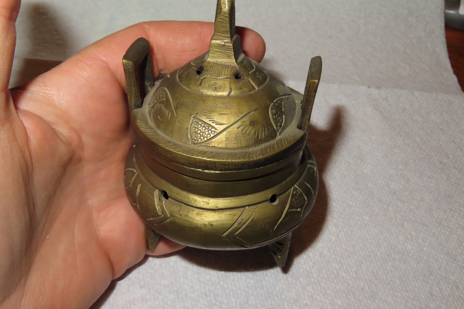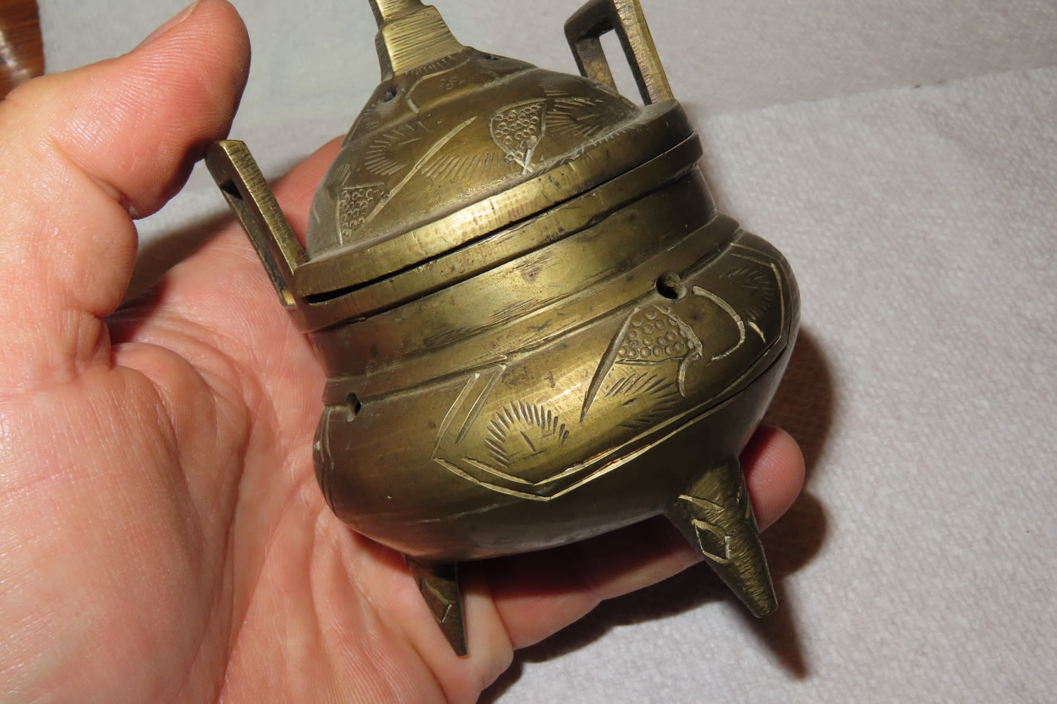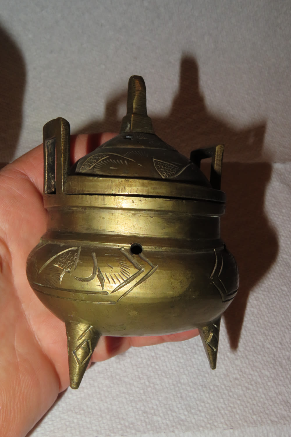 ANTIQUE QING DYNASTY TRIPOD SOLID BRASS INCENSE BURNER CHINA