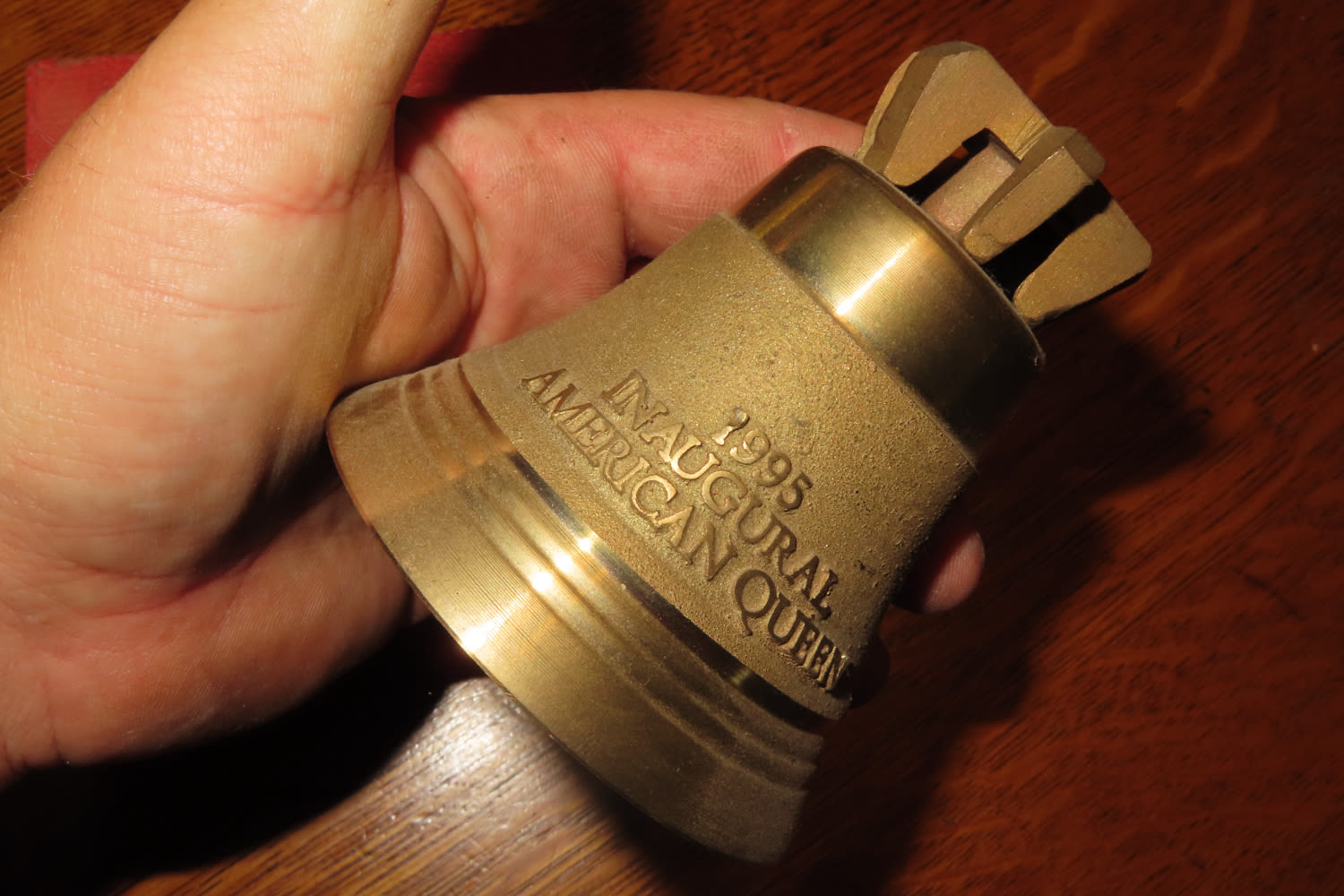 REPLICA OF THE 1985 INAUGURAL AMERICAN QUEEN STEAMBOAT GREAT BRONZE BELL OF THE THE STEAMBOAT CHRISTENED JUNE 1995