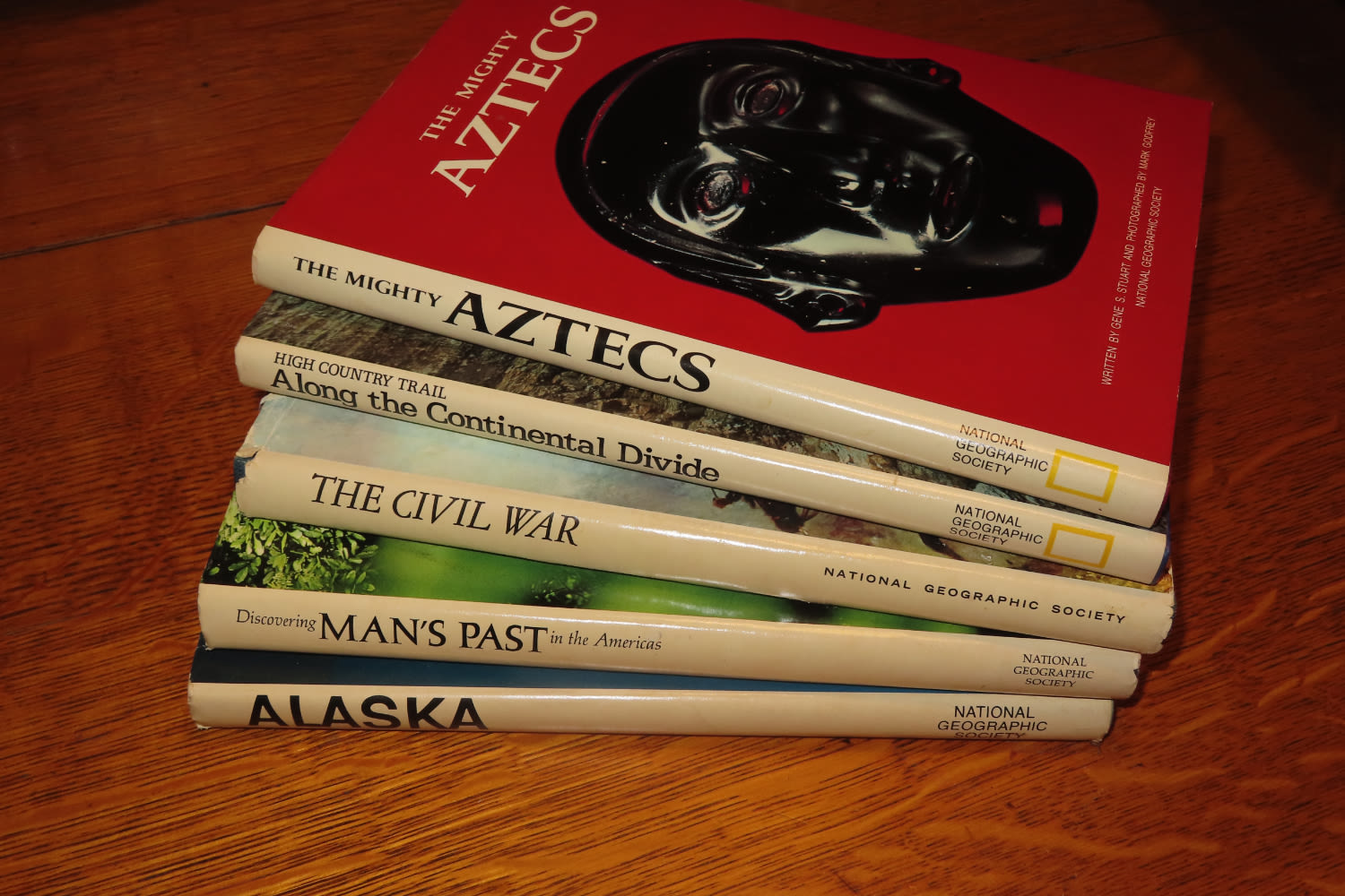 SET OF 5 BOOKS AZTECS ALONG THE CONTINENTAL DRIVE THE CIVIL WAR MAN’S PAST ALASKA BY NATIONAL GEOGRAPIC SOCIETY