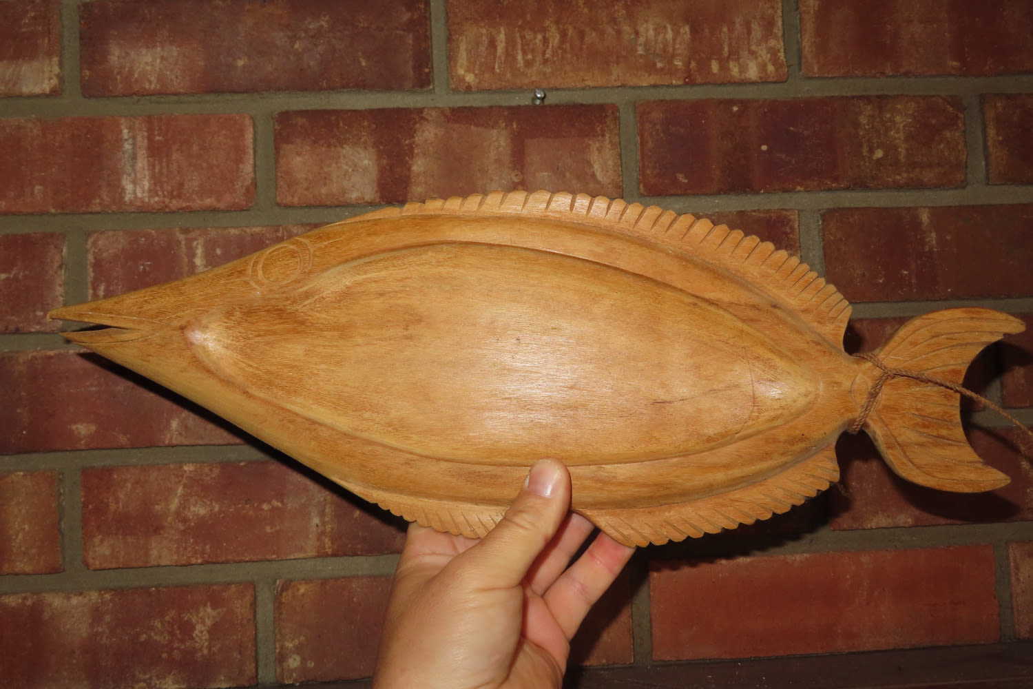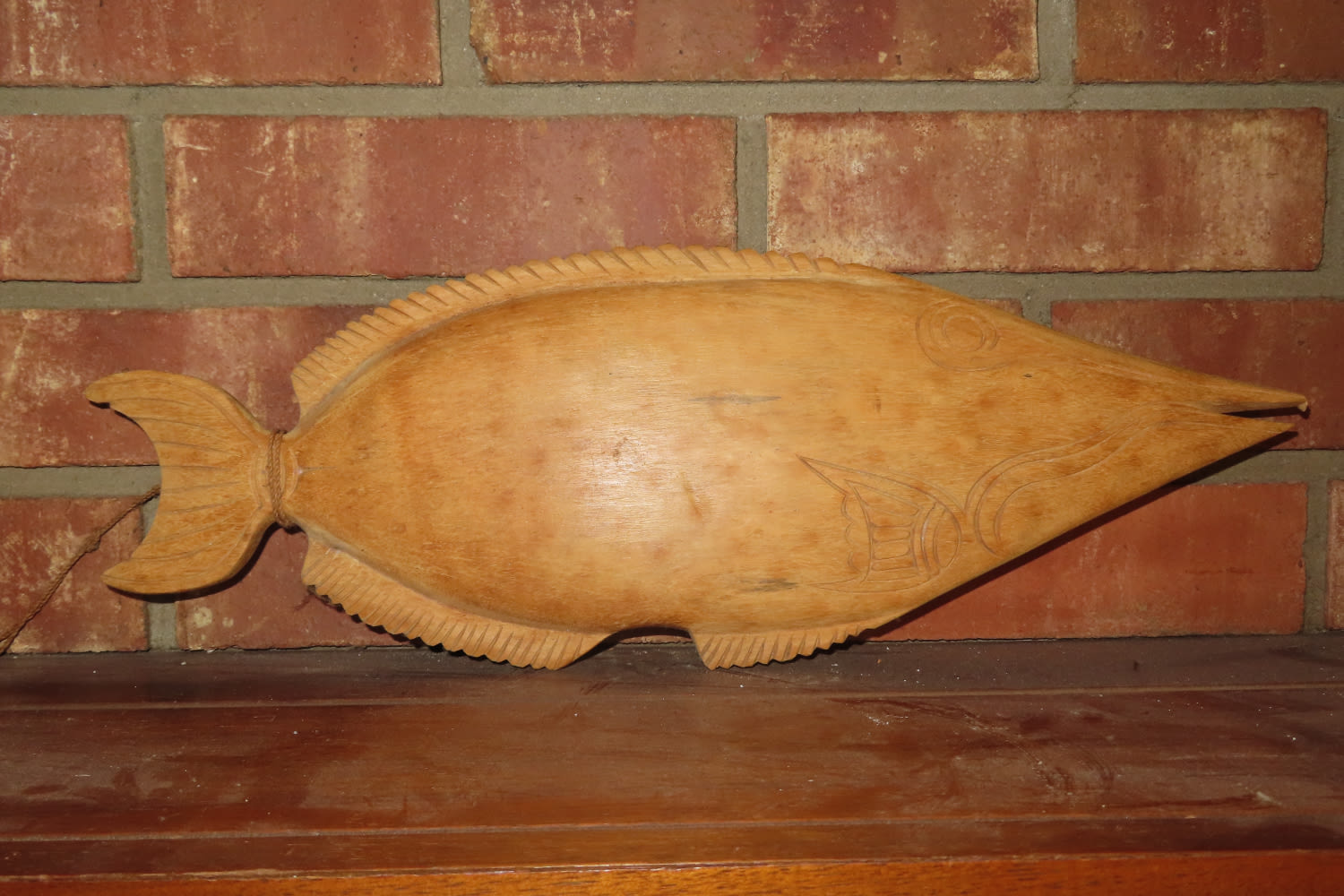 NORTHWEST COAST WOODEN FISH PLATTER THEY AQUIRED ON THEIR TRIP TO ALASKA IN 1989 MEASURES 16 3/4″